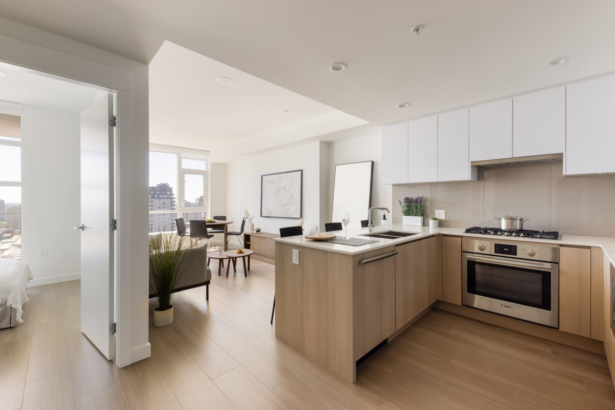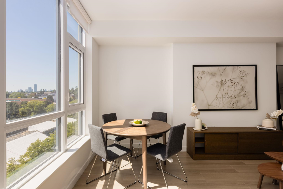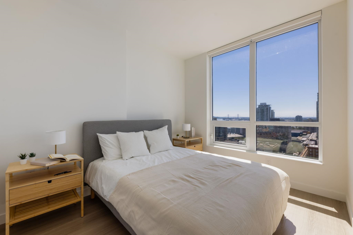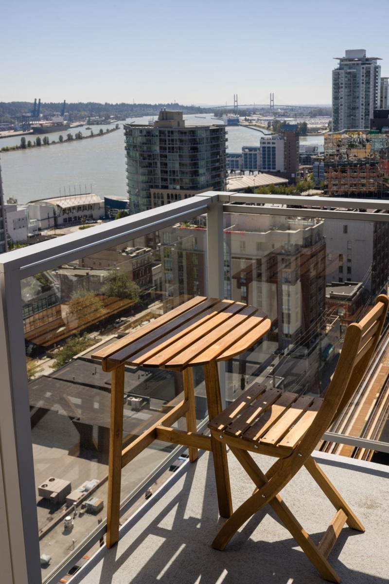 Brand New Move-in ready! Experience elevated living at 618 Carnarvon, where a vibrant lifestyle meets convenience. The "C6" plan features stunning mountain views and unobstructed views of the Fraser River within its 838 sq ft of interior space. With 2 Bedrooms, 2 Full Bathrooms, this south facing suite offers polished quartz countertops, over height ceilings, forced air HEATING & COOLING, sleek KOHLER sinks, energy-efficient BOSCH appliances, 5 burner gas range, modern cabinetry, 1 Parking, & 1 Locker. Amenities include the 2nd, 4th, & 5th floor outdoor courtyards, fitness centre, party room with full kitchen, meeting room, guest suite, & caretaker. With rapid transit , grocery, restaurants, & boundless amenities mere blocks away, you are steps to everything. OPEN HOUSE NOV 30 1-3!