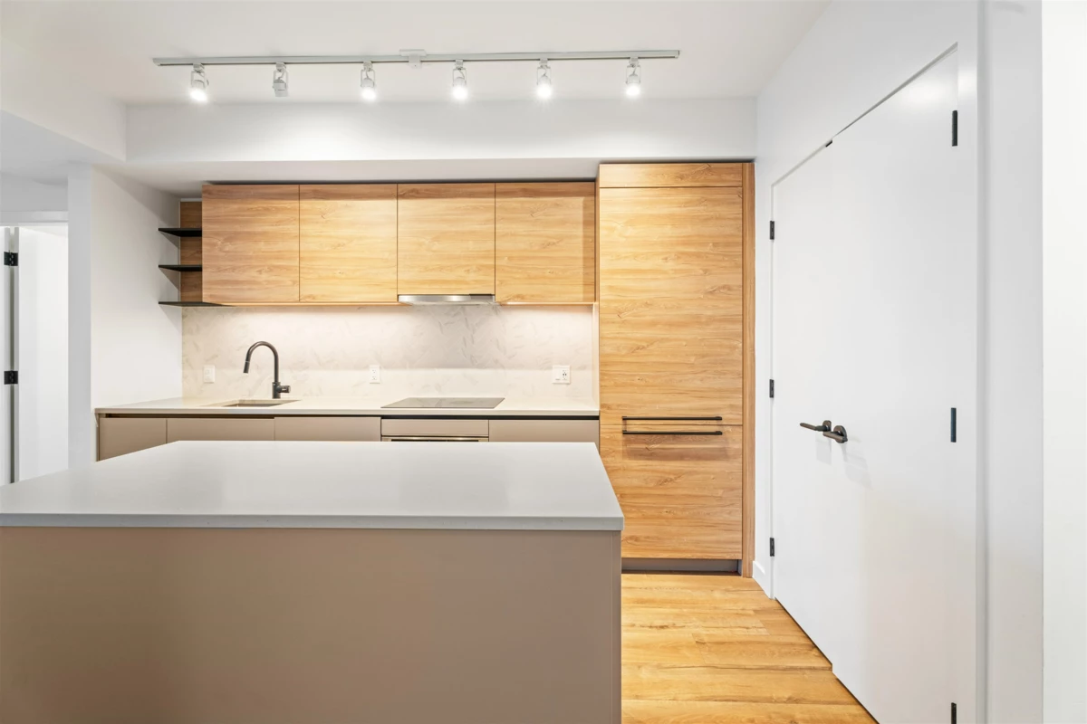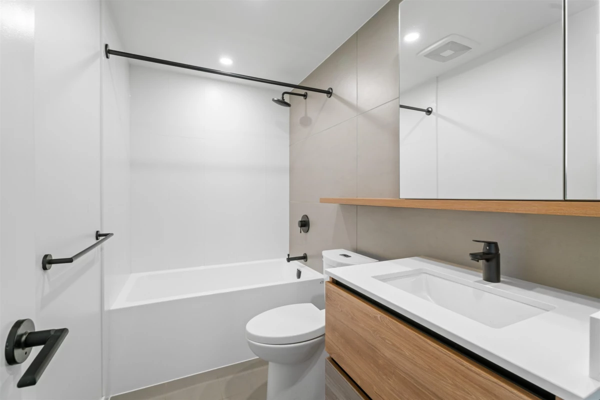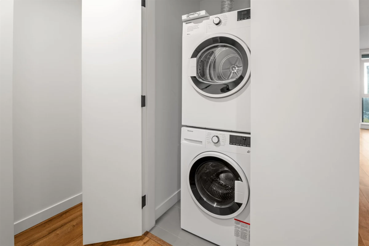 Welcome to University District South by Bosa - where style, comfort, and convenience meet. This corner 2 bed, 2 bath home on the 14th floor faces northwest, showcasing stunning city and mountain views with cabinetry, feature tile accents, and designer lighting, every detail feels curated. Enjoy clever touches like a built-in desk, bar shelving, and extra bedroom storage. The open-concept kitchen features integrated appliances an a quartz, perfect for both work and play. Step out onto your large balcony to take in the view of head downstairs to enjoy the 23,000+ sq.ft. of amenities - pool, spin studio, rooftop lounge, BBQ area, and more. Just steps to SkyTrain, SFU, KPU, shops, and Open house on Nov 1st, 2-4pm
