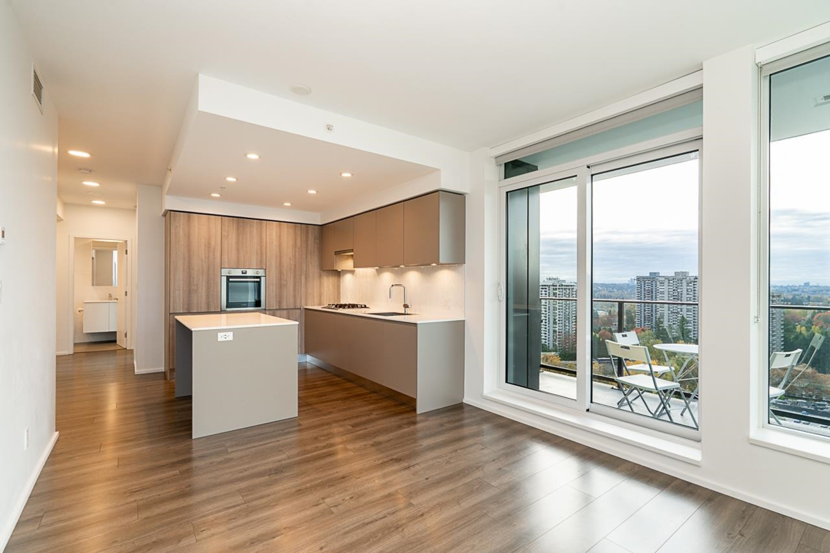 Great 2 Bed + Large Den + 2 Full Bathrooms corner unit in the iconic City of Lougheed! Enjoy breathtaking 270° mountain & city views from the expansive wrap-around balcony. This air-conditioned home features high ceilings, quartz counters, and Bosch stainless steel appliances. Includes 1 parking & 1 locker. Access High class amenities: 18,000+ Sf; co working rooms, Party Lounge, clubhouse, gym, yoga studio, concierge and more. Ultimate convenience: 1 minute to SkyTrain, Lougheed Mall, parks, and dining. Pet-friendly & rent-friendly! Just call for your private showing!