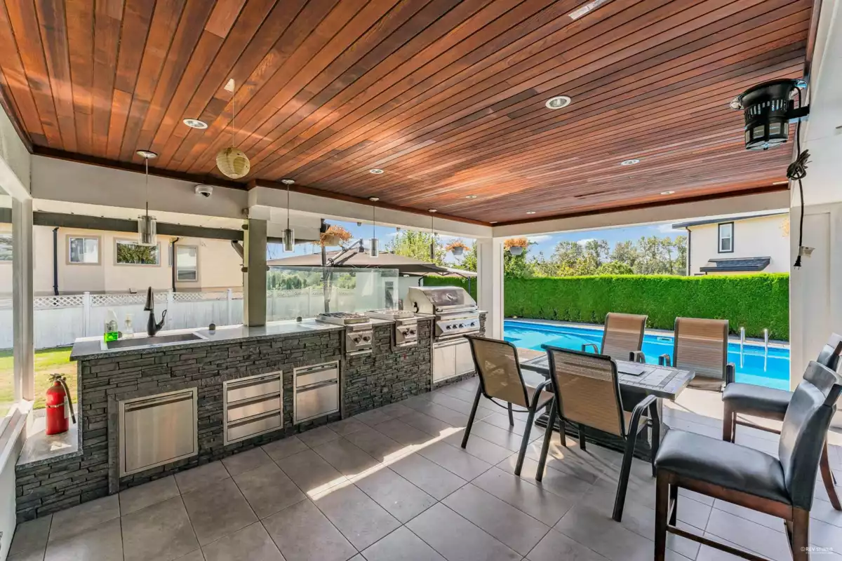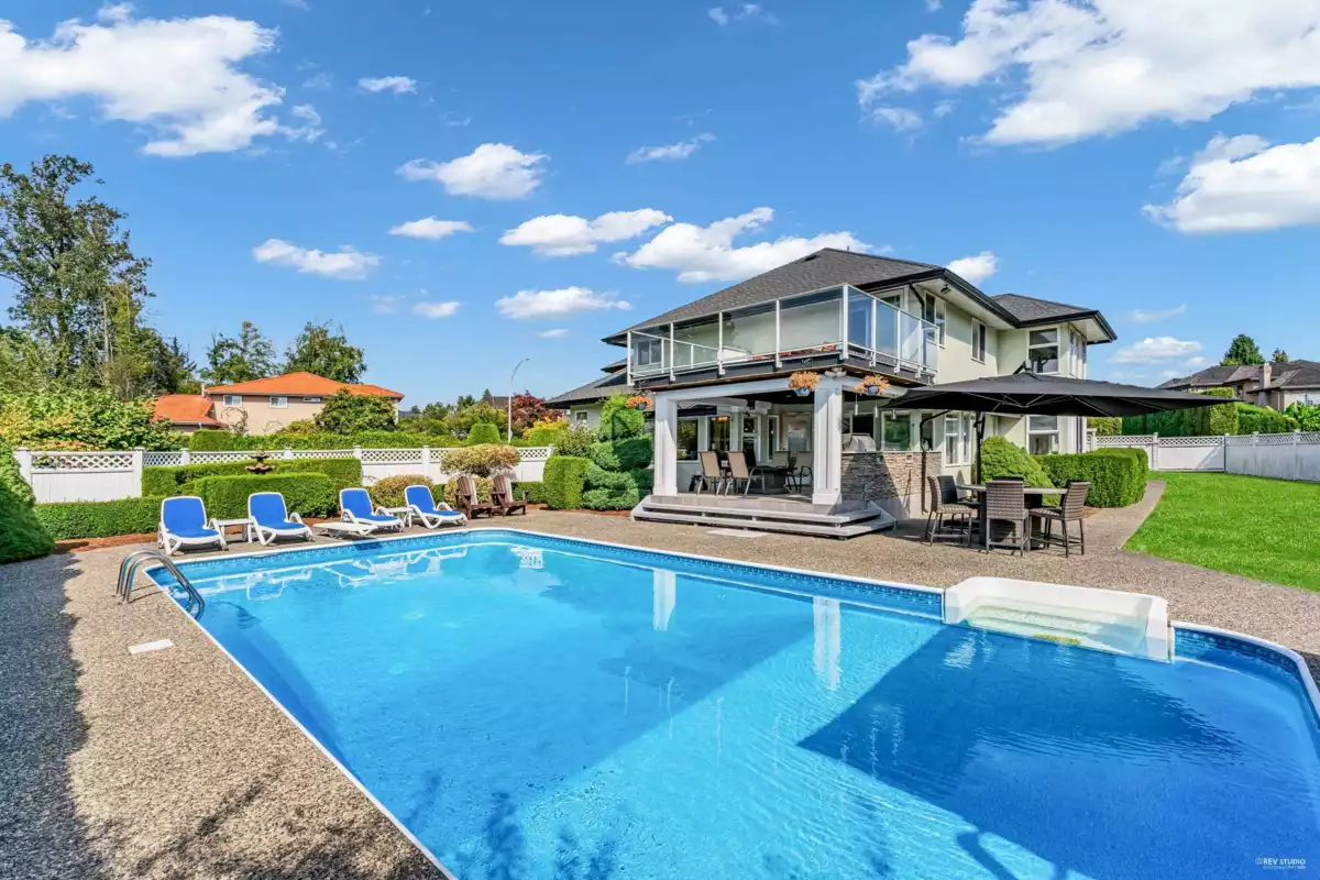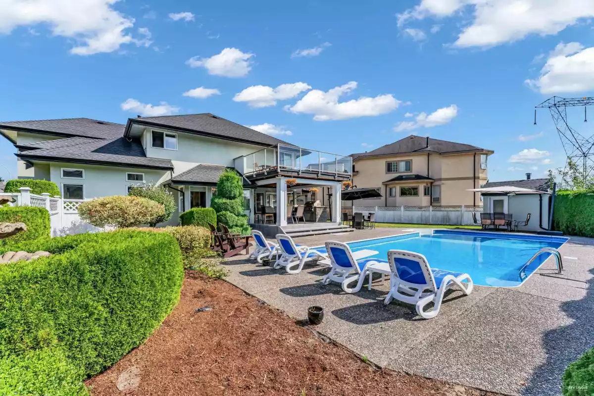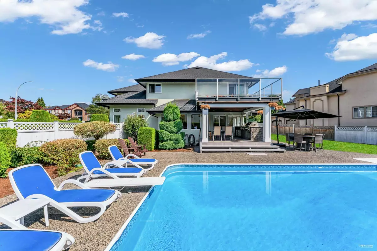 Welcome to prestigious Brookside! This renovated executive 2-storey home sits on a private 17,480 sq.ft. lot in a quiet, family-friendly neighbourhood. Featuring rosewood-tinted hardwood floors, a granite kitchen, and large windows that fill the home with natural light. Upstairs offers spacious bedrooms, including a primary with a 5-piece ensuite. Recent updates include fresh paint, new hot water tank, renovated laundry room, new front doors, 6-year-old fence, and underground sprinklers. The backyard is your private oasis with a swimming pool, multi-tiered fountain, outdoor kitchen, storage shed, and lush landscaping. Complete with triple garage and RV parking, this home blends elegance, comfort, and functionality in one of Surrey’s most desirable areas!