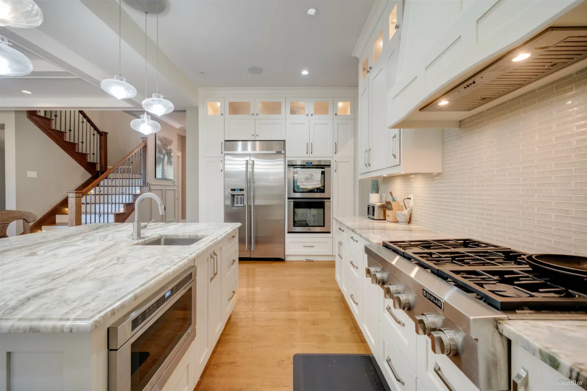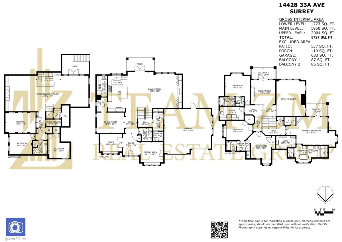 Discover this exceptional modern home in the prestigious Elgin Chantrell neighbourhood. Situated on a generous 13993.44 SF lot, this 5,727 SF residence features 6 bedrooms and 6 bathrooms—perfect for families of all sizes. Elegant high ceilings, a main-level ensuite bedroom, and an upper-level master with balcony and library offer both comfort and versatility. The gourmet kitchen with separate wok kitchen, spacious game/media rooms, and iron-gated wine cellar make entertaining a breeze. Enjoy the private backyard oasis, smart lighting system, and top-tier school catchment: Semiahmoo Secondary. A rare blend of luxury, function, and location—this is South Surrey living at its finest.