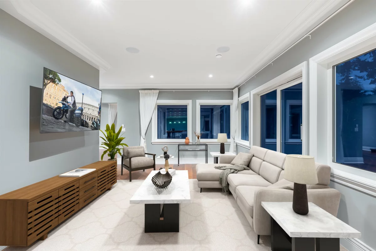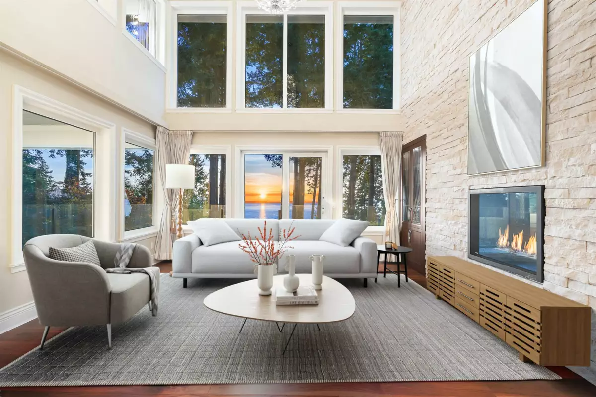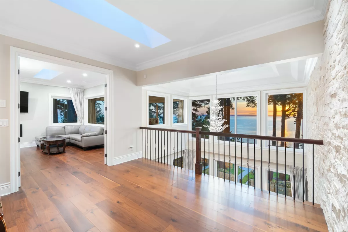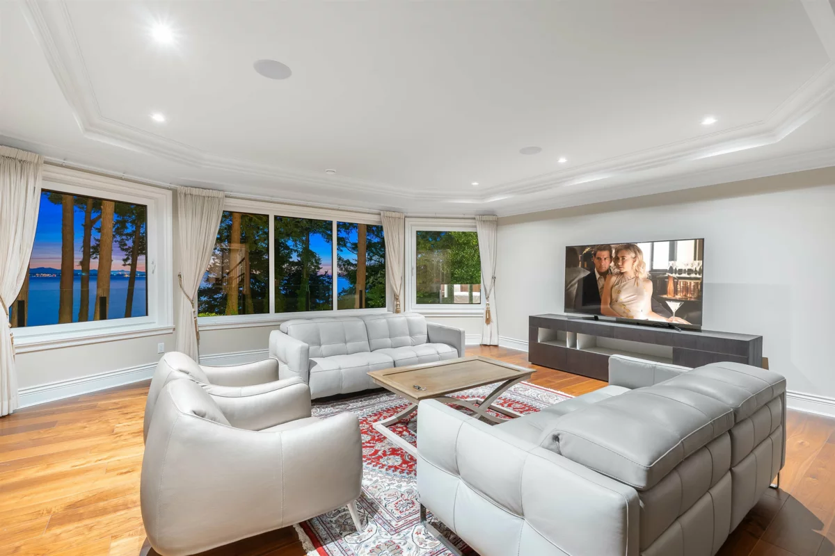 Perched on a private bluff in Ocean Park, this 9,500 sf estate defines West Coast luxury across three sunlit levels with panoramic ocean views and stunning sunsets. Soaring windows and elegant interiors blend modern comfort with timeless style. The chef’s kitchen features a quartz island, top-tier appliances, custom cabinetry, and a secondary wok kitchen. A breakfast nook and formal dining area overlook breathtaking vistas. Upstairs offers serene lounges and bedrooms with floor-to-ceiling windows, including a spa-inspired primary retreat. The lower level includes a theatre, games room, and walk-out access to a manicured garden. Located in one of South Surrey’s most prestigious enclaves, this residence offers exceptional privacy and oceanfront living. (Some photos are virtually staged)