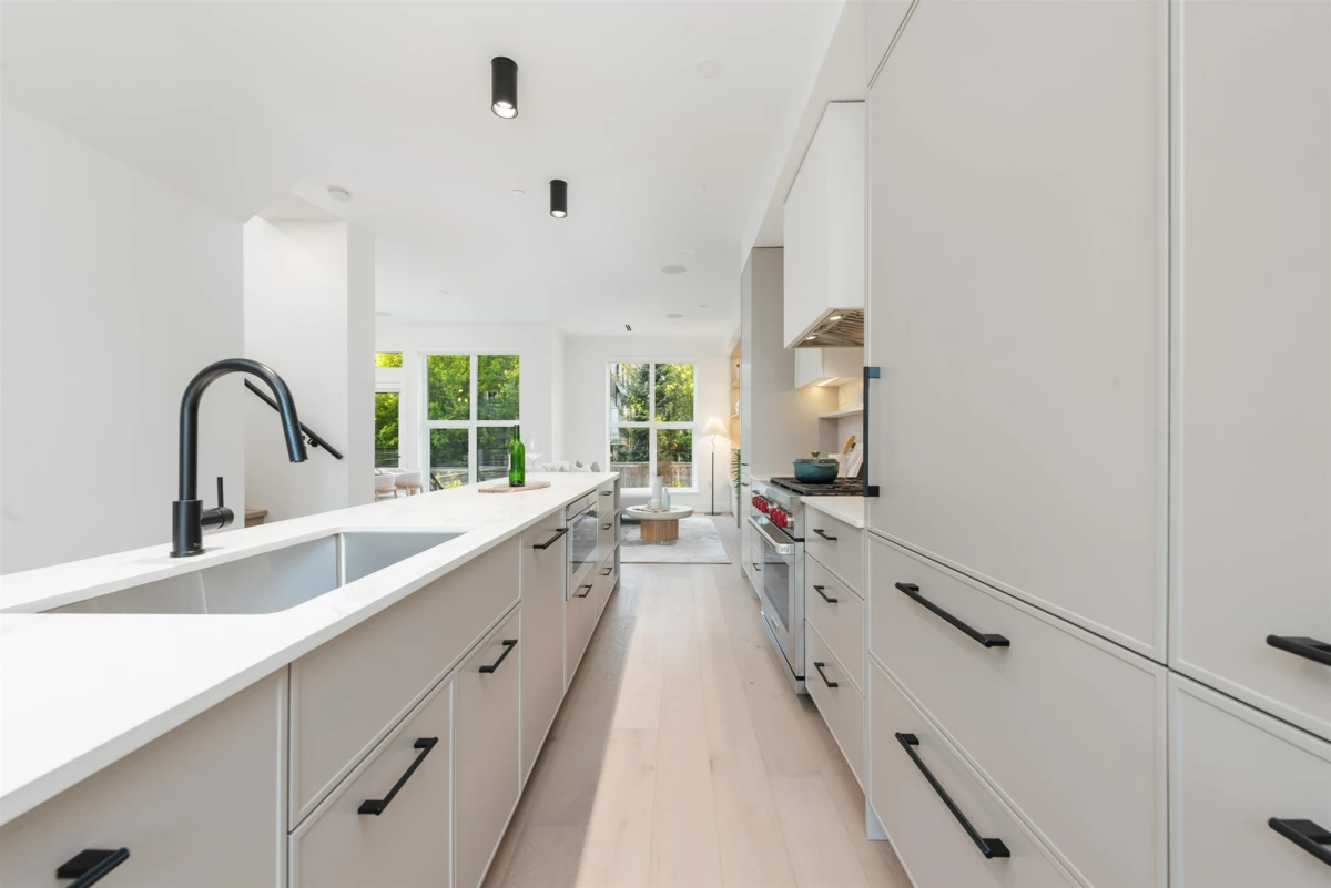 Experience refined luxury in this exclusive 4-bed, 3.5-bath Vancouver residence developed by Peterson, offering 1,908 sq.ft. of elegant living across three beautifully designed levels, plus an attached garage and generous private outdoor space. The chef’s kitchen features Wolf and Sub-Zero appliances, custom cabinetry, and sleek Dekton countertops. The spa-inspired primary suite includes vaulted ceilings, a freestanding tub, custom shower, and Calacatta tile. Premium features include hardwood floors, radiant heating, air conditioning, Sierra flame fireplace, integrated audio, EV charging, and custom millwork. The lower level offers a spacious bedroom, full bath and laundry, while the upper floor provides three well-appointed bedrooms. Located in the coveted Osler and Churchill catchments.