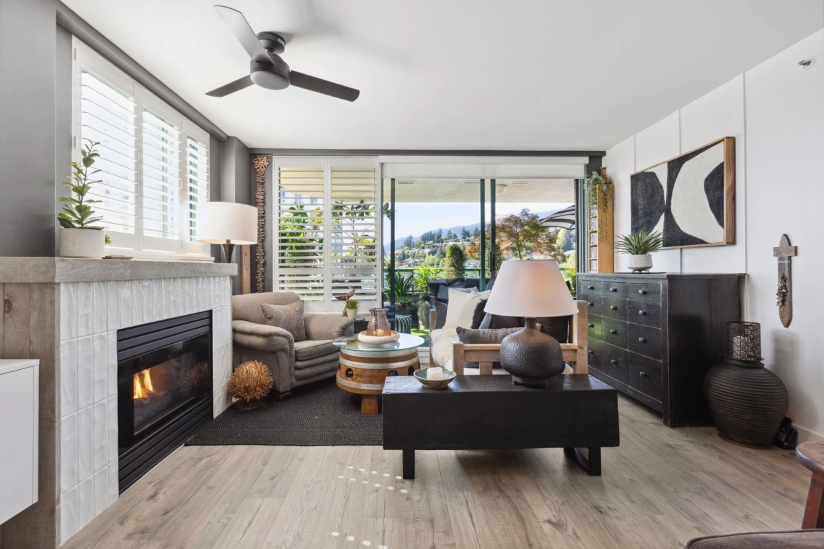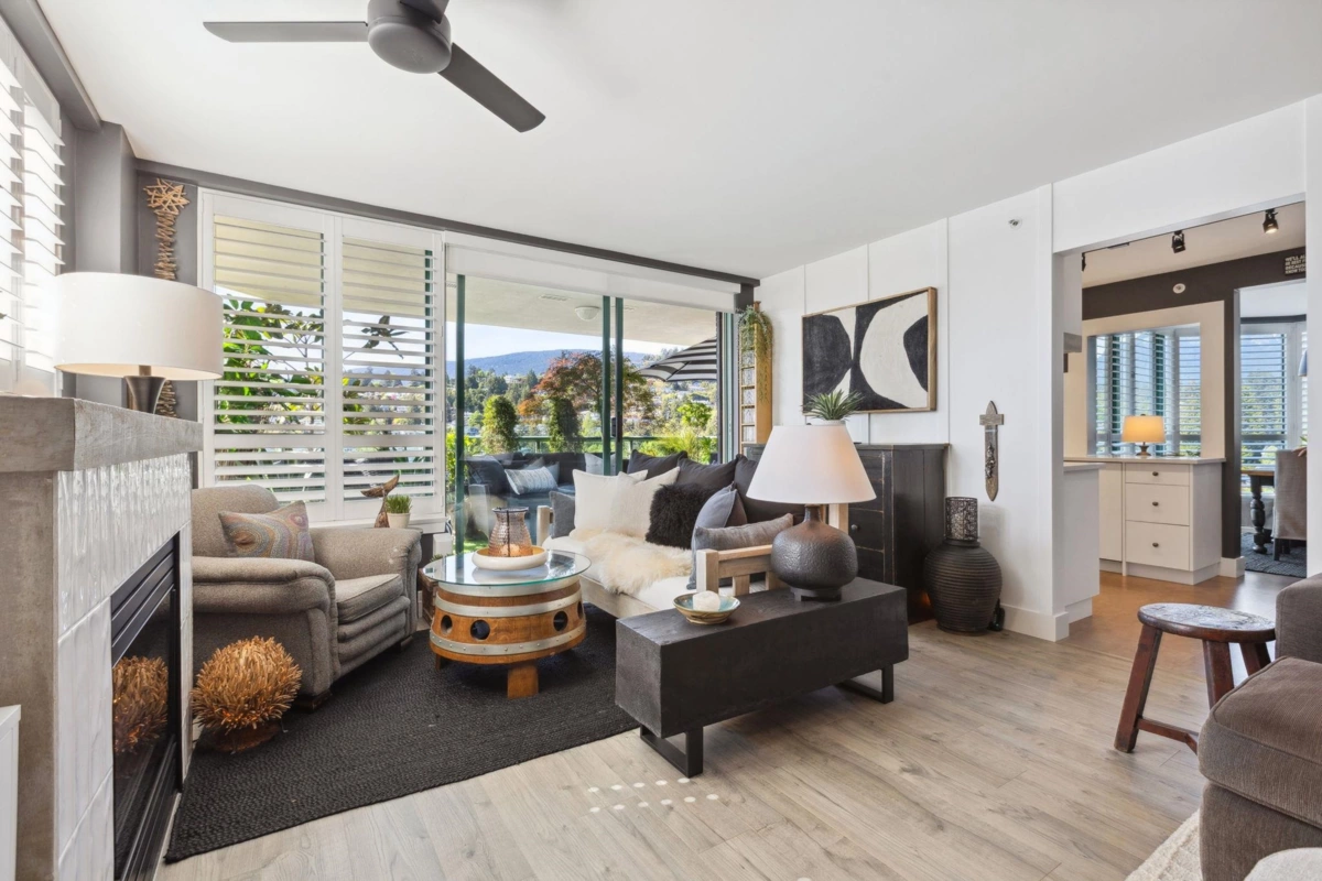 Luxe, light-filled, and completely reimagined - this 2 bed + solarium, 2 bath NW corner suite at The Westroyal blends sophistication with everyday comfort. Expansive windows fill the home with natural light and frame stunning ocean, mountain, and city views. Thoughtfully redesigned in 2021 with over 1500 sq ft of indoor/outdoor living, this home features your own private garden oasis deck, a sleek chef’s kitchen, spa-inspired bathrooms, custom millwork and closets, quartz counters, designer lighting, a cozy gas fireplace and elegant shutters throughout. Resort-style amenities include a pool, hot tub, sauna, gym, party room, and resident manager. Includes 2 parking stalls and storage. Steps to the seawall, Park Royal Shopping Centre, dining, and transit.