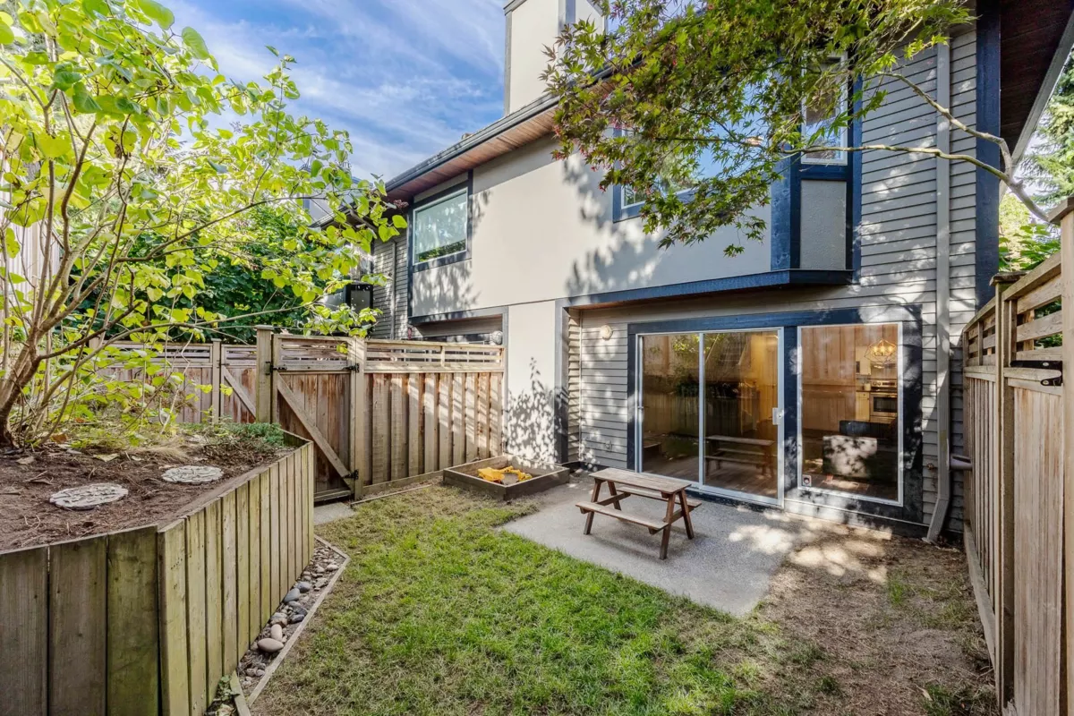 SEE VIRTUAL TOUR! They don't make townhouses like this anymore! Welcome to Lilac Green and this 3 bed, 3 bath townhouse with over 1600sqft of living space in the heart of the King George Corridor in South Surrey! This end unit home offers as much convenience as it does practicality. Tucked away from KG Blvd, you're close to White Rock Beach, Hwy 99, and the US Border. The main floor of the home has a 2pc powder room, open concept dining/living room, and walkout fully fenced yard space. Warm up in the fall and winter with a nice cozy gas fireplace. Upstairs features primary bedroom with a 4 piece ensuite and 2 additional generously sized bedrooms with a 4-piece jack & jill ensuite. Two bathtubs and laundry upstairs make this a very functional home for a young family.