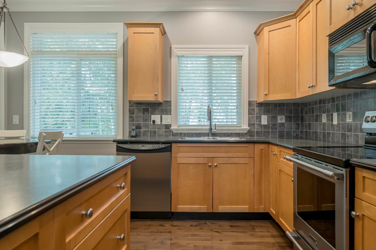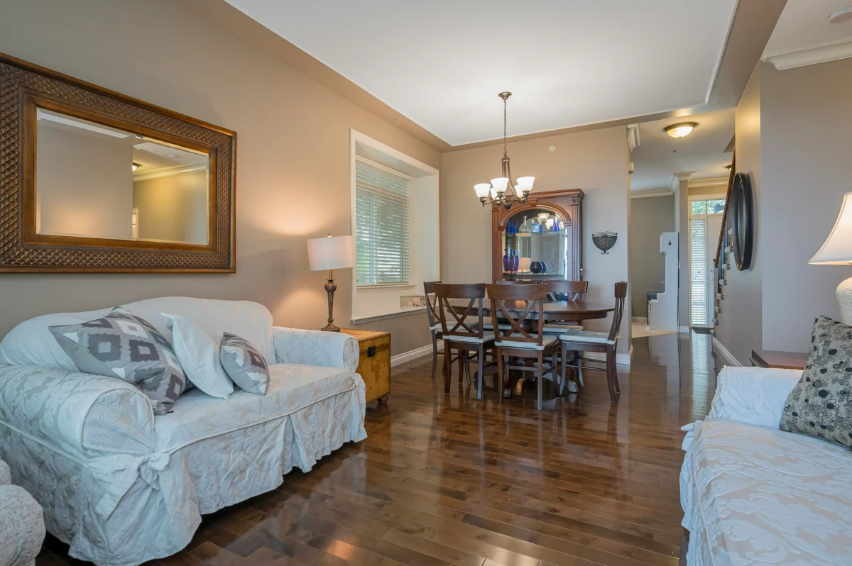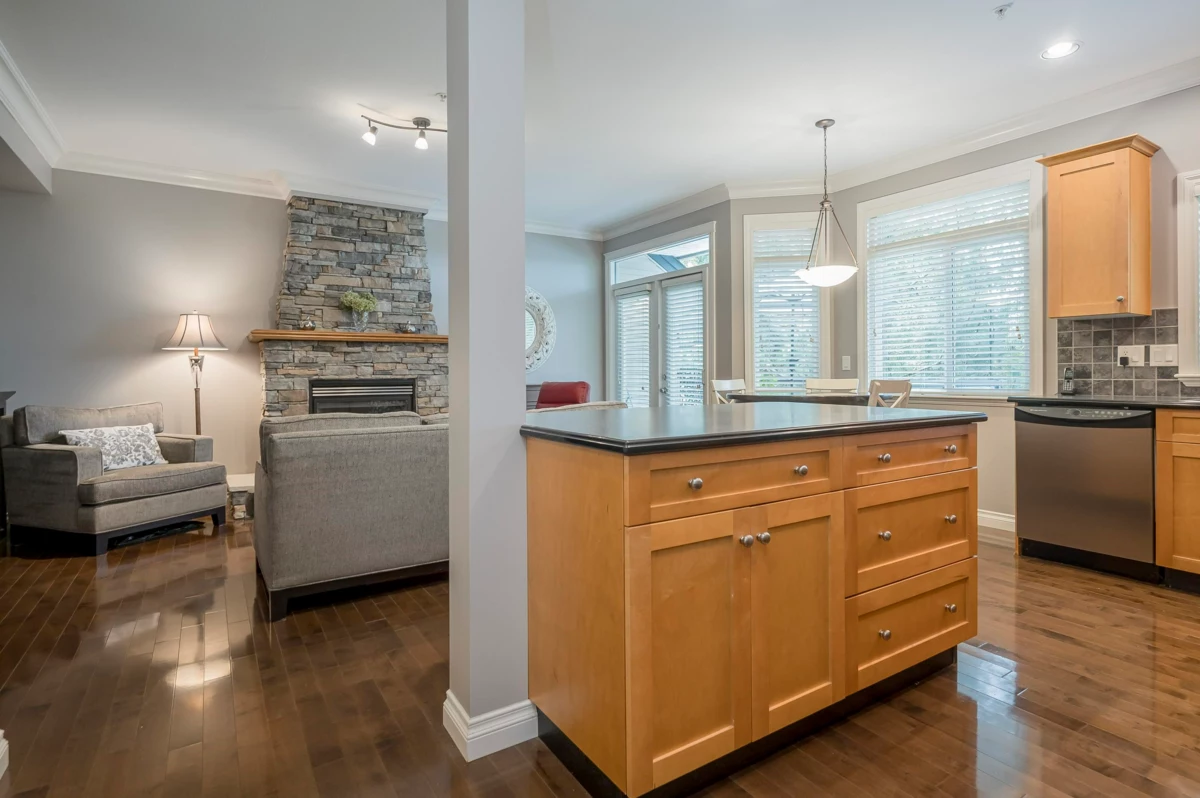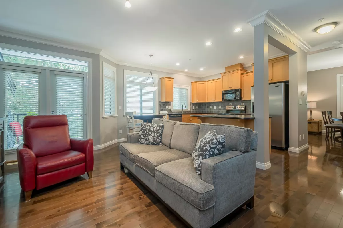 WOW! Talk about privacy! Peace and quiet with no traffic. Possibly the best location in King’s Gate! Super clean 3 level end unit townhome boasting Valley & Mountain views from all patios and decks (North shore mountains). Hardwood floors, 9ft ceilings, crown mouldings, family room & den on main floor. Master suite has large walk-in closet & easily accommodates king sized bed. Visitor parking just steps away. RV parking avail. No age rest + 2 pets ok. Walk to Ledgeview Golf Course. OPEN HOUSE SUNDAY NOVEMBER 30 2PM - 4PM