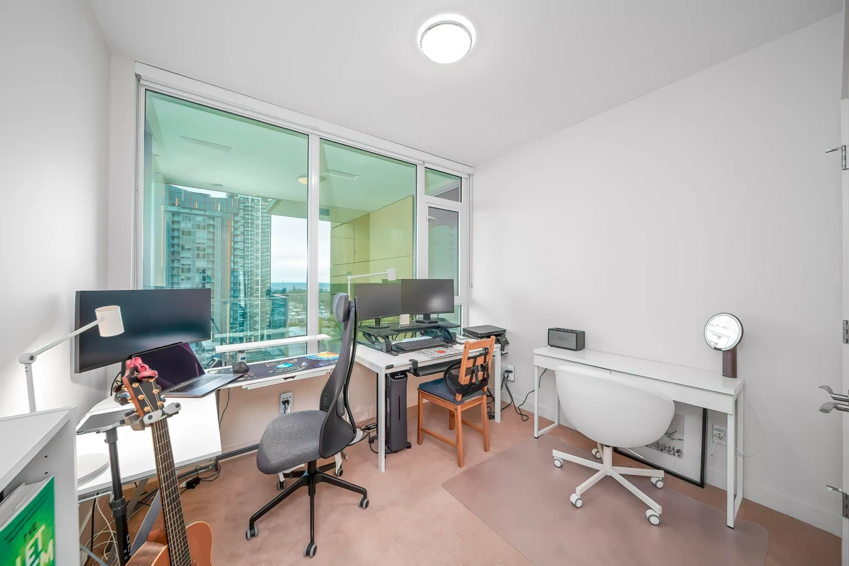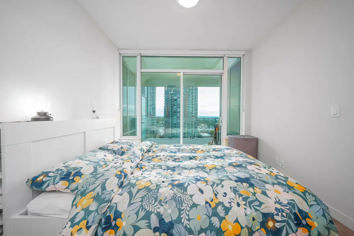 Welcome to Gold House South Tower in the heart of Metrotown! This spacious 2-bedroom, 2-bathroom unit showcases unobstructed panoramic city views and a smart layout with no wasted space. The two bedrooms are separated for maximum privacy, each with its own 3-piece bathroom. The modern open-concept kitchen is equipped with Bosch appliances, quartz countertops, and ample cabinetry. Step onto the generous balcony and take in the breathtaking skyline. Steps away from Metrotown Mall, Crystal Mall, SkyTrain, restaurants, and parks, this residence offers unmatched urban convenience while maintaining quiet and comfortable living. Building amenities include a 24-hour concierge, fitness centre, social lounge, and outdoor garden. A rare opportunity to enjoy sophisticated urban living at its finest!