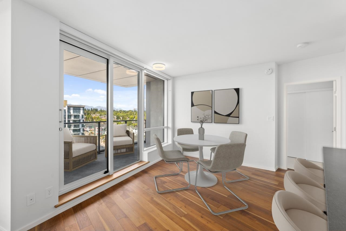 Unmatched Views & Luxury Living. Boasting almost 1100 sqft of interior space this unit has everything and more. 2 bedrooms, 2 full bathrooms, 2 FLEX/DEN spaces, 2 parking and 2 access points to your panoramic balcony. This functional unit comes with A/C, top-of-the-line appliances, hardwood floors, Nuheat bathroom tiles, and a 24 hour concierge service. Amenities include rooftop gardens, library, lounge/study areas, gym, steam room, and sauna. Conveniently located right ontop of Safeway, and just steps to banks, shops, restaurants and transit. Short drive to Dr. R.E. McKechnie Elementary and Magee Secondary school. Come and enjoy the view before its too late. Some photos are virtually staged.