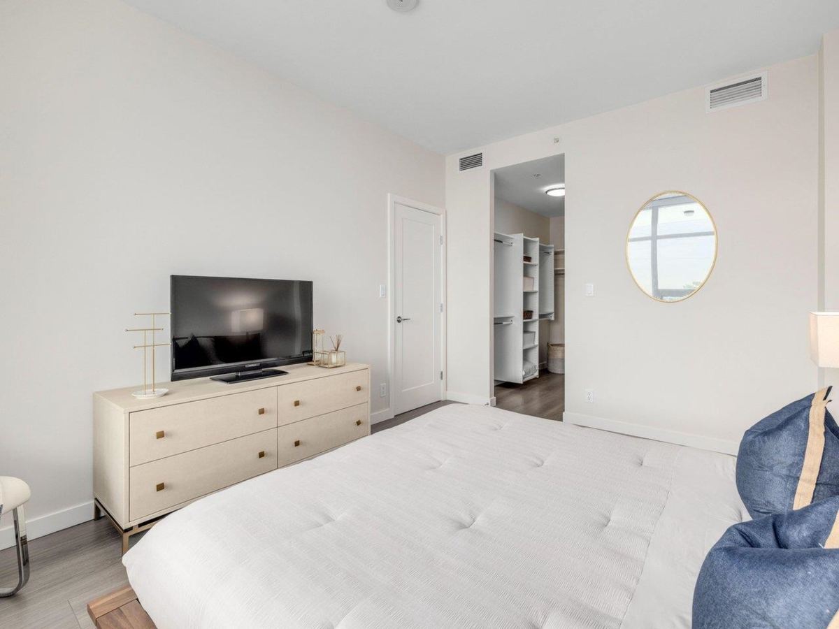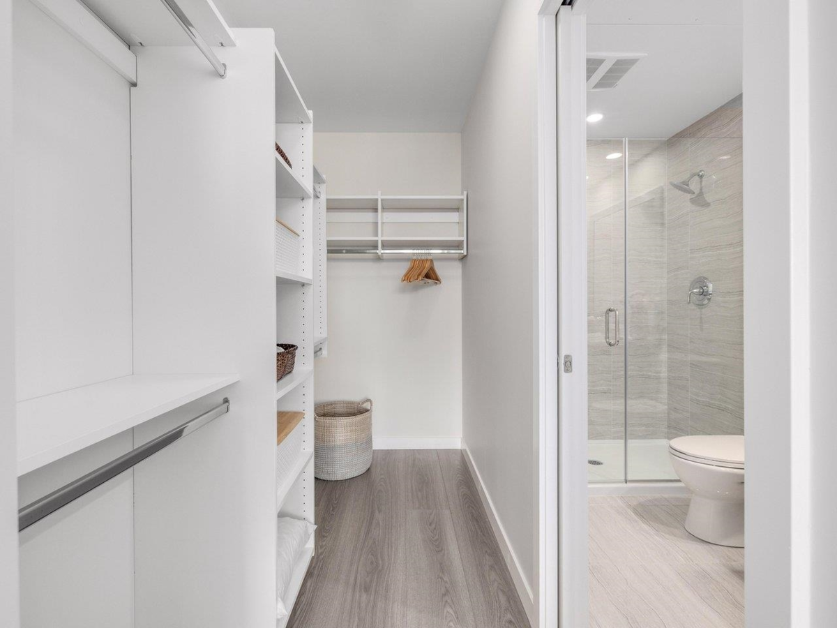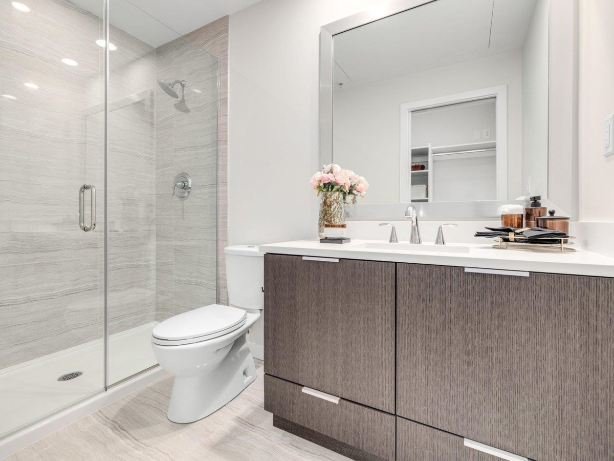 High level East-facing 932 sq ft 2 bed + den at Torino North with open mountain and garden views. Efficient floorplan with no wasted space, double ensuited bedrooms on opposite sides. High ceilings, full-size appliances, wide-plank laminate flooring, and heating/cooling. Convenient location with services, groceries, restaurant, and Capstan Canada Line Station just steps away. New and ready to move in.