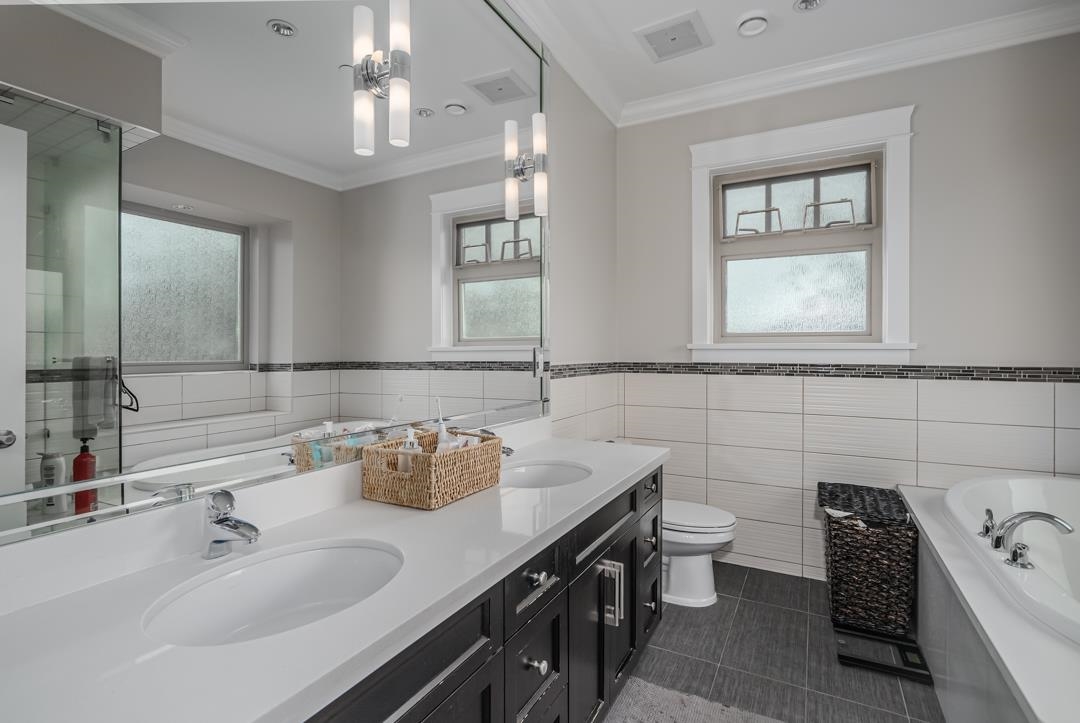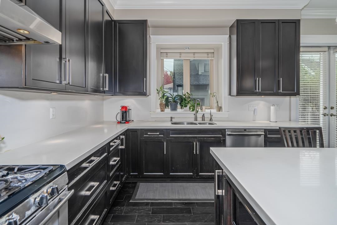 This beautiful custom-built home in Fraserview is now on the market for the first time! Situated on a corner lot on the high side of the street, this south-facing property offers plenty of natural light across its three levels. The main floor features a gourmet kitchen with s/s appliances, a bright den, spacious living room, and an open concept family room. All three generous sized bedrooms upstairs come with their own ensuites. The basement features a legal suite with two bedrooms and two full bathrooms. Bonus - the property also offers a one bedroom, 1.5 bathroom laneway house, single car garage, and an additional gated parking pad. Located in the Sir Sandford Fleming Elementary and David Thompson Secondary school catchment, this home is perfect for families. Call to book your showing!