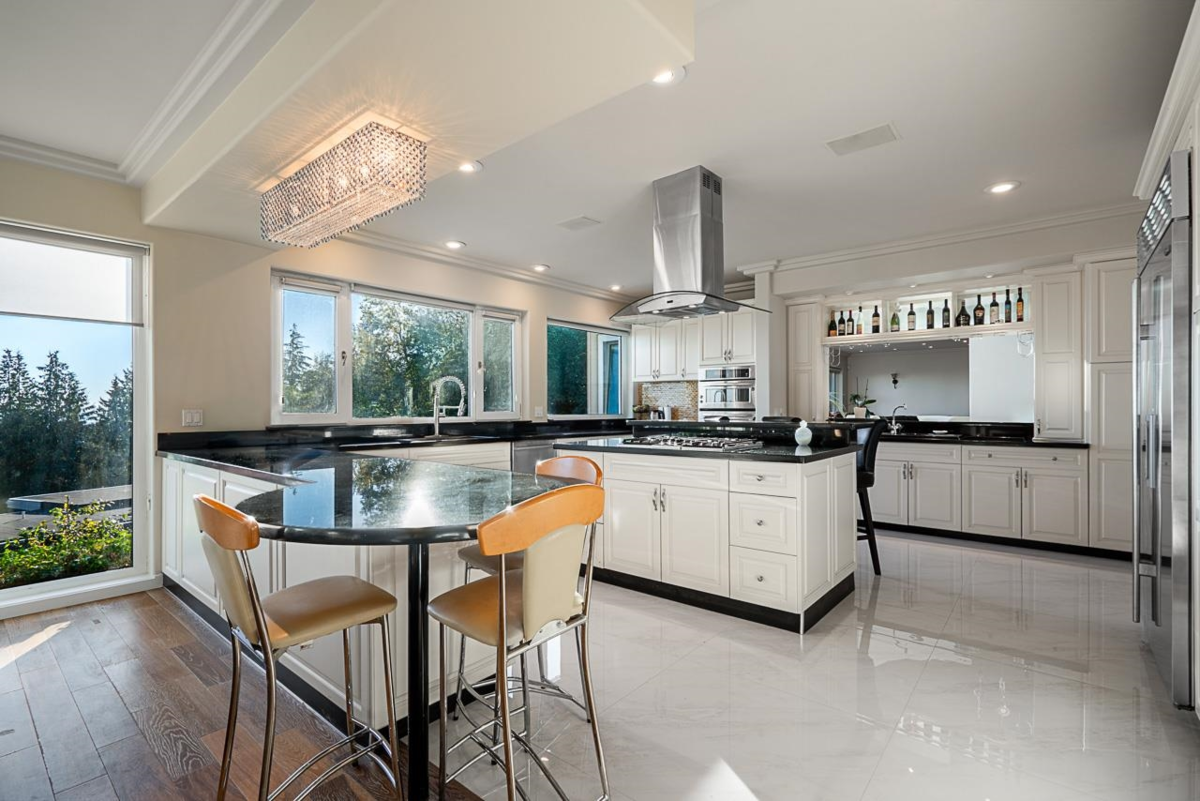 APPROXIMATELY $745,000.00 spent on meticulous renovations of this fabulous family home boasting a lovely view of DOWNTOWN/LIONSGATE/STANLEYPARK, flat driveway and oversized 3-car garage. Go to "DOCUMENTS" to see the LIST OF RENOVATIONS. MAIN FLOOR: stunning foyer and dining room with 18ft ceiling, spacious living room, fabulous gourmet kitchen, wok kitchen next to eating area and large family room overlooking the view. UPPER FLOOR: huge primary bedroom with large walk-in and en-suite with Jacuzzi tub, 3 spacious en-suited bedrooms, library/study area and laundry. LOWER FLOOR: fantastic rec-room with wet-bar, games room, both with sliding doors leading to large patio and beautifully tiled swimming pool and hot-tub, plus large media room, guest bedroom and full bathroom.