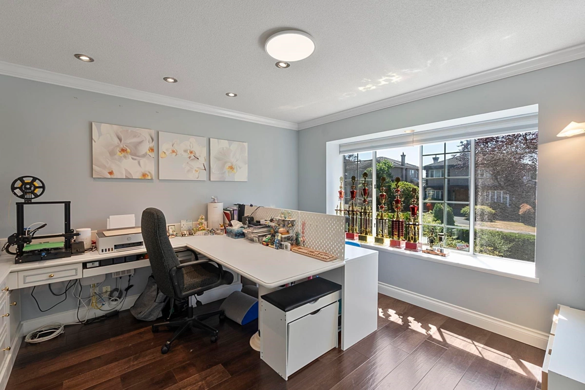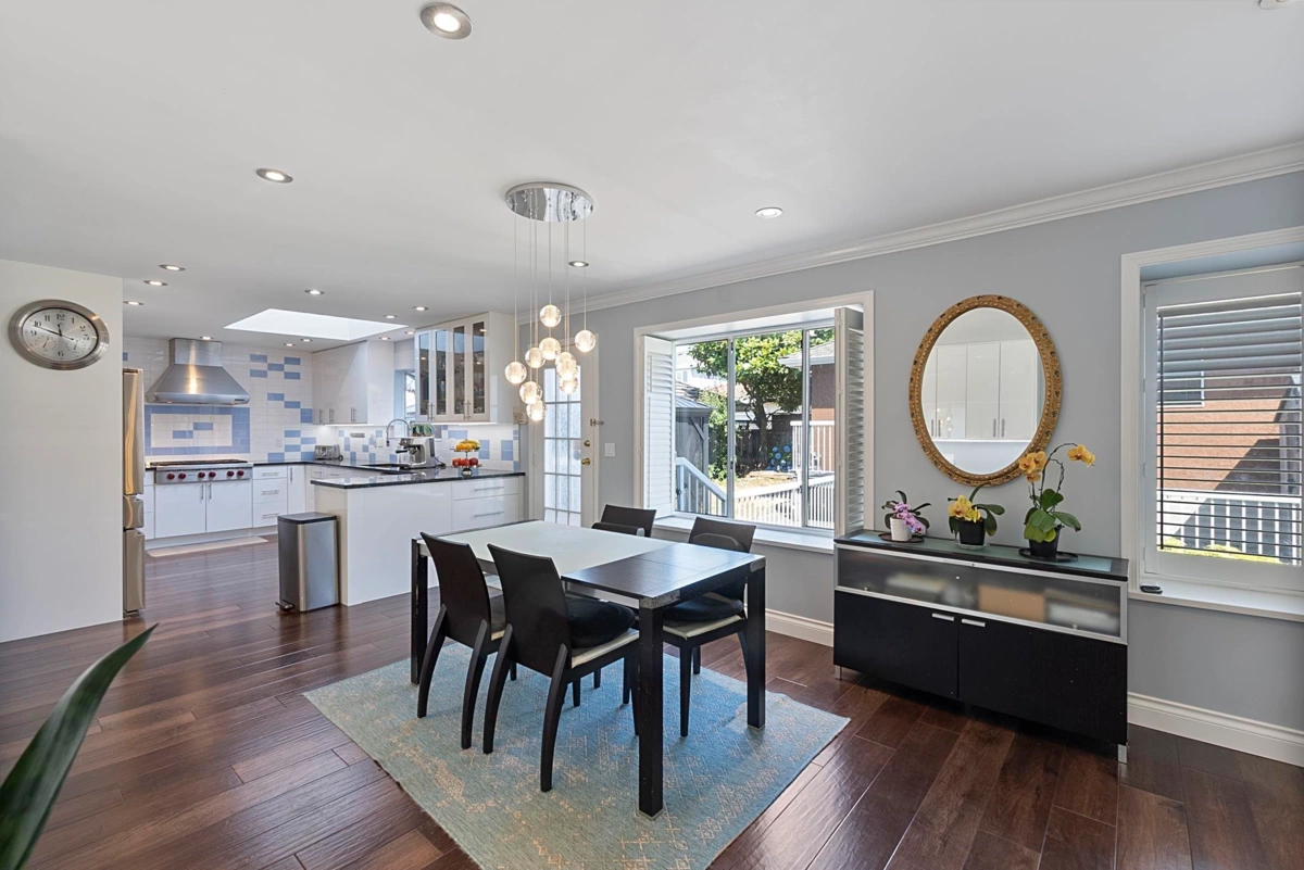 Welcome to this meticulously maintained, over 3,450sf family home, ideally situated on the high side of a quiet street in Vancouver's prestigious South Granville neighborhood. This elegant residence boasts 6beds & 5baths, offering refined comfort & a practical design. The heart of the home is a beautifully updated gourmet kitchen (2018), featuring top-of-the-line Wolf, Dacor, & Bosch appliances, complemented by granite countertops & luxury vinyl plank flooring installed in the same year. Comfort is ensured w/ AC, while the spa-like primary ensuite & steam bath provide a luxurious retreat. Additional features include custom built-in furniture in the den, expensive drapes, & a large 3-car garage. School catchment: Dr RE McKechnie Elem & Magee 2ndary.