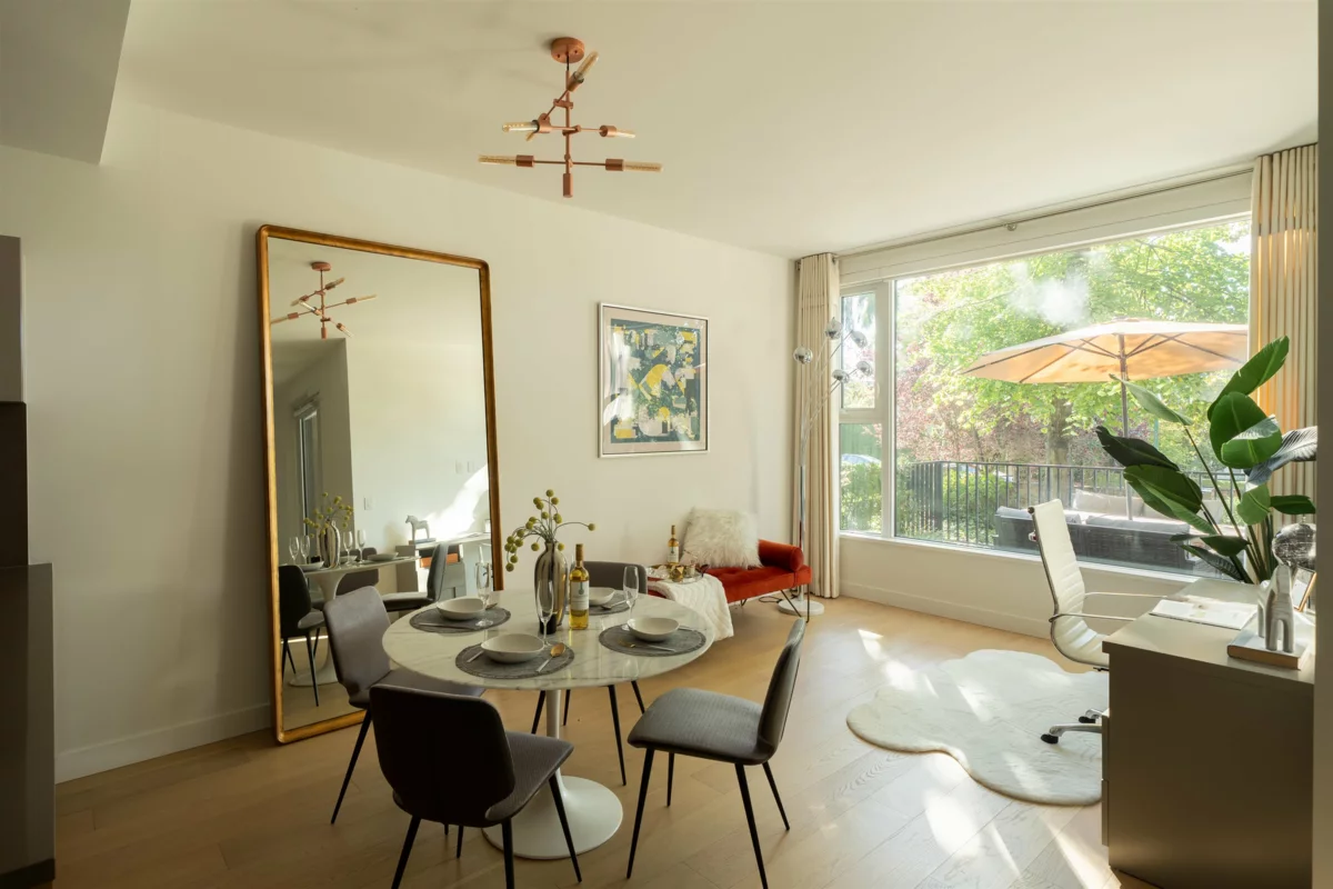 living in a luxurious townhome nestled within a park-like setting. This stunning concrete residence at Shannon Wall Centre – amidst a historic 10-acre estate in prestigious South Granville. Boasting two spacious bedrooms and 2.5 elegant bathrooms, the south-facing home features top-of-the-line Gaggenau appliances with a steam oven and wine fridge, exquisite Italian cabinetry, and air conditioning throughout. The bathrooms are luxuriously finished with limestone and marble, creating a spa-like ambiance. A private two-car garage and ample storage complete this exceptional residence. Residents enjoy exclusive access to a heated outdoor pool, a fully-equipped fitness center, a stylish clubhouse.all within a prime location just minutes from UBC, St. George’s School, vibrant shopping district.