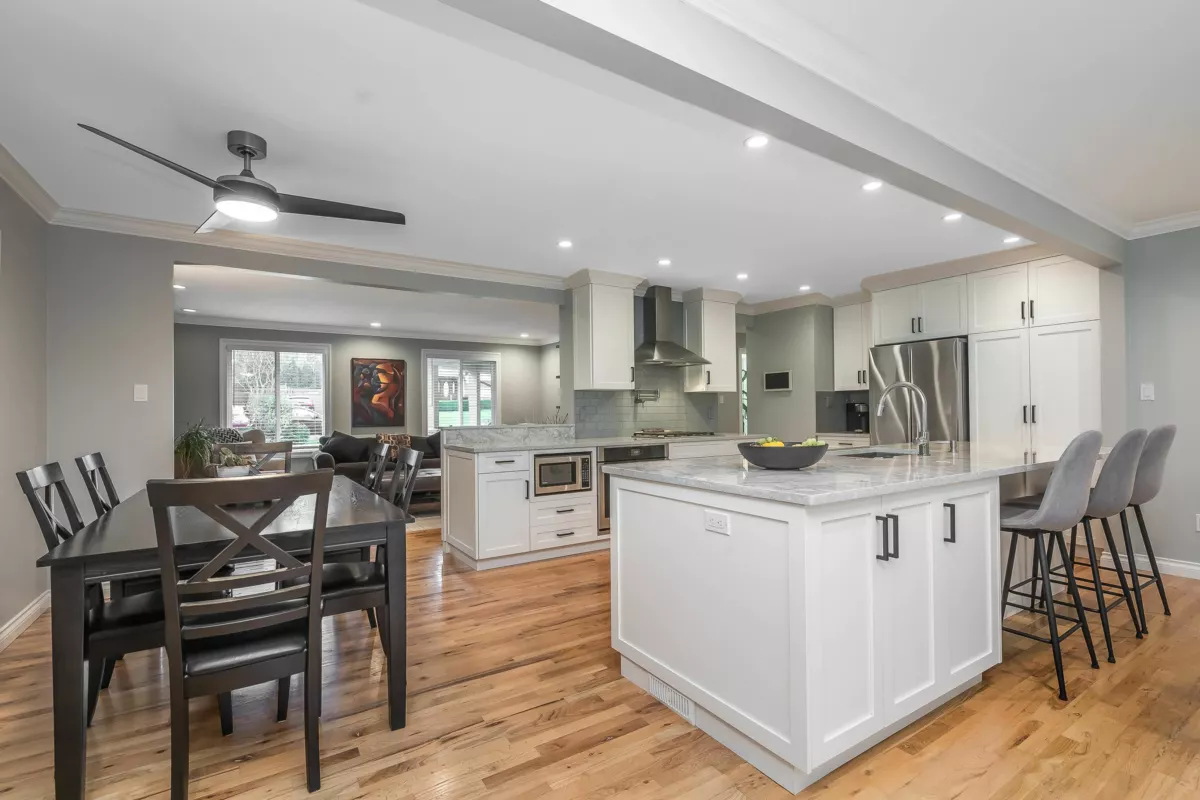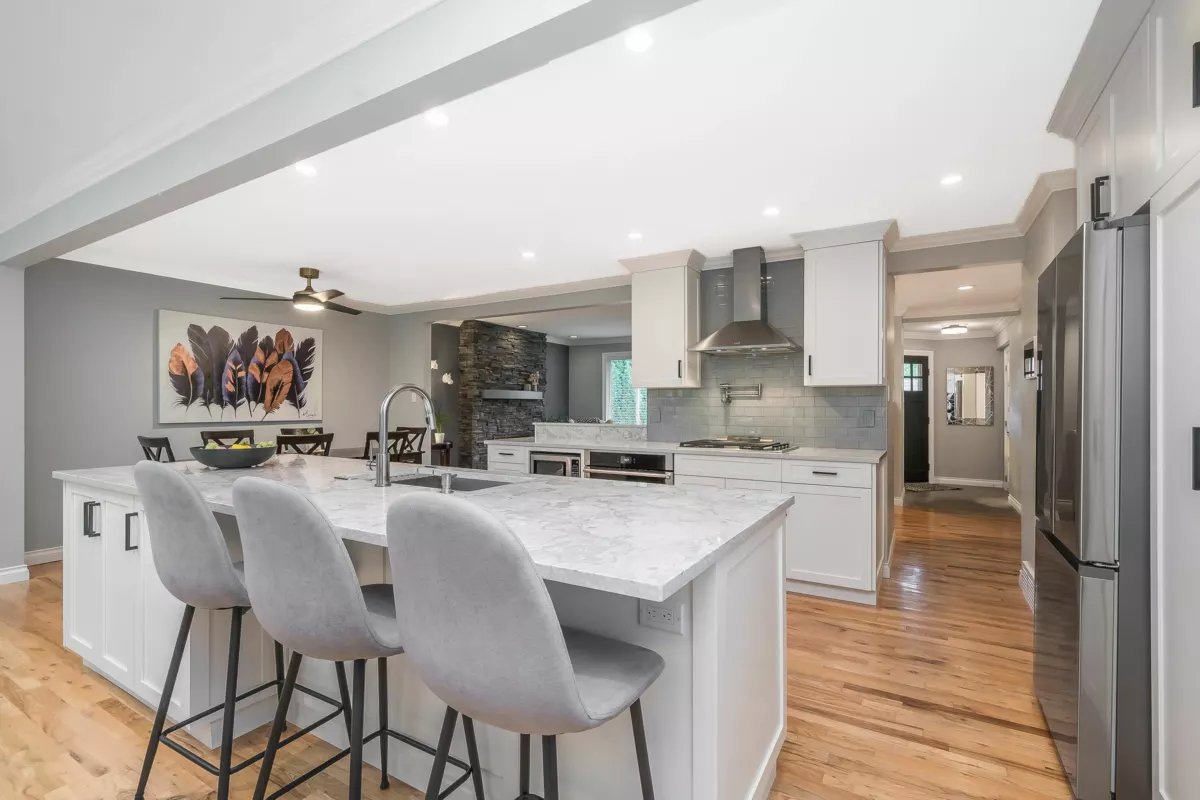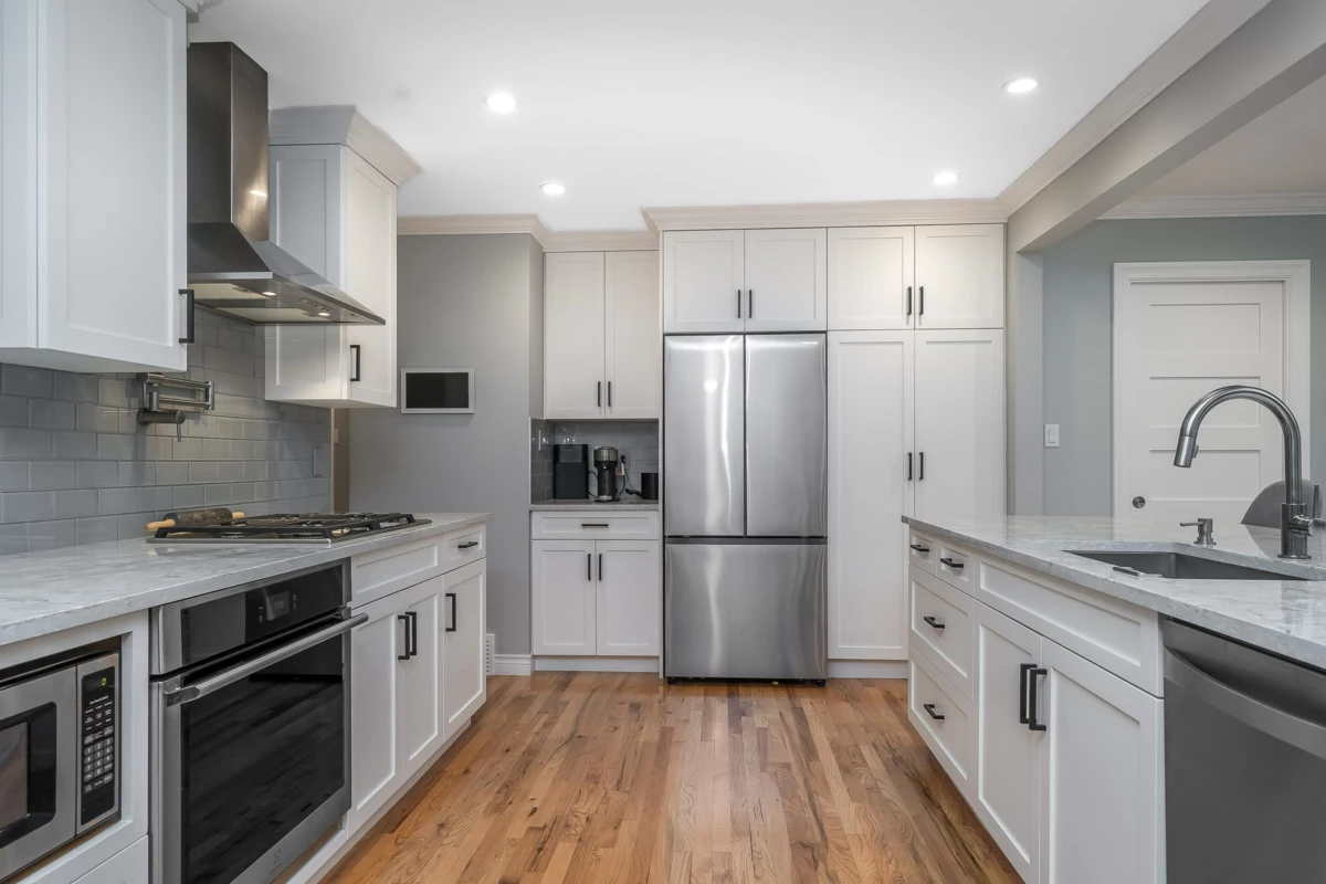 A flawless, fully renovated White Rock rancher. Located on a peaceful street just 30 seconds from Peace Arch Elementary. This stunning 3-bedroom, 2-bathroom home has been transformed with meticulous attention to detail. Original hardwood floors. Open-concept layout flooded with natural light. Stunning chef’s kitchen: dramatic quartz countertops, shimmering glass backsplash, new premium appliances, professional gas range, wall-mounted pot filler, and a huge walk-in pantry with upright freezer and water line. Spa-like main bathroom with freestanding soaker tub + oversized custom glass shower. Ensuite with sleek floating cabinets, dual sinks, and luxurious shower. Huge wraparound deck overlooks a large private yard. New high efficiency furnace, on-demand hot water and EV charger. O/H SUN 1-3.