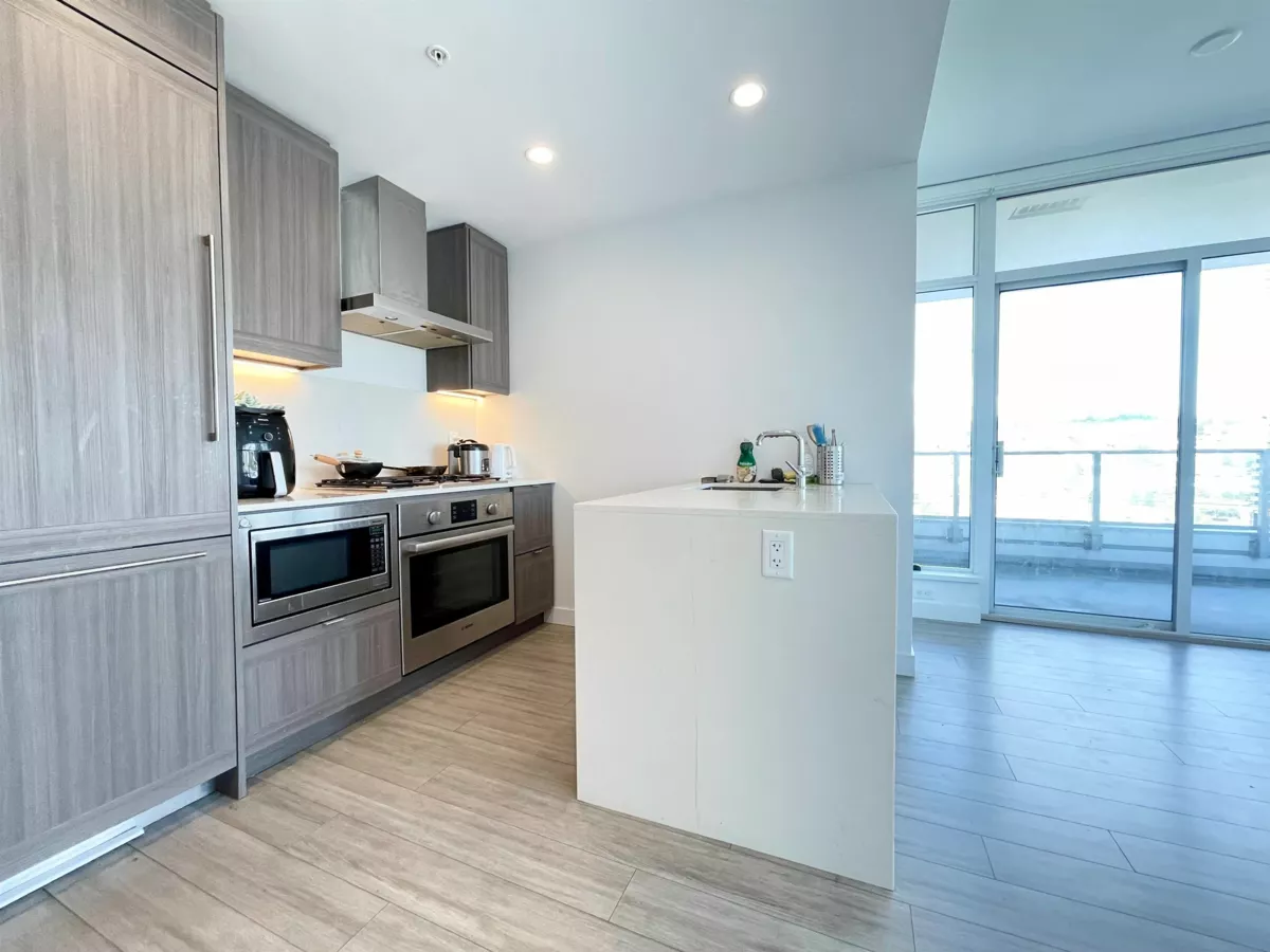 Brentwood modern urban living in this two bedroom unit at Lumina. This contemporary home features an open layout, North facing with abundant natural light, and a private balcony with beautiful city and mountain views views. The sleek kitchen boasts high-end Bosch appliances, a gas range-top, quartz countertops, under-cabinet lighting, and ample storage. Laminate flooring runs throughout. Enjoy top-tier amenities, including a fitness center, a multi-purpose room with a kitchen, and a communal terrace with a BBQ area. Located within walking distance of Brentwood Mall, SkyTrain, Whole Foods, and an array of shops and restaurants, this home offers both convenience and luxury.