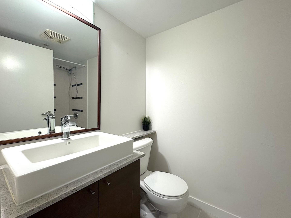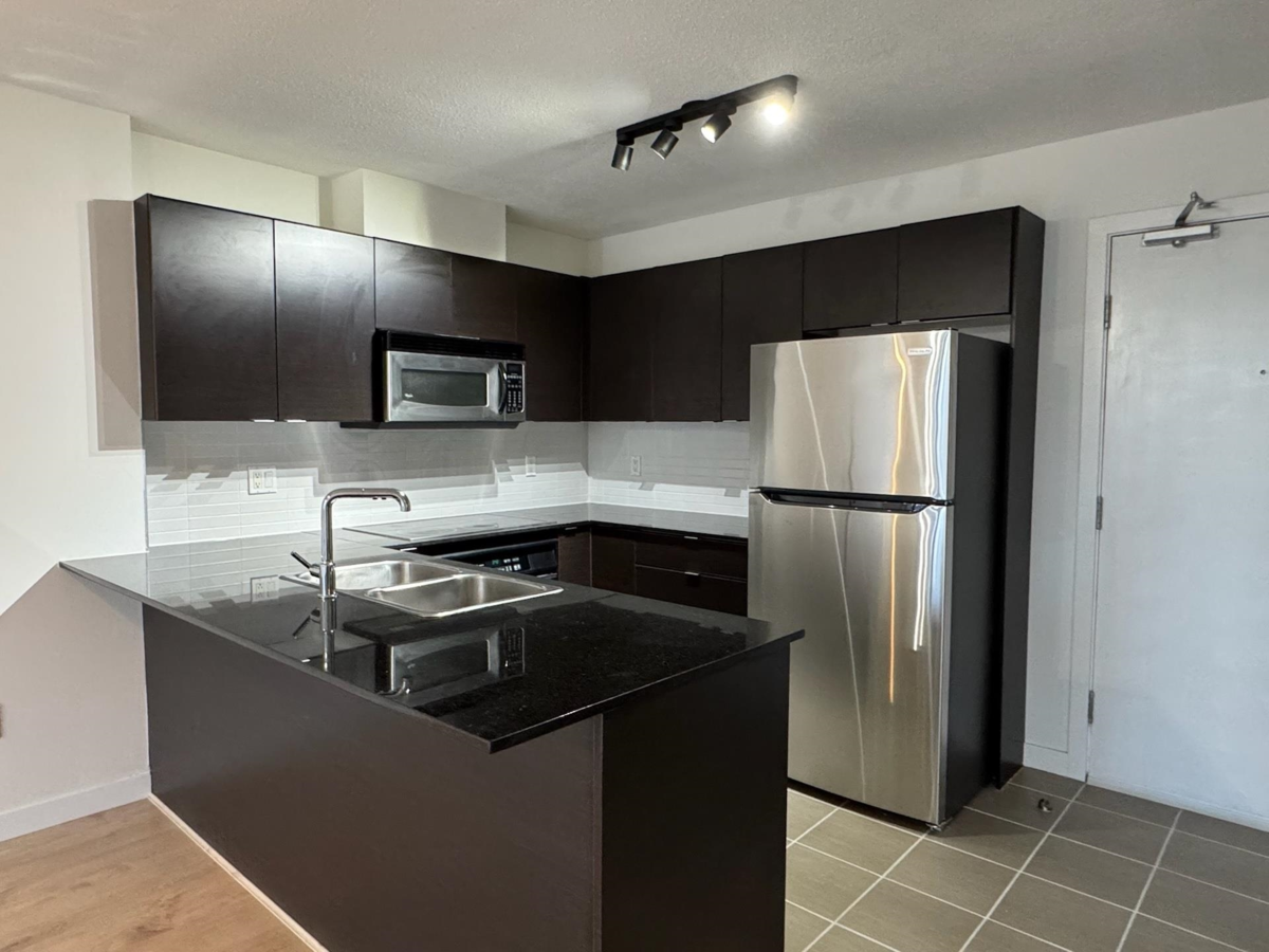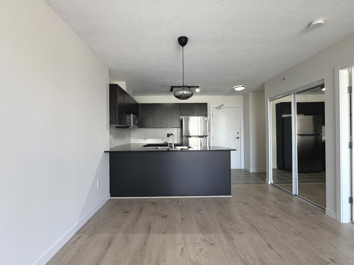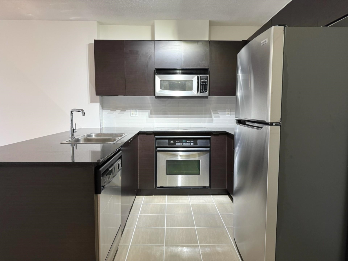 1 bedroom/1 bath at Tandem A in Brentwood Park. Open layout with bright spacious living room facing garden. Conveniently located across from Gilmore Skytrain Station with easy commute to within Metro Vancouver. Minutes away from highway. Close to Amazing Brentwood, Whole Foods Market, Home Depot, Costco and Metrotown. New T&T Supermarket to open soon at the Gilmore Place. New wall paint, new flooring and new stainless steel fridge. One parking & one storage locker. Quick closing possible.