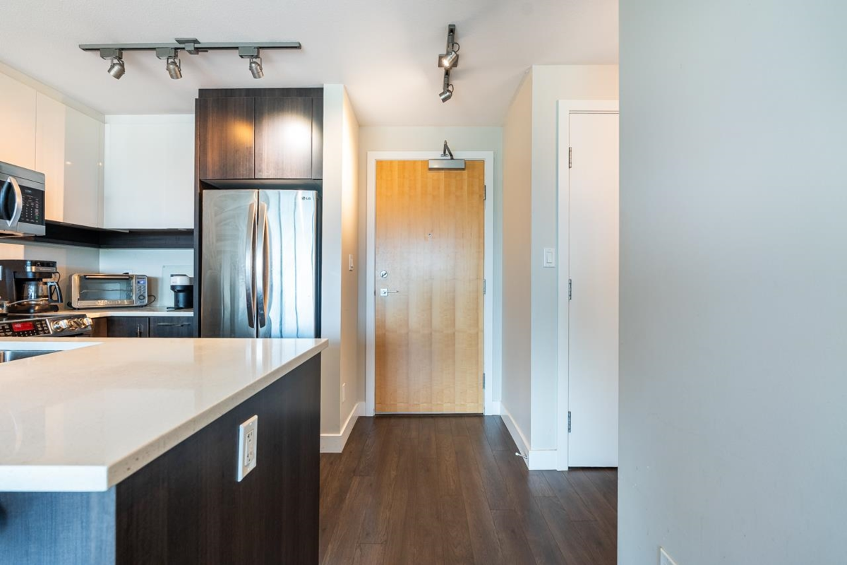 LOCATION! Walkable to everything, this spacious 602 sqft home at The Austin offers style, comfort, and convenience. Enjoy high-end finishings throughout with a spacious, open layout featuring floor-to-ceiling windows, a bright living room with access to a private patio, and a CHEF-INSPIRED kitchen with quartz counters, stainless steel appliances, double undermount sink, and breakfast bar seating for three. Good size bedroom with access to your patio and double closets with a 4-piece cheater ensuite. Great mountain views for your entertaining size private patio. Fantastic amenities include guest suites, lounge, gym/yoga room, children’s playground, and a large shared patio area. Tons of visitor parking, EV chargers. One parking & locker. Rentals & pets allowed.