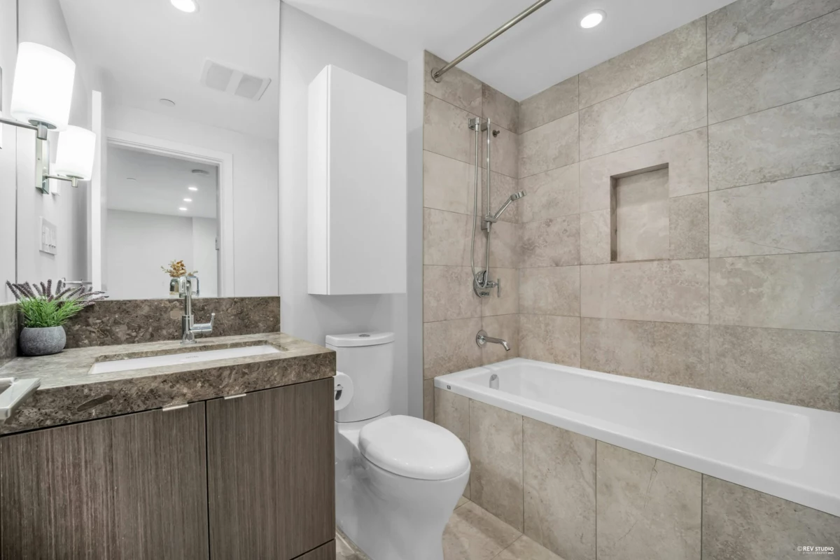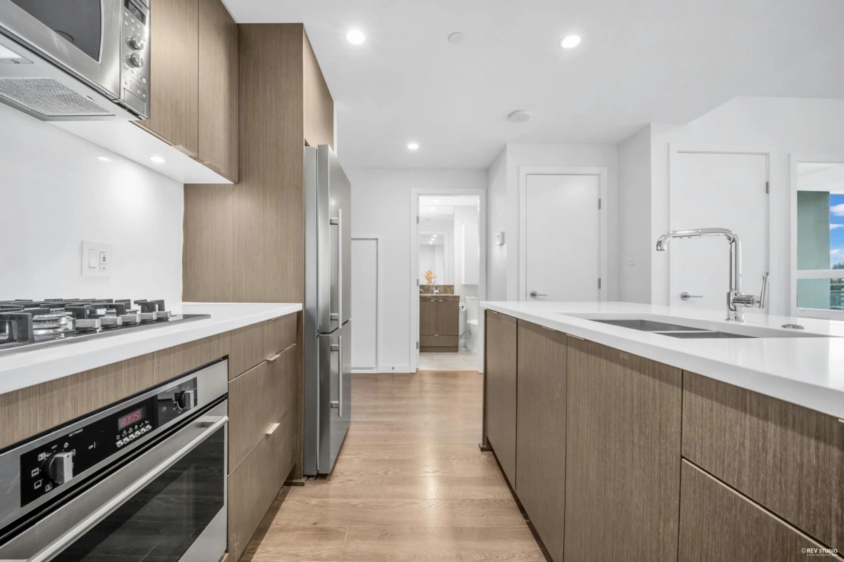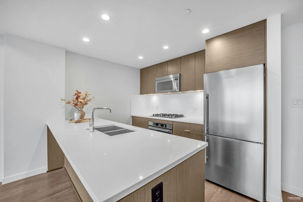 1 BED w/AC in Central North Van | Mountain and Ocean views | Perfect Condition w/New Countertop. Bright open layout w/floor-to-ceiling windows, kitchen with high-end stainless steel appliances, a gas cooktop, and sleek NEW countertops. Enjoy the full-size laundry and comfy heated bathroom floors. Luxury amenities include heated outdoor swimming pool, concierge, 3,000+sqft fitness centre, squash court, yoga + spin studios, steam room + sauna, theatre, guest suites, party room + media/meeting rooms. 1 Parking+1 Storage Locker + 1 Bike Locker + Free Visitor Parking included. The ultimate convenience is right at your doorstep with Whole Foods, shops & restaurants downstairs. Must-see!