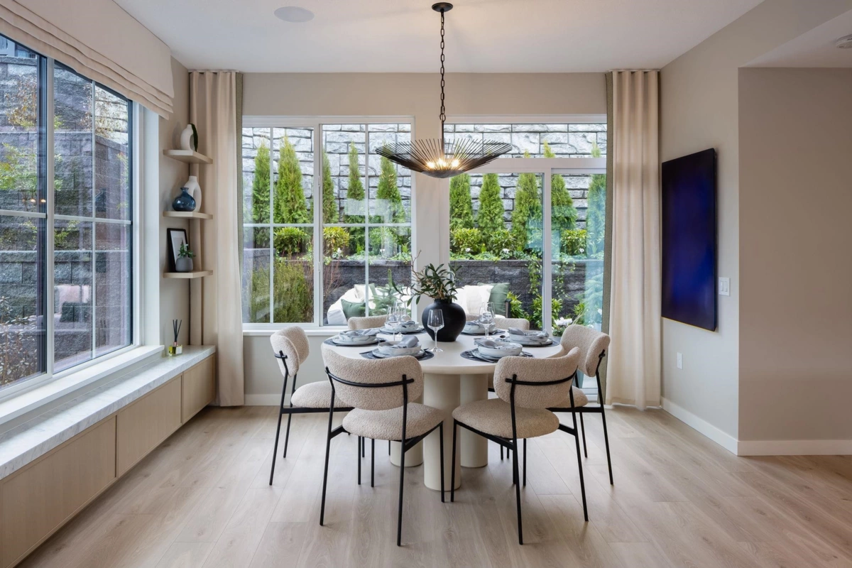 This 3 bed 2.5 bath plus den corner home at Polygon's Ridgewood belongs to a limited collection of townhomes nestled in Coquitlam' s Burke Mountain neighbourhood. Enjoy 1,491 sq. ft. of living space with overheight main floor ceilings, laminate wood flooring, expansive windows, and your own patio off the dining room. The kitchen boasts custom cabinetry, sleek appliances, stone countertops, full-height marble tile backsplash, and a generous island. Upstairs, the main ensuite features a spa shower with built in bench. Plus, enjoy the convenience of a double car garage and a heat pump air conditioning system. Visit our sales office and two display homes at 3637 Sheffield Avenue, Coquitlam, open noon - 5pm daily (except Friday), to learn more.