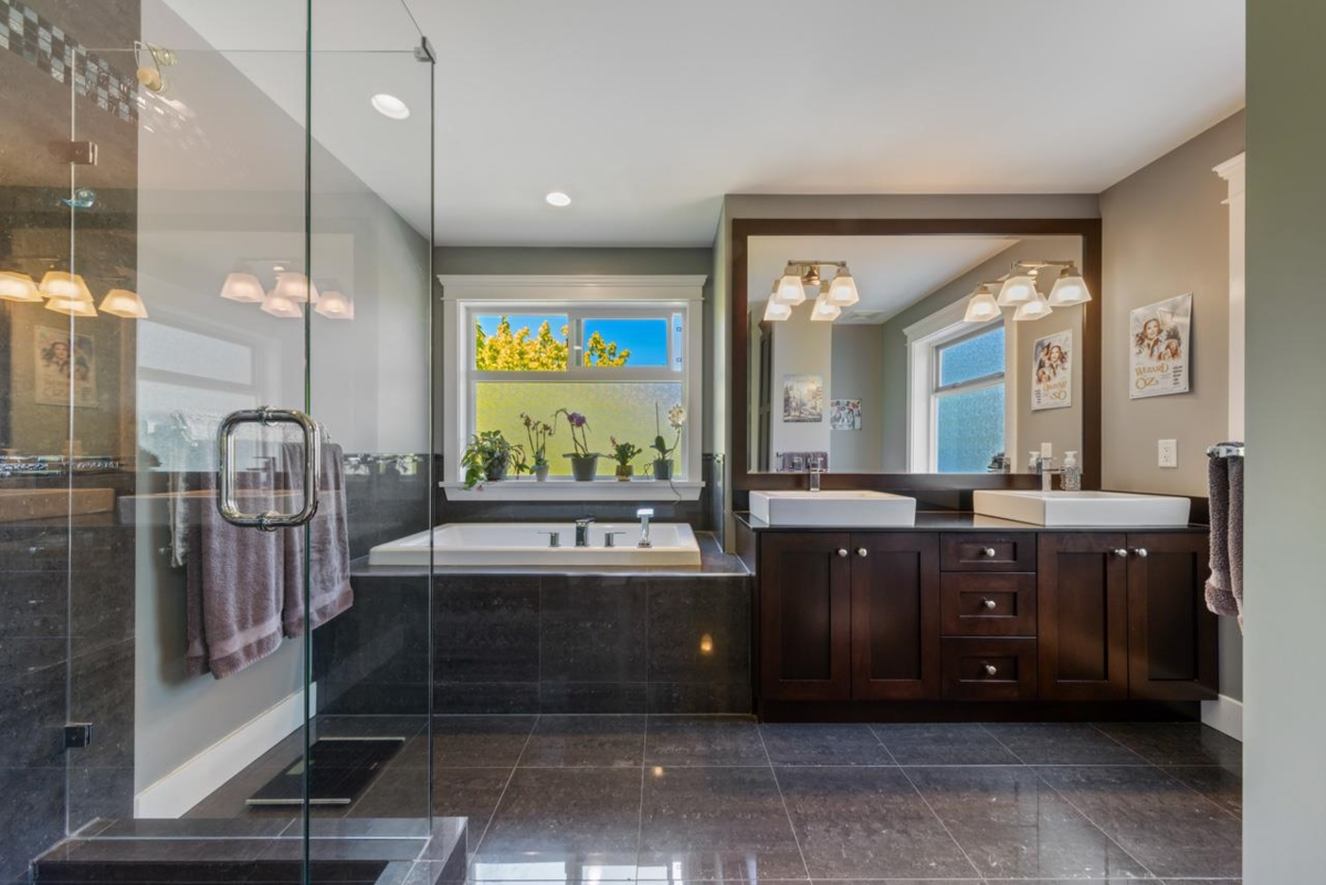 Custom-built on a prime CORNER LOT in South Surrey's coveted Morgan Heights, this home blends timeless design with modern elegance. Meticulously maintained with quality craftsmanship throughout, it features air conditioning, a chef's kitchen perfect for entertaining, and a thoughtfully designed layout with three bedrooms upstairs, including an oversized primary suite with vaulted ceilings and a spa-inspired ensuite. The fully finished basement features a bedroom, a flexible space perfect for a media or rec room, and a separate entrance offering the potential to add a suite. EV-ready double garage. Just minutes from top-rate schools, shopping, dining, golf, and more. This one checks all the boxes!
