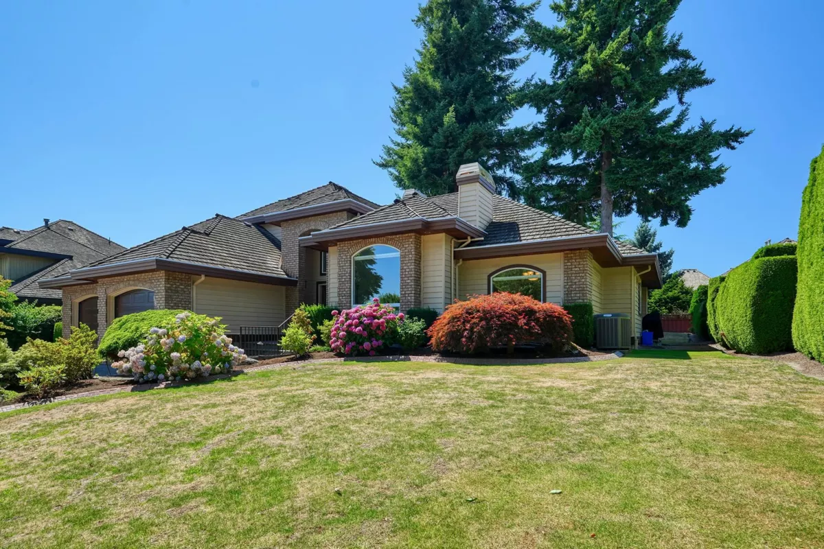 Spacious rancher with loft and basement in exclusive Morgan Creek Golf Course community. Located on a quiet street in sought after neighbourhood is ready to impress you, crown mldgs, soaring ceilings., 4 F/Ps , A/C, extensive decks & garden area. This executive home is an entertainers paradise! Formal dining and living rooms, big bright family room and kitchen is loaded, perfect for entertaining. Primary on main w/super large enste, W/I clos., sliders to garden decks & a gas F/P, 2 more generous bedrooms up, full bath & open den & another F/P, affords privacy & separation. XL games room downstairs w/ F/P, additional den/office w/French drs, extra stor. & 2pce bathrm. Private backyard has matching storage rm & mature landscaping. This home has it all, you won't be disappointed.