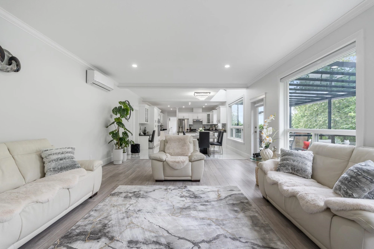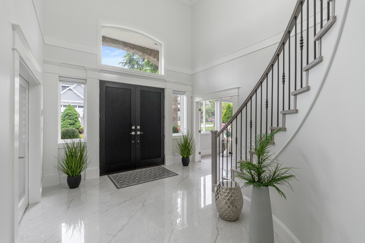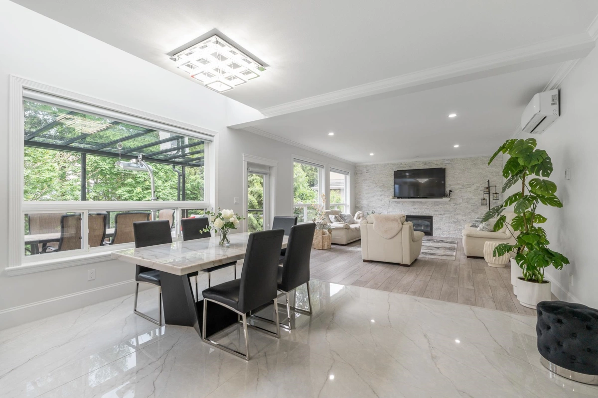 Extensively renovated custom built 5,574 sqft home sitting on almost 14000sqft lot in Fraser Ridge. With BEAUTIFUL RIVER and MOUNTAIN VIEW this home has too many new features to mention. New Kitchen, New floors, A/C, New appliances , New paint, New glass covered patio and picnic patios, New sprinklers, New bathrooms, Refinished doors and much more. Grand foyer w/ high ceiling, den on main, traditional living/dining,Gourmet modern kitchen w/ WOK kitchen, huge family rm, eating area w/ patio door opens to covered balcony. Upstairs primary bdrm w/ 6 pieces ensuites plus 3 more bdrms /2 more baths. Daylights w/o bsmt is finished w/3 bsrms and a bath, living rm, dining rm w/ a seperate entrance. Radient heating on 3 levels, designor reno that you will fall in love!
