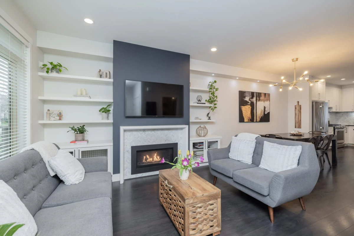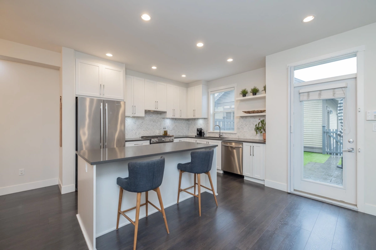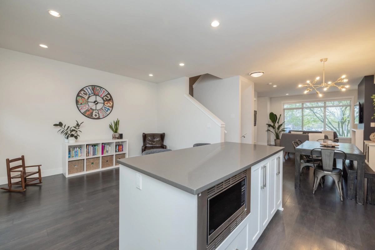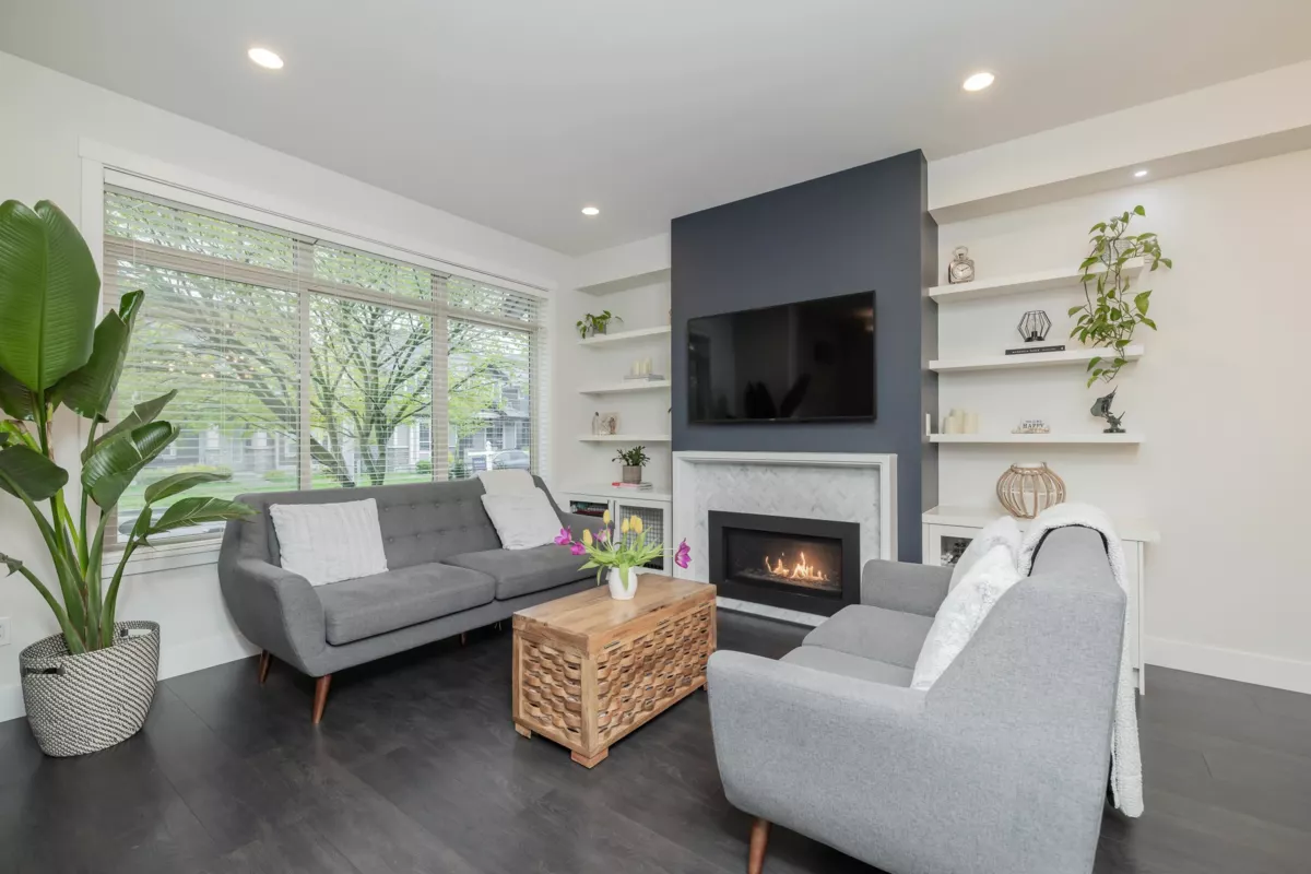 SEE VIRTUAL TOUR! NO STRATA FEES - Welcome to Hycroft and this 4 bed, 4 bath, rowhome with just over 2300 sqft of living space. As you walk inside your main floor shows off a lovely living room with gas fireplace, white kitchen (shaker style) cabinets (2020), stainless appliances, built ins, south facing, fenced back yard with pet friendly turf (2021). This list could go on! Bonus 2pc bathroom. Upstairs has 3 bedrooms, primary suite features radiant in floor heating. Downstairs is set up perfectly for the growing family, 1 bedroom with cheater ensuite, and a media/flex room with built in surround sound. Walking distance to schools, rec, restaurants and shops. This is why Grandview Heights is popular! Call today for your private viewing.