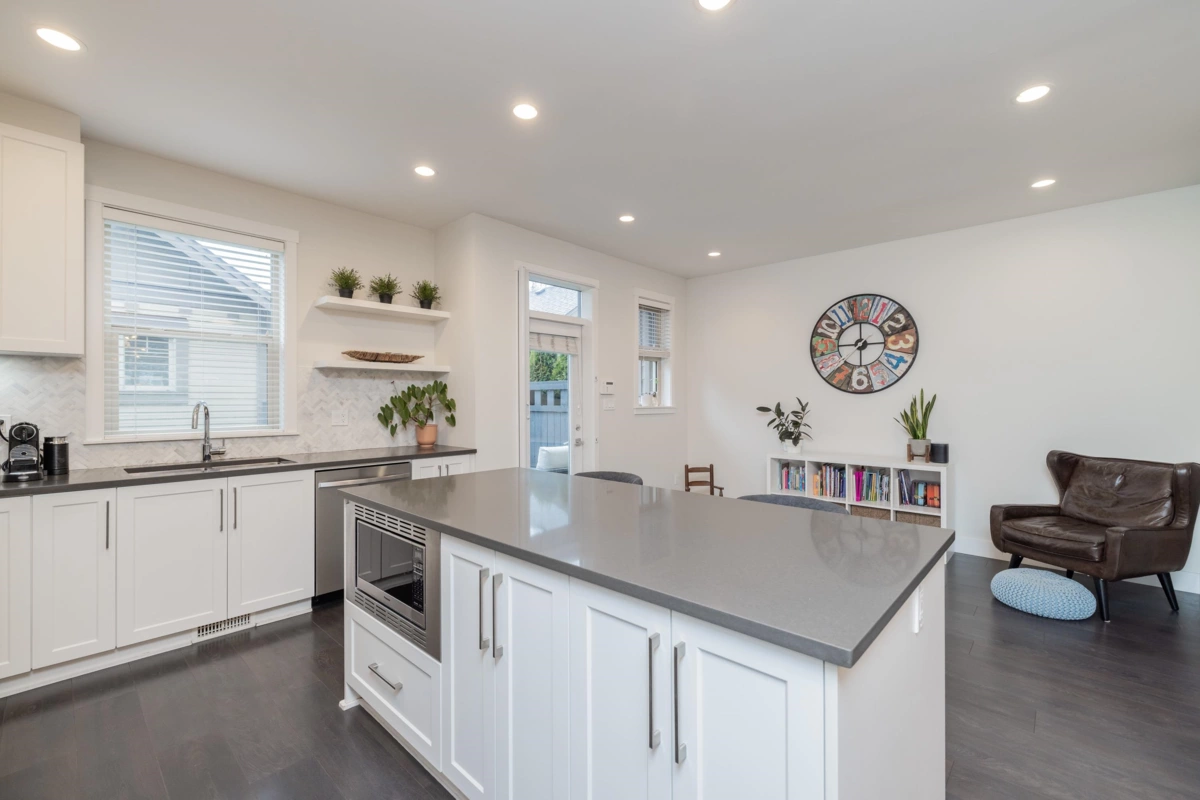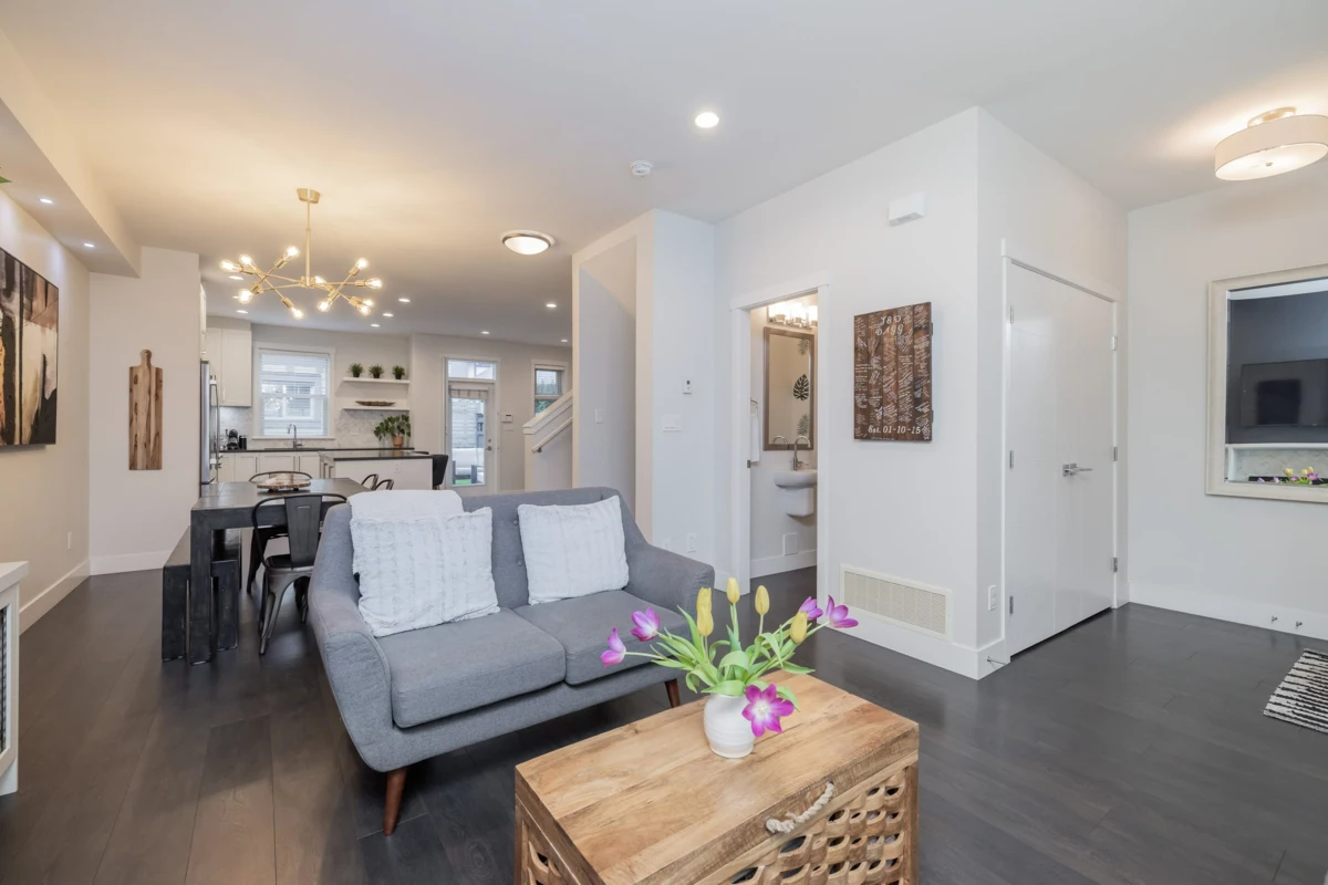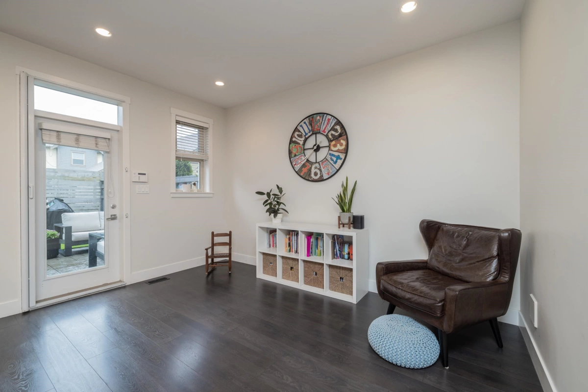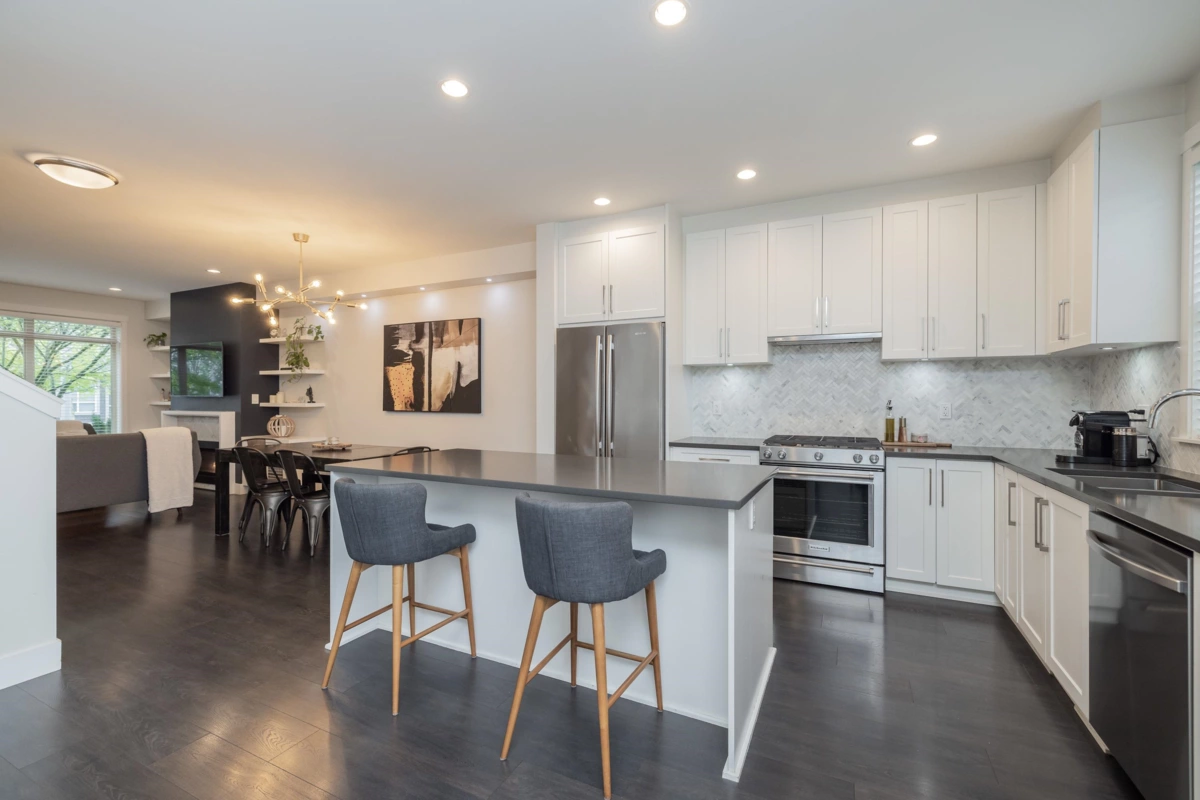 SEE VIRTUAL TOUR! NO STRATA FEES - Welcome to Hycroft and this 4 bed, 4 bath, rowhome with just over 2300 sqft of living space. As you walk inside your main floor shows off a lovely living room with gas fireplace, white kitchen (shaker style) cabinets (2020), stainless appliances, built ins, south facing, fenced back yard with pet friendly turf (2021). This list could go on! Bonus 2pc bathroom. Upstairs has 3 bedrooms, primary suite features radiant in floor heating. Downstairs is set up perfectly for the growing family, 1 bedroom with cheater ensuite, and a media/flex room with built in surround sound. Walking distance to schools, rec, restaurants and shops. This is why Grandview Heights is popular! Call today for your private viewing.