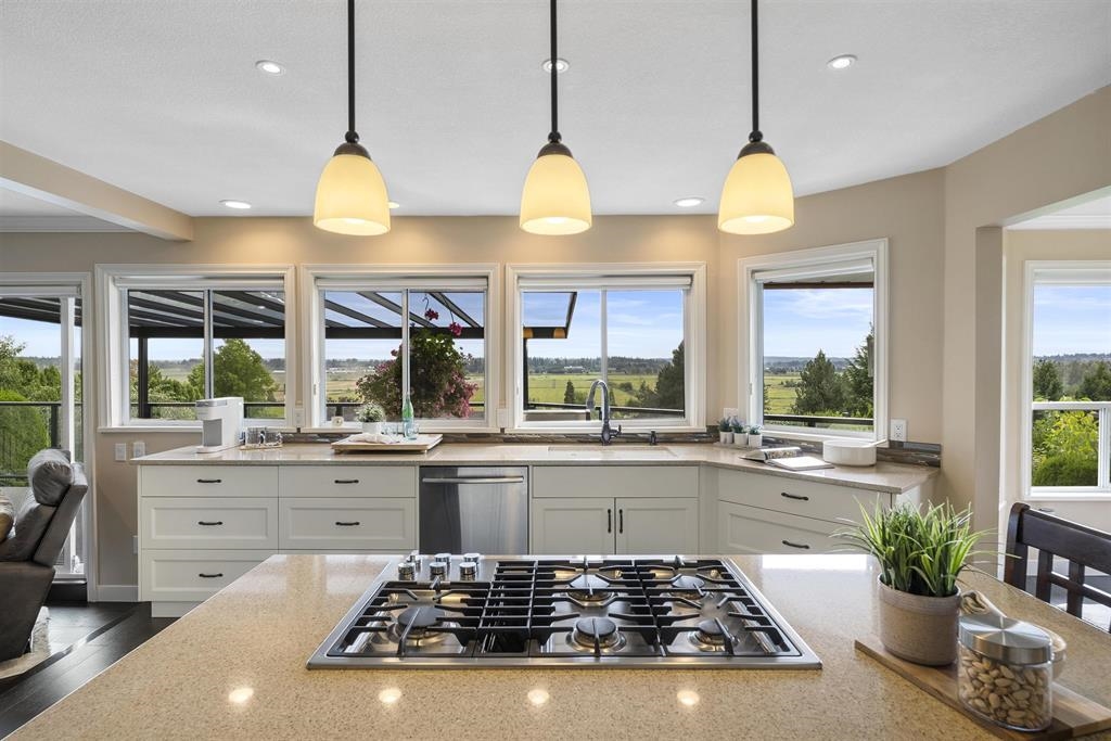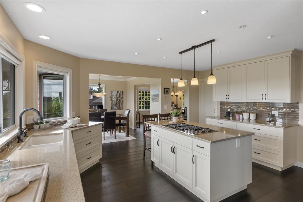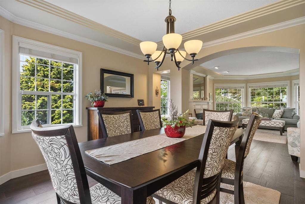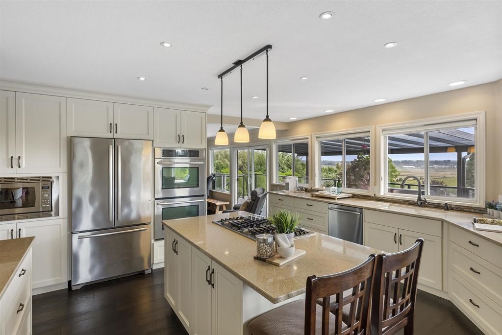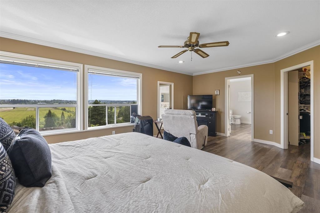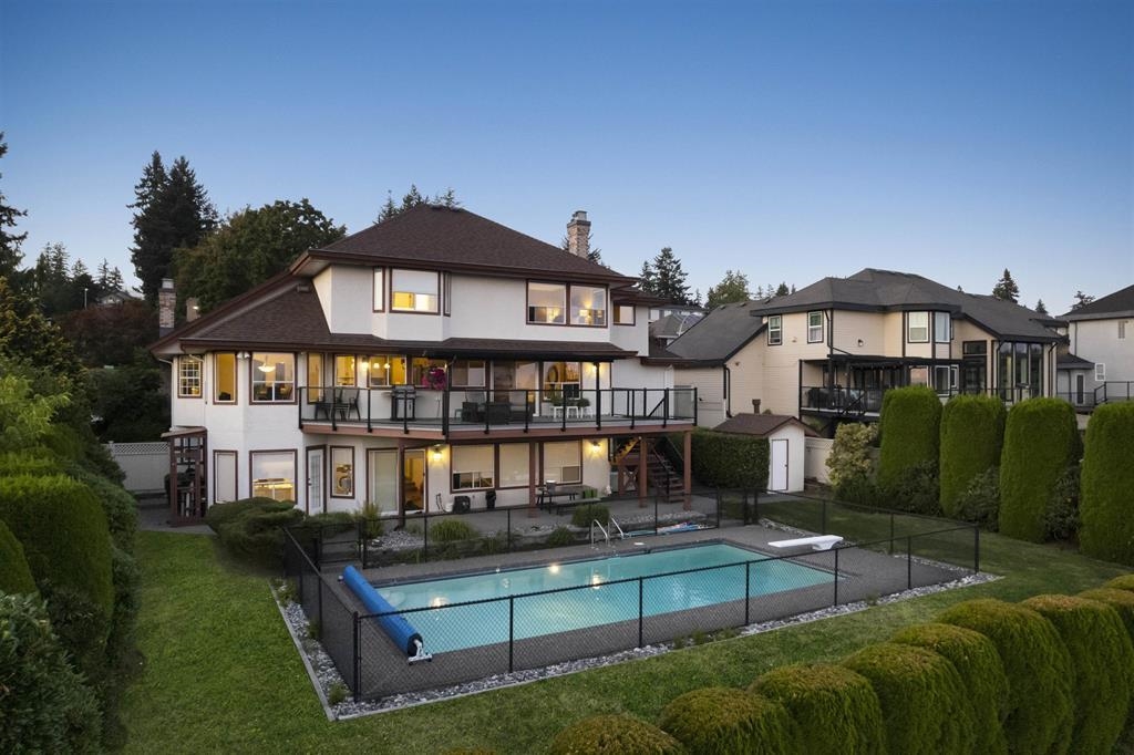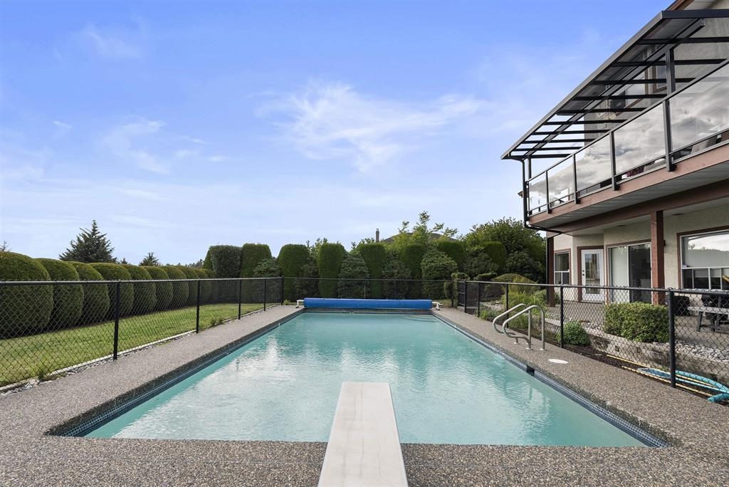 Palatial 6BR 4.5BTH in prestigious Coast Meridian Estates. This luxurious 4,800 sqft residence sits atop a tastefully manicured 12,000 sqft+ corner lot w/ 3 car garage & expansive driveway. French doors open into a bright & airy foyer drawing you into elegant, refined spaces w/ thoughtful details throughout. Your chef-inspired kitchen features crisp, granite counters alongside stainless steel Jenn-Air appliances & a walk-in pantry. Enjoy unobstructed views of Northview Golf, Serpentine River Valley & Mt Baker from the comfort of your sprawling, 442 sqft covered balcony or your spacious primary bedroom boasting an enviable, spa-like ensuite. Updated ground level 2BR 1BTH w/ sauna below leads to a private, south-facing backyard w/ in-ground pool - perfect for in laws or as a mortgage helper.