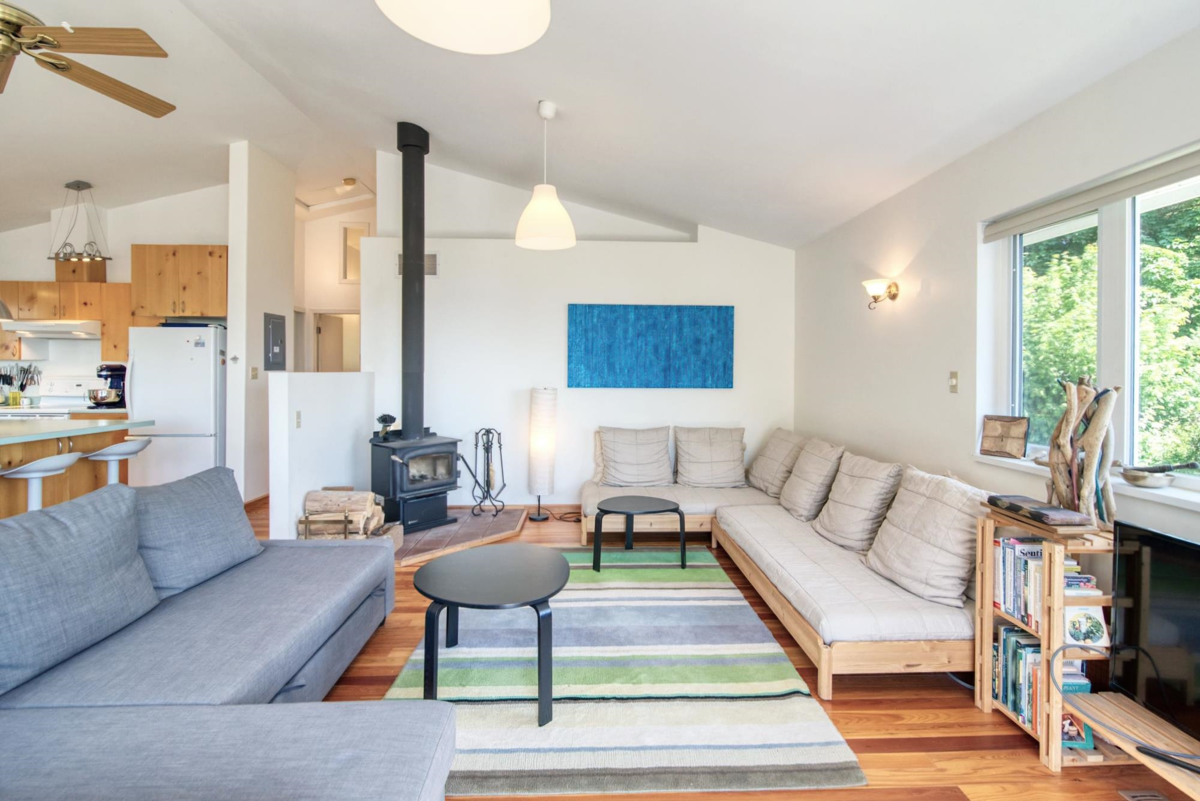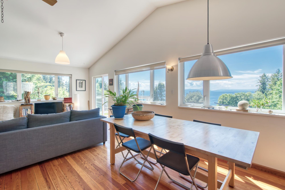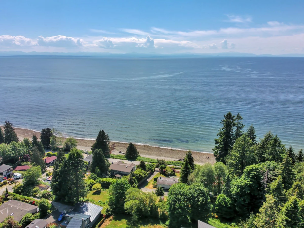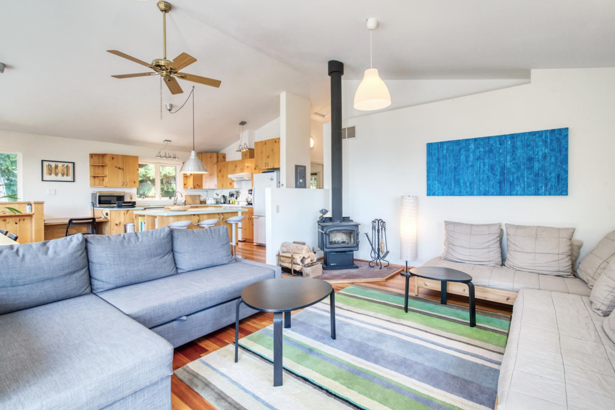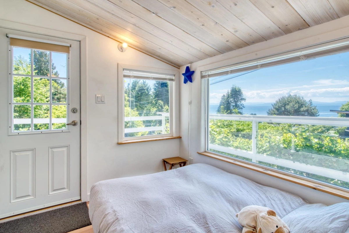 Panoramic Views in a Exquisite Location! This remarkable 4-bed/2-bath home is nestled at the quiet end of a cul-de-sac, situated on a generous 0.51-acre lot just one block away from the highly coveted Ocean Beach Esplanade. The stunning grounds are a true oasis, perfect for the avid gardeners, adorned with mature shrubs, several fruit trees, and a stand of cedar trees which evokes a sense of tranquility. The outside oversized sun decks are perfect for entertaining. Inside, an open-concept main living space offers vaulted ceilings, wood stove, breathtaking ocean views, a well planned kitchen with tons of storage and a oversized island. The lower level boasts two extra bedrooms, a wet bar, and an open living space that can easily suited, along with a large studio space.
