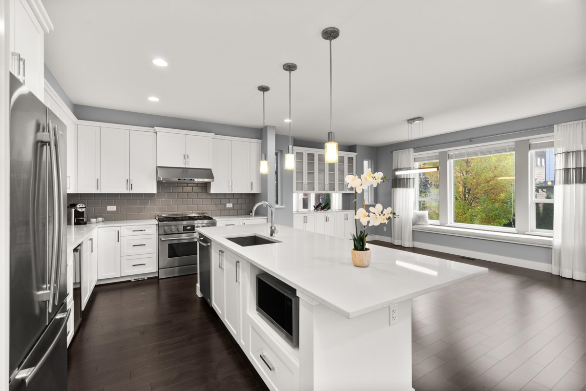 This luxury 3513 SQFT home is elegantly built, located in the most popular Pacific Heights neighbourhood. It is characterized by every impressive detail of craftsmanship with a South exposure back yard. The home is bright and functional, featuring high ceilings, 4 bedrooms and 3.5 bathrooms, huge open kitchen & pantry, s/s appliances, quartz countertops, glass stair railing, wide-plank hardwood flooring. The vaulted-ceiling master bedroom w/a south-facing balcony, spa-like ensuite w/ seamless glass shower and separate tub make this home special & different. The walkout basement has an entertainment space and a suite. It's equipped AC, irrigation system, fenced and low-maintenance yards, and much more! No lawn work in backyard is a bonus! Ta’talu Elementary & Earl Marriott Second catchment.