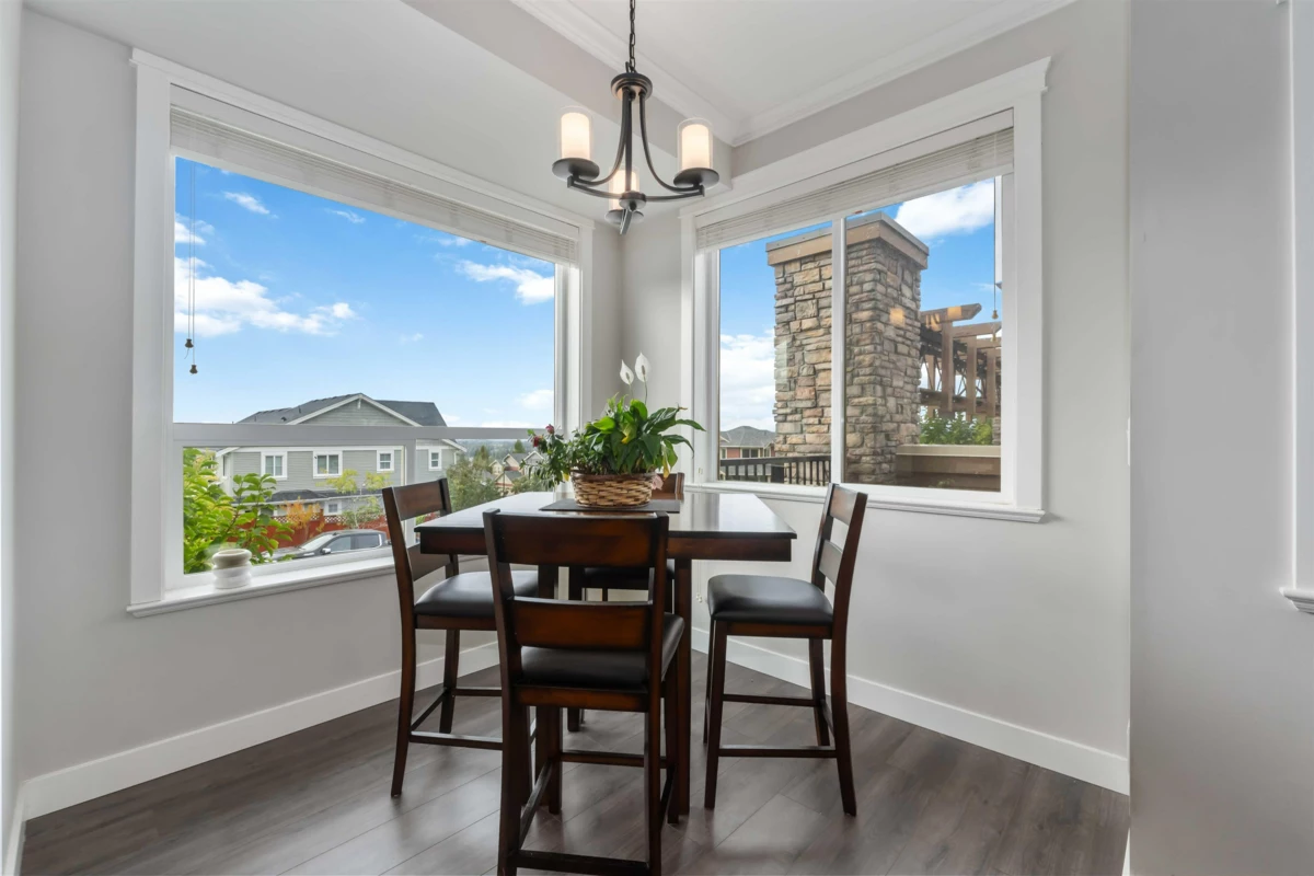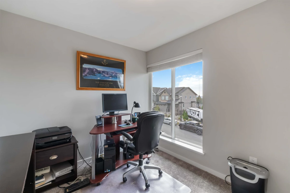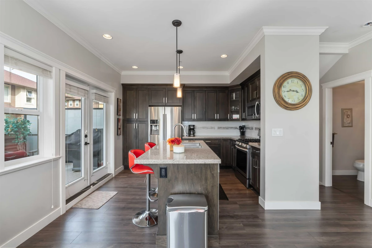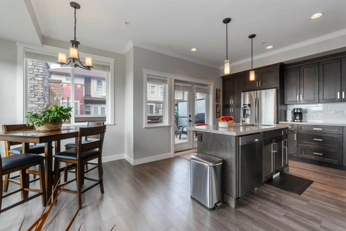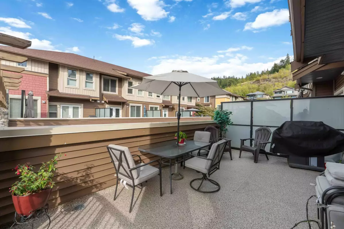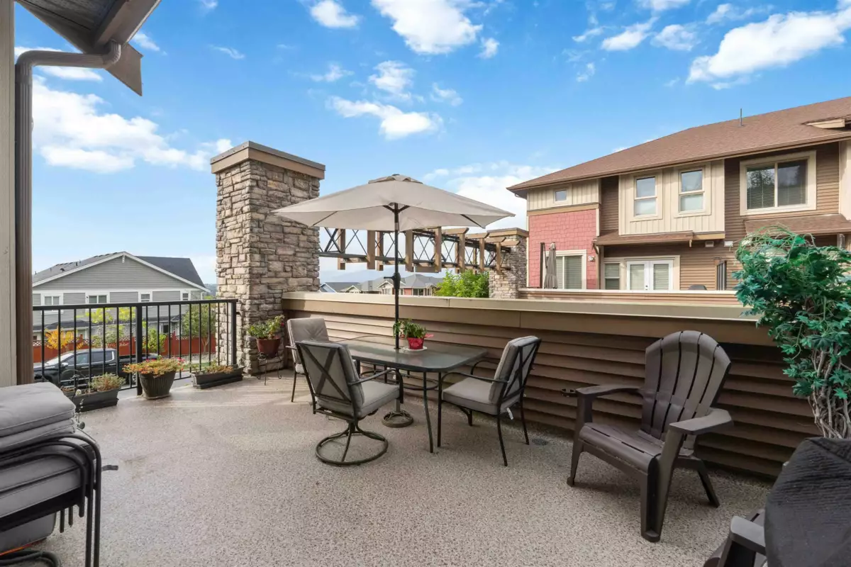 Welcome to The Terraces II! This executive 3 bed, 4 bath townhome offers stunning mountain, valley & sunset views from every window. Quality finishes include a formal living room wl crown moulding throughout, built-in cabinetry, fireplace & laminate floors. The gourmet kitchen boasts quartz counters, island, stainless appliances & gas range. French doors lead you out to an XL private deck perfect spot for entertaining & BBQ'n. Upstairs features a spacious primary w/ walk-in & spa-like ensuite plus 2 more bedrooms & full bath. Basement flex space is perfect for media, office or gym. Huge double garage with high ceilings + A/C for summer comfort. Walk to schools, trails & shops!