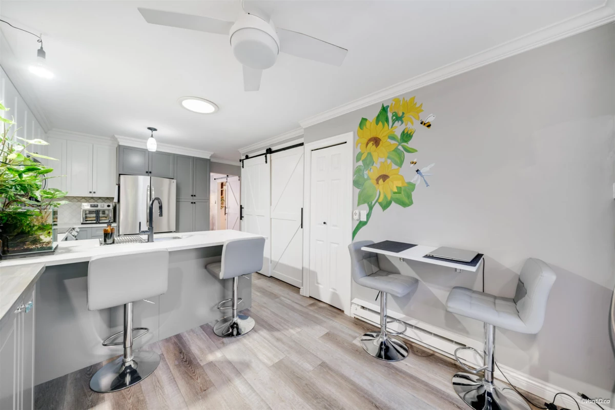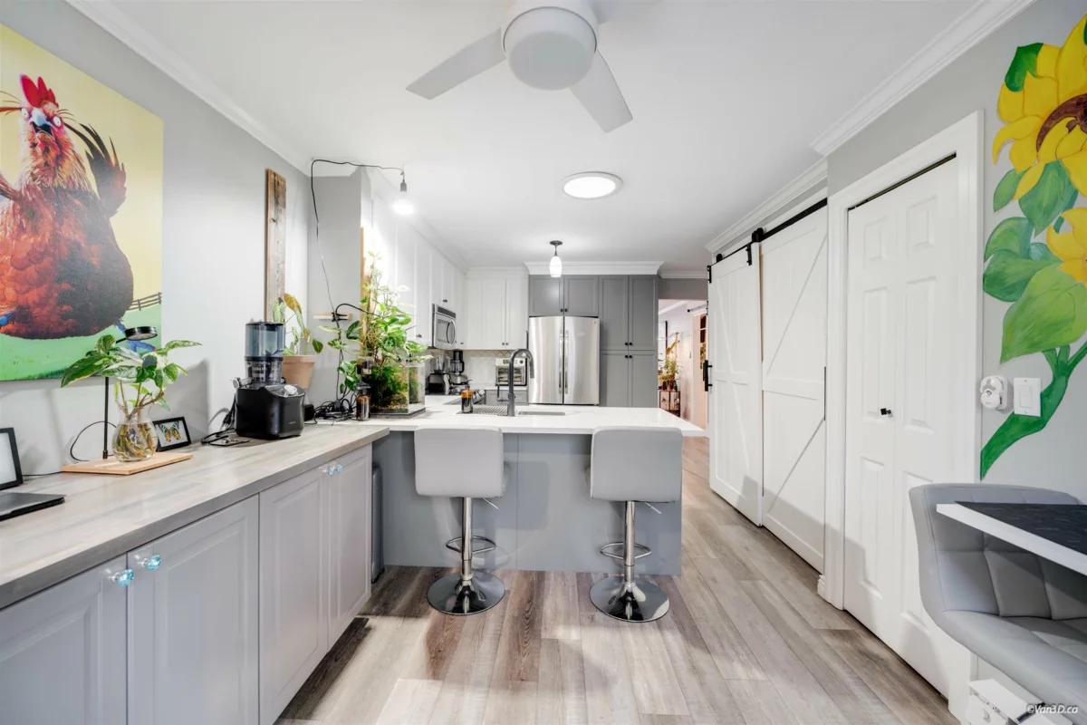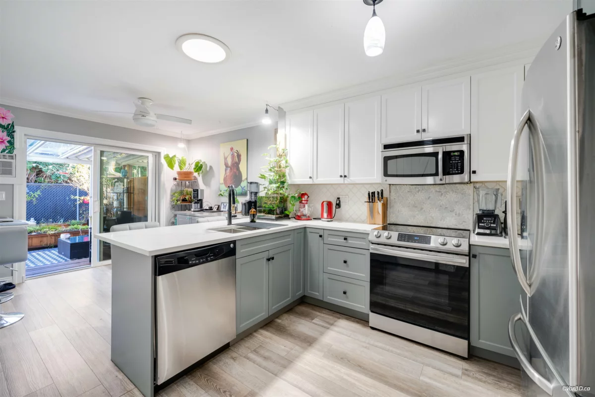 "THE BOARDWALK" 55+ COMMUNITY Tucked away is this 20 unit complex of RANCHER style townhomes perfect for the "downsizer" seeking 1 level living with a small YARD, attached single GARAGE, in a private, friendly, neighbourly enclave. This home offers 2bdrms (2nd bedroom has 3 closets & SKYLIGHT) two recently updated Bathrooms and long garage with workshop. The interior has been elegantly UPDATED with CUSTOM CABINETRY in the Kitchen & both Bathrooms as well as New Countertops & Lighting. Living room has a WEST facing BAY WINDOW & GAS F/P and a adjoining Dining room w/"Sky Tunnel". Kitchen has an eating bar, lots of Cabinets/Counters/Pantry w/pull out shelves & 2 "Lazy Susan's". Family room w/sliders to large Covered Private Patio and Yard. Luxury Vinyl Flooring throughout.
