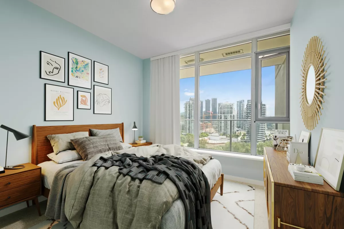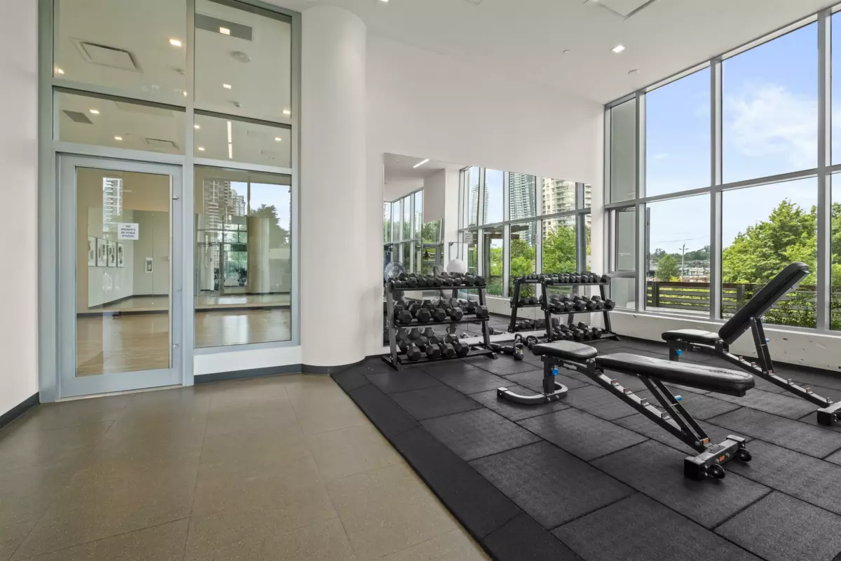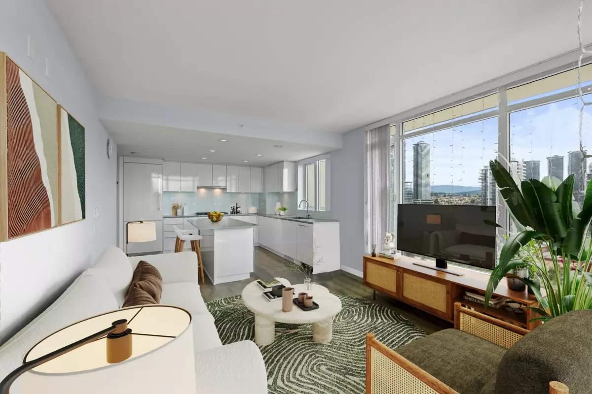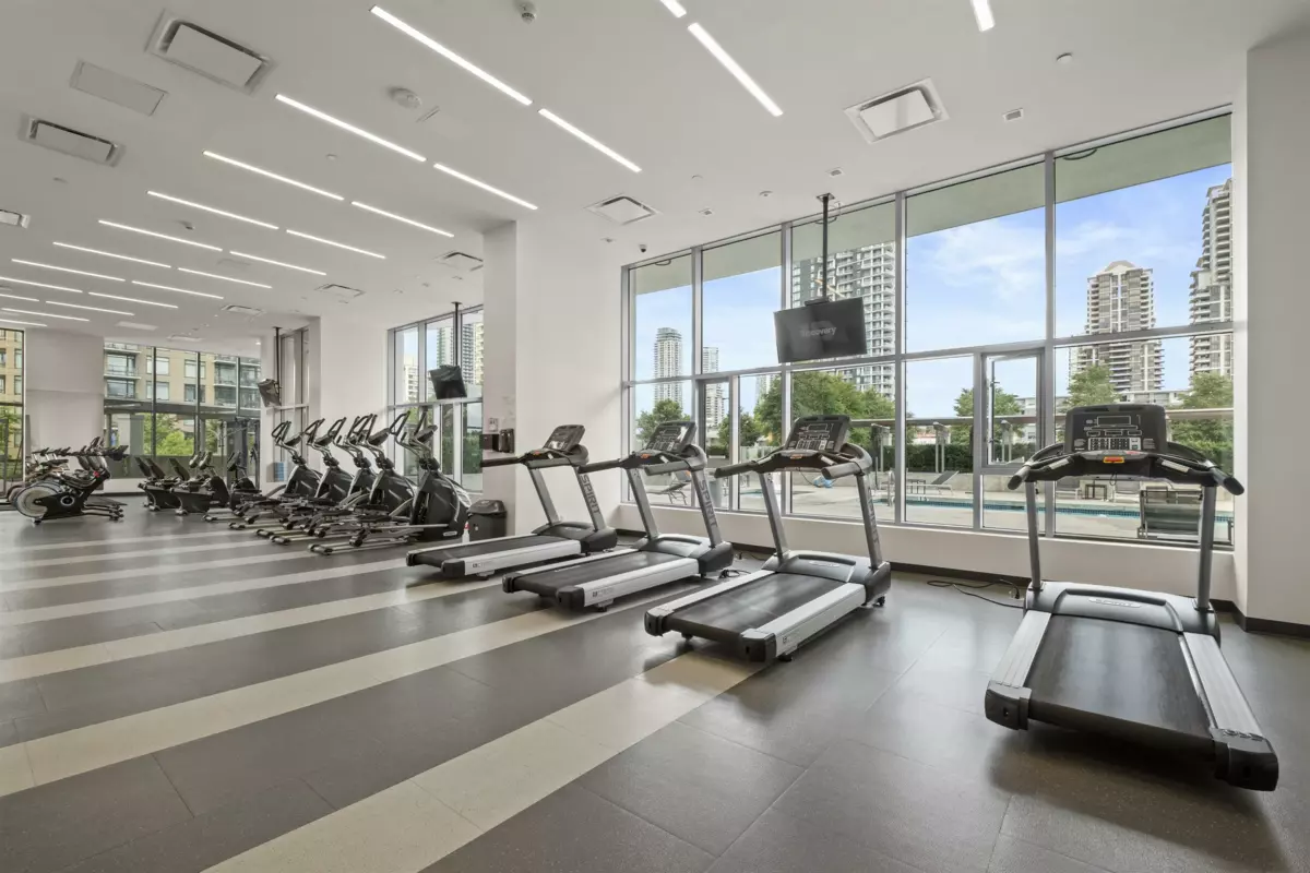 Fulton House by Polygon. Unit 1701 is a bright SE corner 2-bed, 2-bath home with two view balconies. Window over the kitchen sink frames the skyline as you cook. Floor-to-ceiling windows, 9 ft ceilings and laminate floors keep it open and light. Bedrooms sit side-by-side off the living area, ideal for young families. Kitchen has gas cooktop, built-in fridge and quartz island. Full-size side-by-side laundry in its own closet. Enjoy clear city and mountain views from every room. Residents share the 28,000 sq ft Fulton Club, pool, hot tub, sauna, gym, yoga, lounge, guest suite and kids play area.Walk to Brentwood Mall, SkyTrain, Whole Foods and cafés .Open House: Sunday, November 16th, from 2:00 PM to 4:00 PM