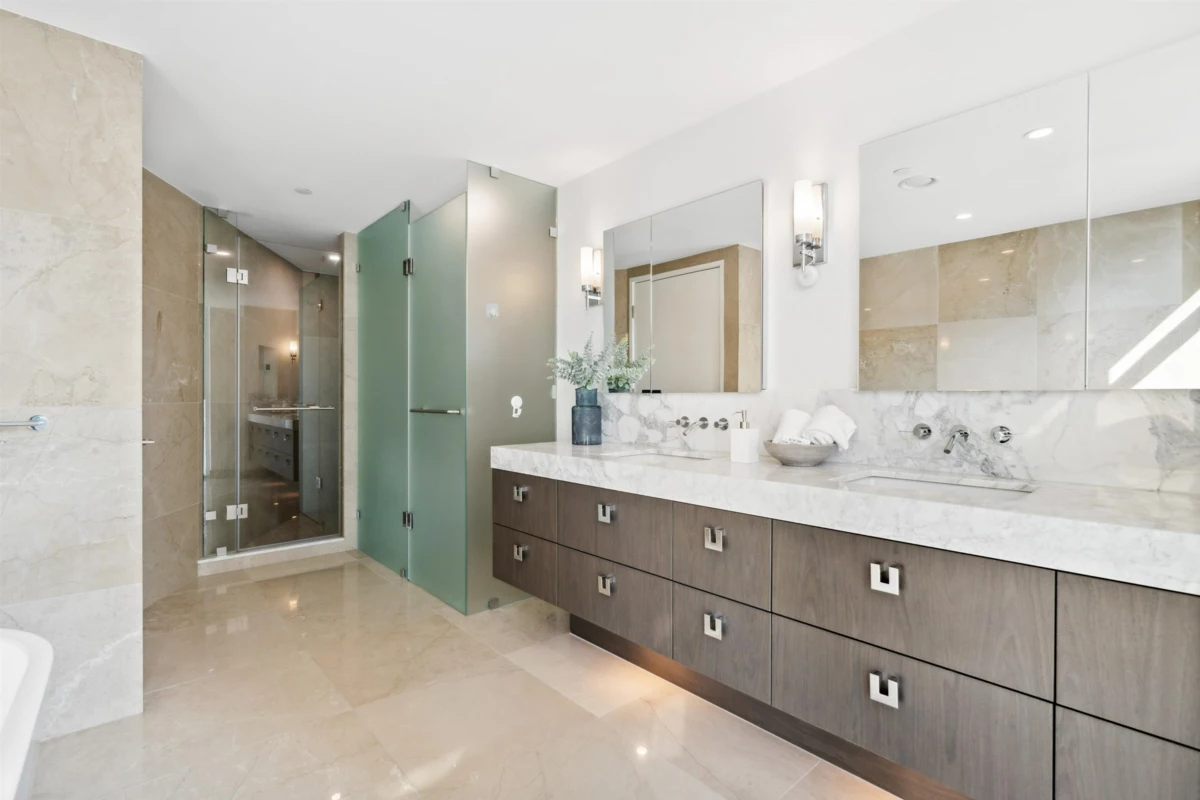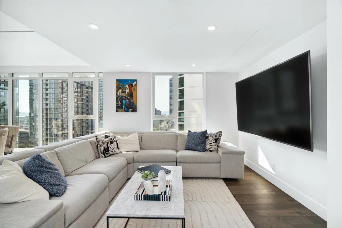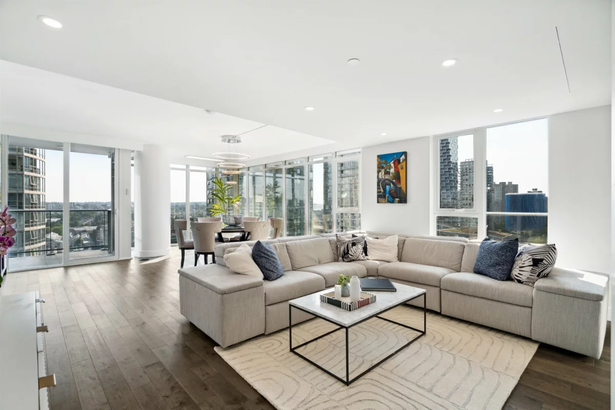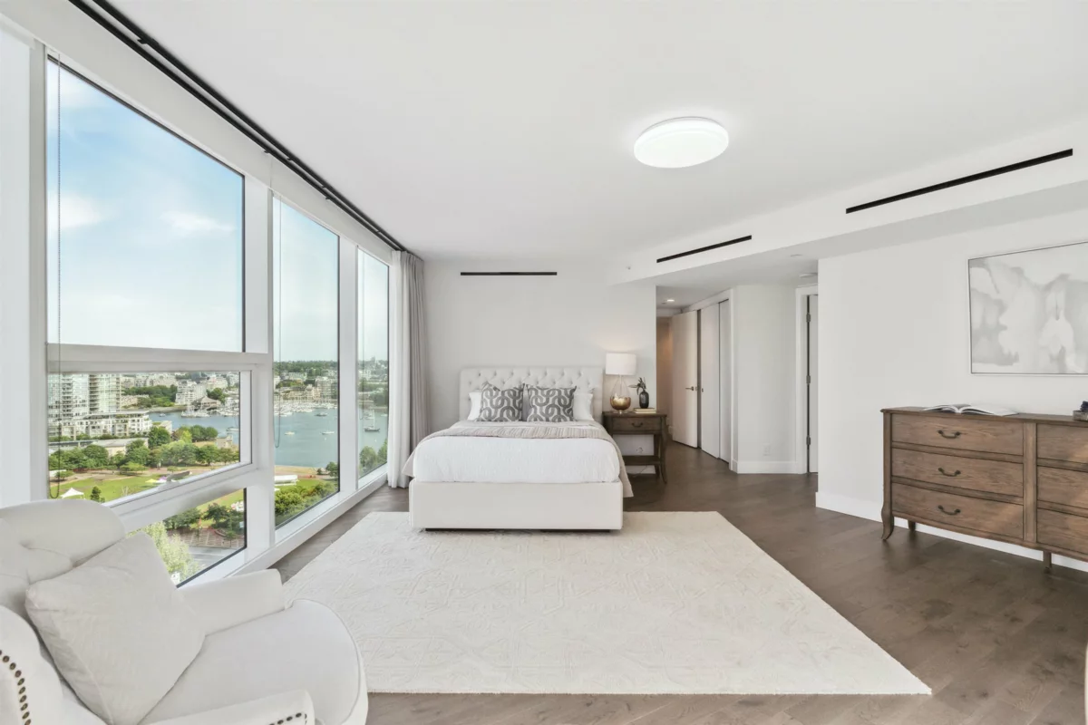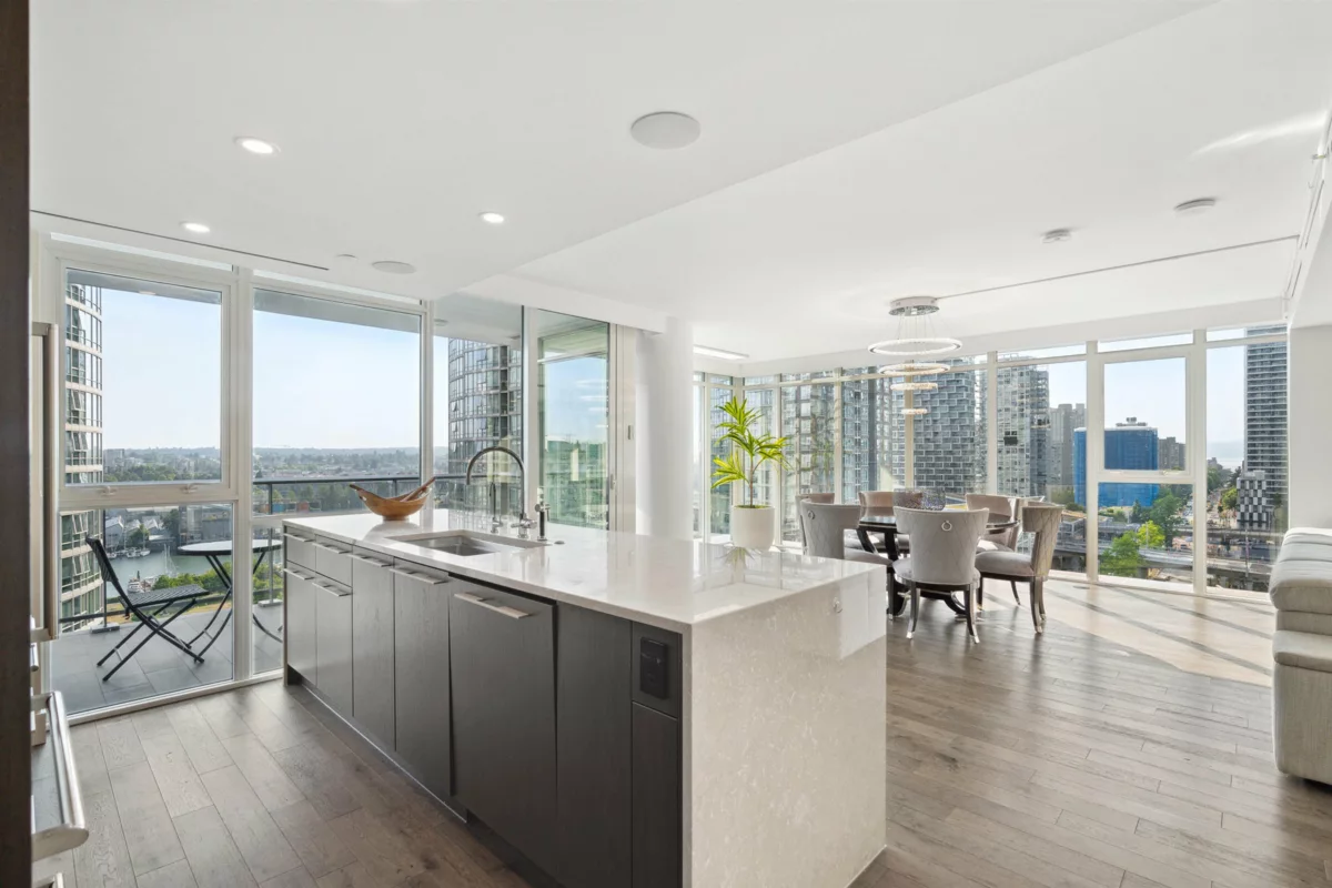 Stunning 4,000 sq ft full-floor luxury residence with unobstructed False Creek views. This 4 bed/4 bath, one-of-a-kind home combines three units into a single custom layout—offering a scale and level of privacy rarely found in the city. A water-level entertainment space with rare, eye-level protected views—an elevated, living canvas with the water part of your everyday life. Three bedrooms boast shimmering False Creek & David Lam vistas. Gourmet kitch + spice kitch w/ Miele, Wolf & Sub-Zero appls, wide-plank eng h/w flrs, heat/cool sys, Control4 automated lighting & motorized blinds. Private triple garage +1 extra pkng & adj. storage room elevate convenience and luxury. Award-winning bldg w/ state-of-the-art amenities: gym, sauna/steam, outdoor pool/hot tub, lounges, 24/7 concierge & more!
