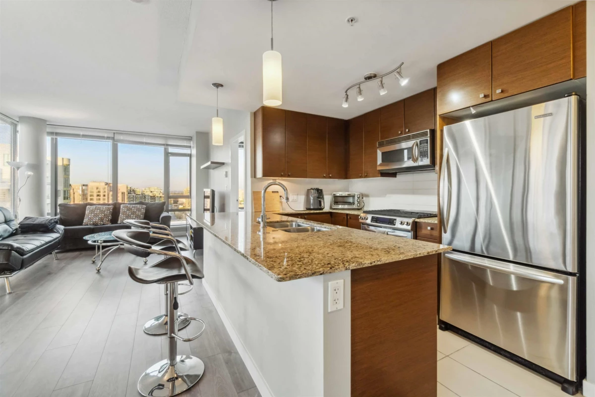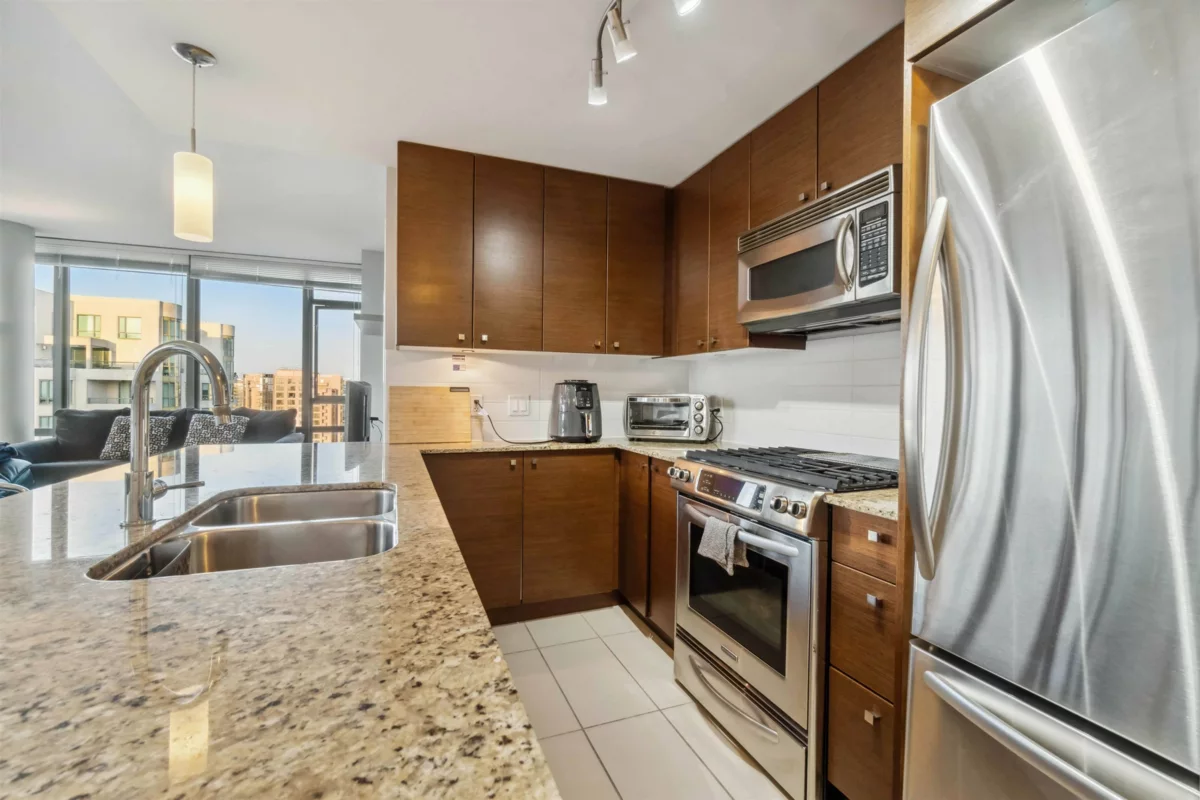 This spacious 2-bedroom, 2-bathroom sub penthouse corner unit offers stunning city views from the 17th floor. Featuring a bright, open-concept layout with floor-to-ceiling windows, this home is flooded with natural light. The bedrooms are generously sized, offering great separation for privacy, and the primary bedroom includes a large ensuite and walk-in closet. Enjoy resort-style amenities including an pool, hot tub, fitness centre, and a garden. Located in the heart of Richmond, you are steps from the Canada Line, Richmond Centre, restaurants, and schools. Perfect for investors or homeowners — rentals allowed and pet-friendly.