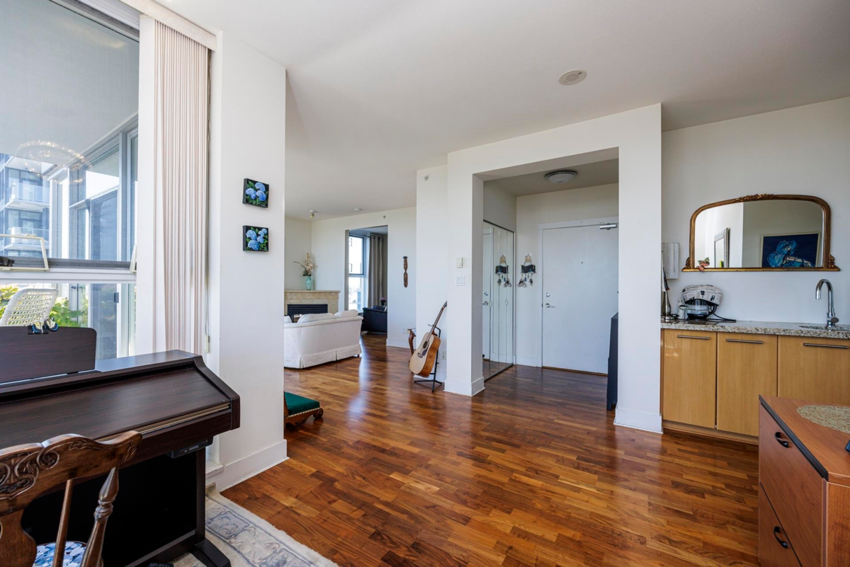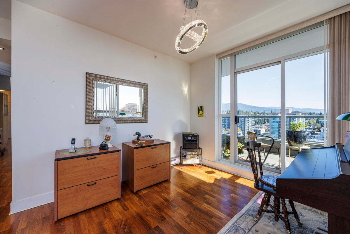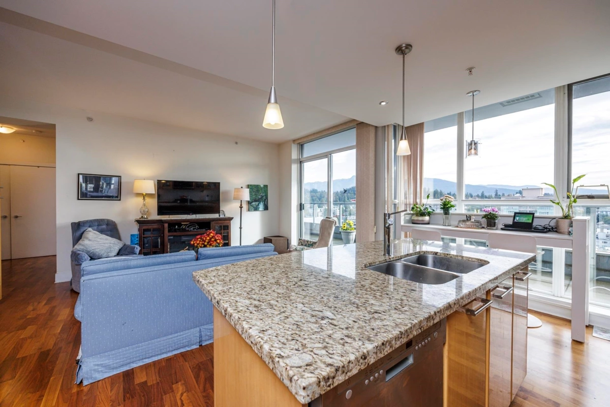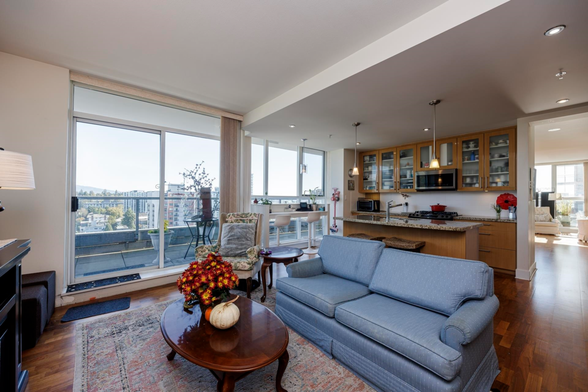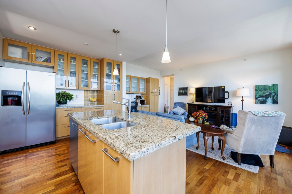 Centrally located penthouse with amazing VIEWS, is a fabulous 1,744sqft, 2 bedroom and den, 3 bathroom rare offering! A corner suite whose innovative design includes wide plank hardwood floors, cozy gas fireplace and floor to ceiling Low E, Smart glass thermal windows. Enjoy an expansive 700sqft roof top patio perfect for summer b-b-q or relaxation while taking in awesome SE views. The kitchen features granite counters, textured glass upper cabinets, ceramic tile backsplash, stainless appliances and an eating bar/island open to the family room for easy entertaining. A huge primary bdrm boasts spa-like ensuite to pamper yourself, walk-in closet, + 2nd bdrm has ensuite bath too! Lovely amenities, superb location and LEED certified! 2 parking & storage included.