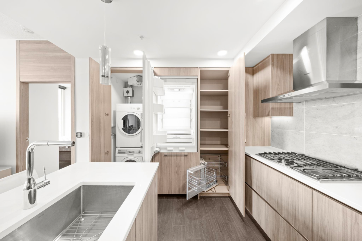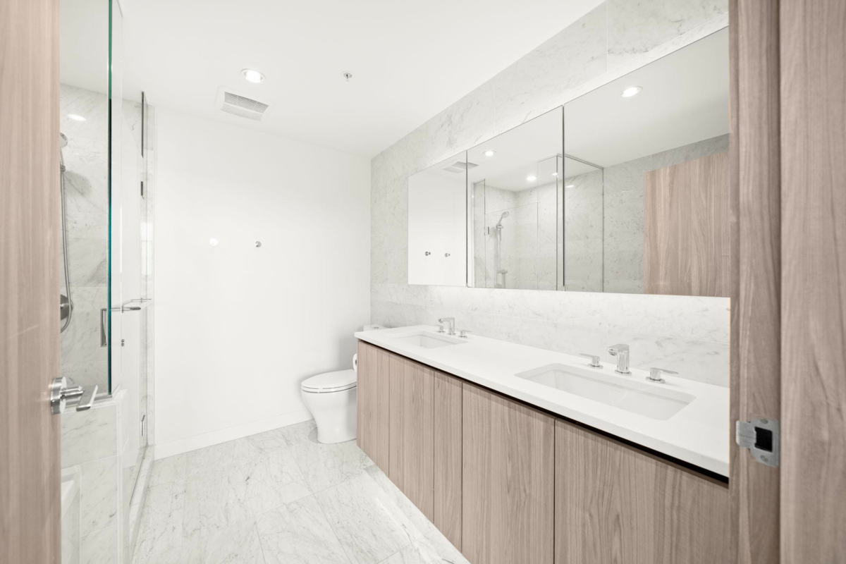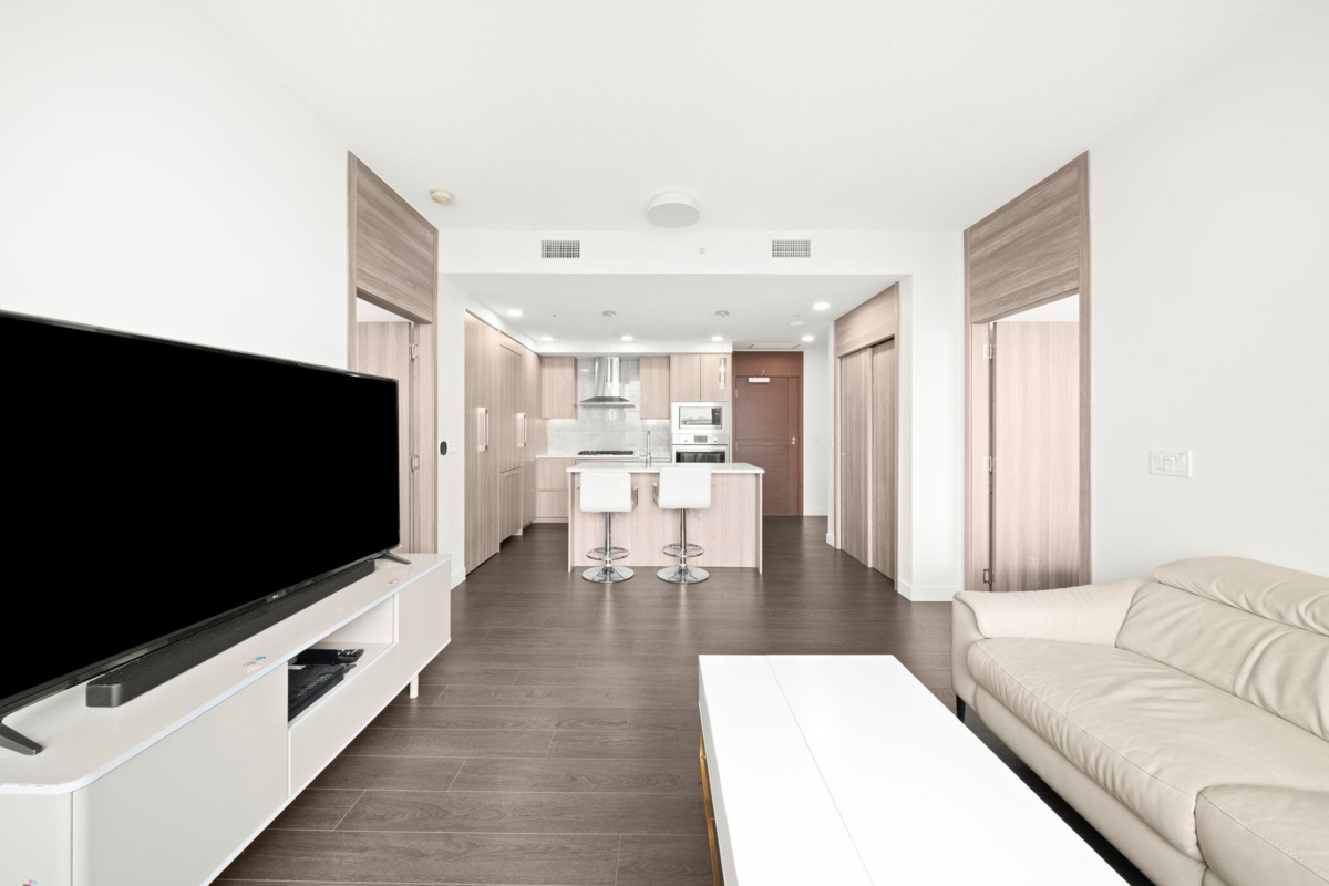 Stunning SE FACING SUB-PENTHOUSE at PARK ESTATES II with expansive views including Mount Baker, featuring soaring over-height ceilings and floor-to-ceiling windows, the home is filled with brilliant natural light from the morning sun. This exceptional layout includes two ensuite bedrooms, a high-end kitchen with fully integrated Bosch appliances, a 5-burner gas cooktop, with built-in shelving and storage throughout. Step outside onto the wraparound balcony and take in the expansive city and mountain vistas. Enjoy five-star amenities, including a state-of-the-art fitness centre, golf simulator, movie theatre, party room, bowling alley, swimming pool with hot tub, sauna, indoor gym, and more. Call to book your private appointment! Open House Sat Nov 15 2-4pm.