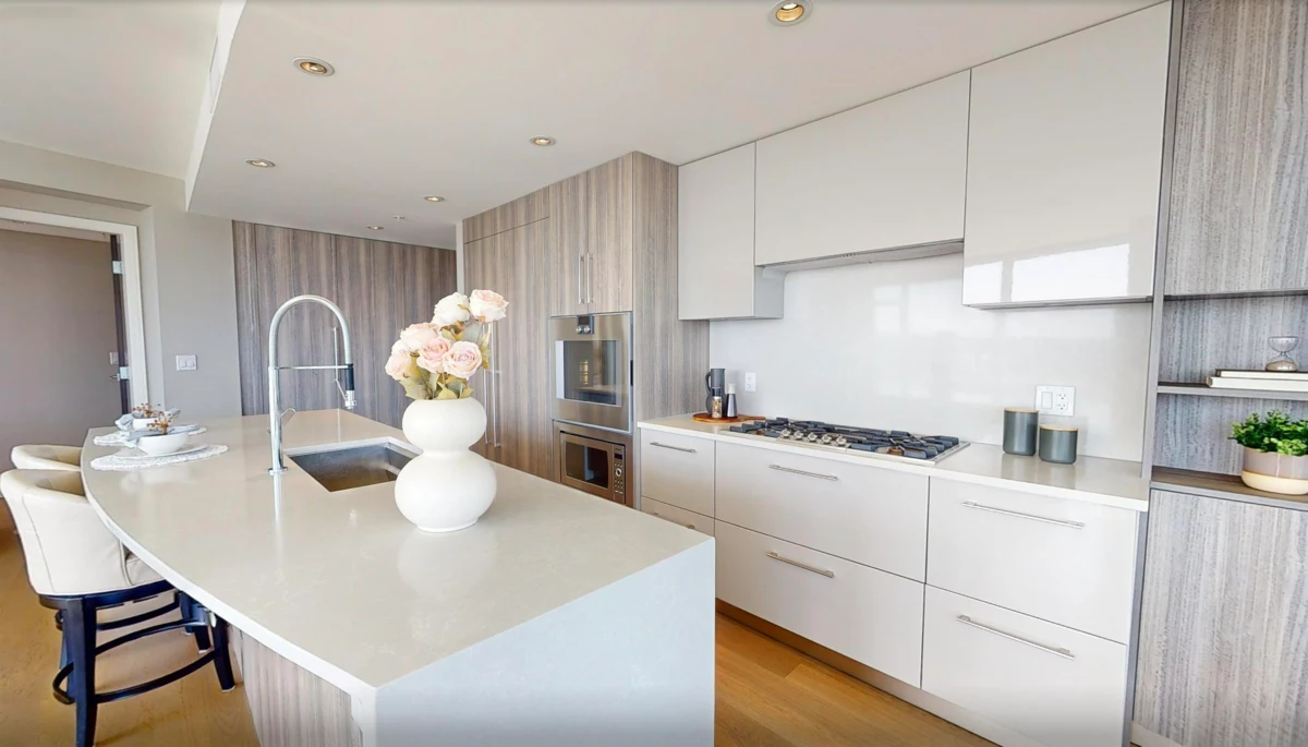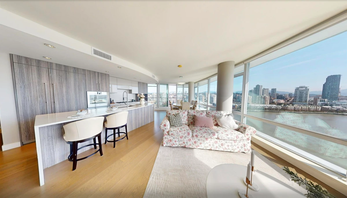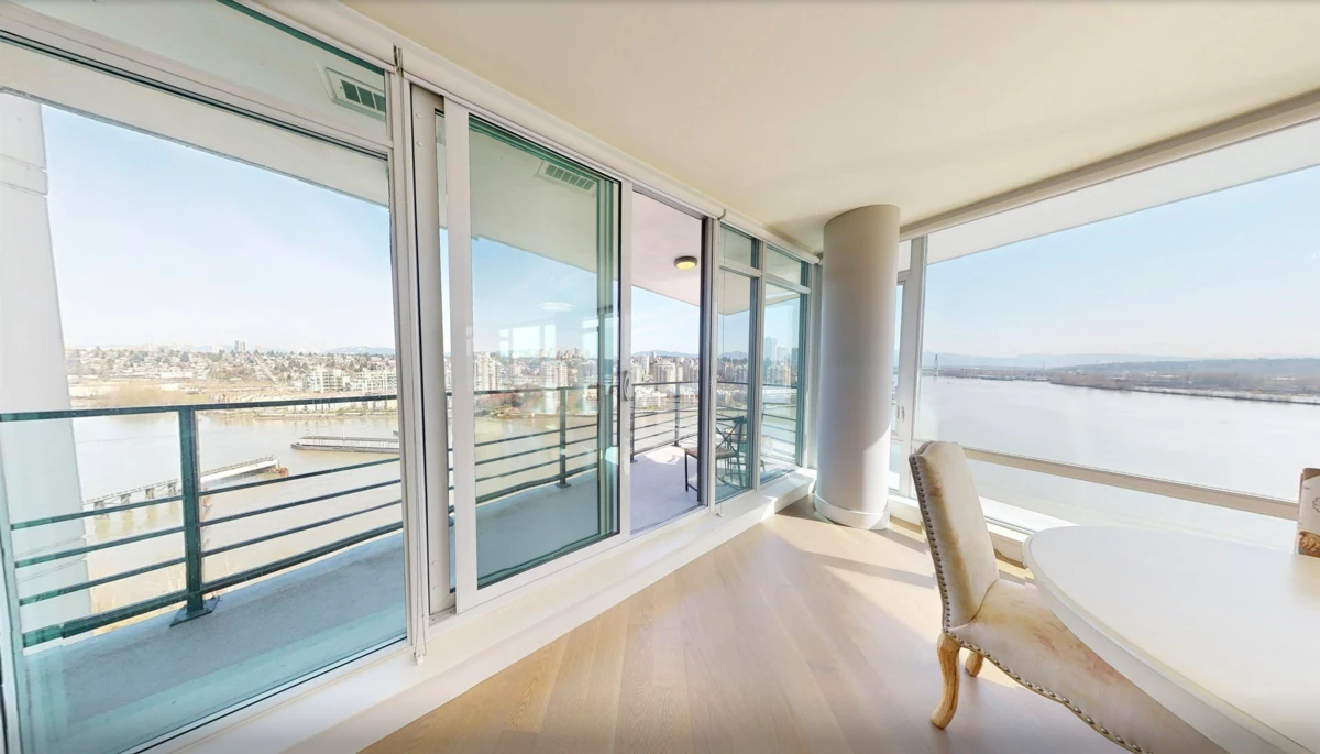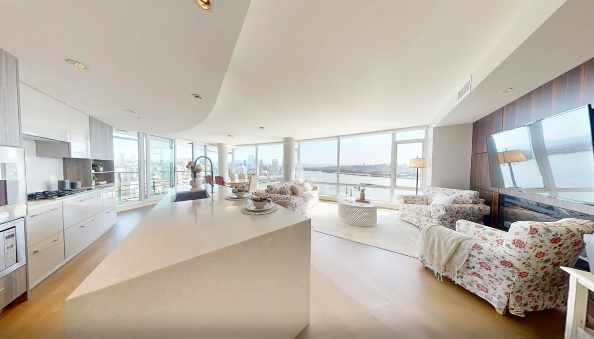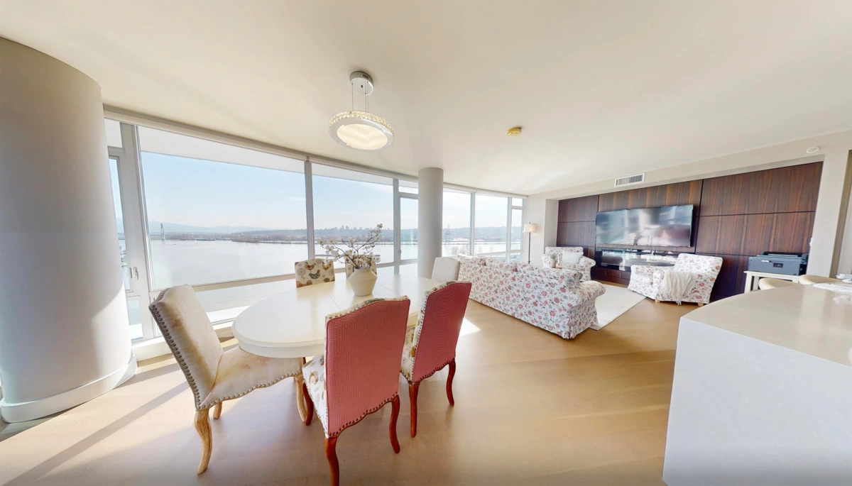 This super bright 2-bedroom corner unit at The Peninsula is surrounded by views & natural light, featuring floor-to-ceiling windows that capture the Fraser River, city, & mountains. The chef-inspired kitchen is a dream, showcasing fully integrated Gaggenau appliances and custom Italian cabinetry. The primary bdrm offers serene views & spa-like ensuite with Nuheat heated floor. With engineered hardwood throughout and high-end finishes in every detail, offers sophisticated waterfront living — modern, elegant, and filled with light. With easy access to parks, riverfront paths, and local amenities. The Q & Q ferry dock is just a minute away, offering a quick 5-minute ride to the New Westminster Public Market. Luxury, resort-style living experience! Open house: Oct 19(sun), 2-4pm.
