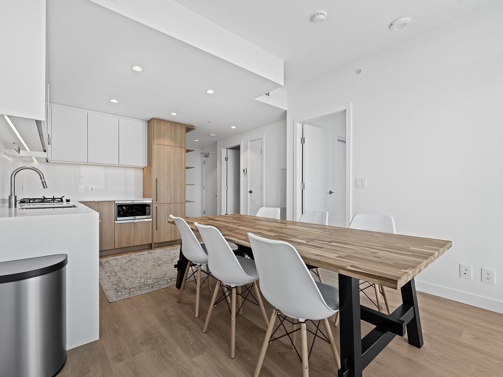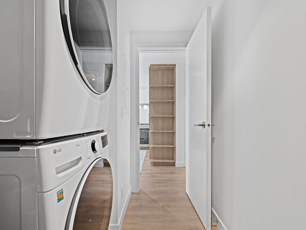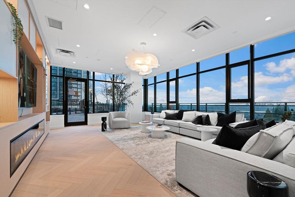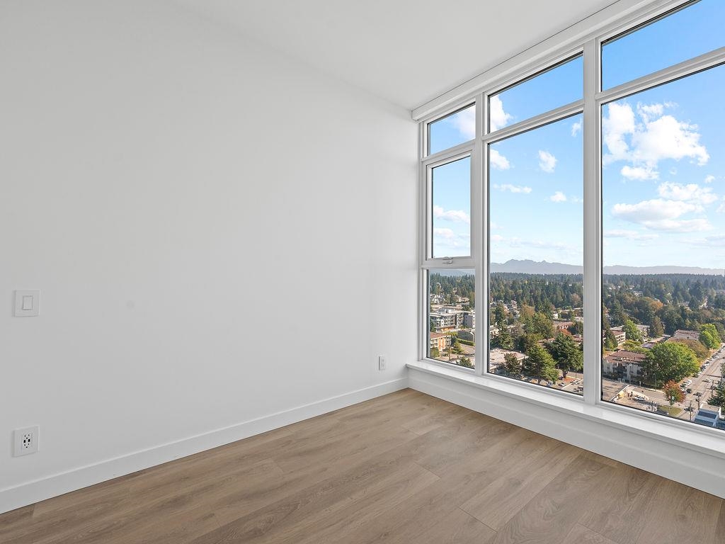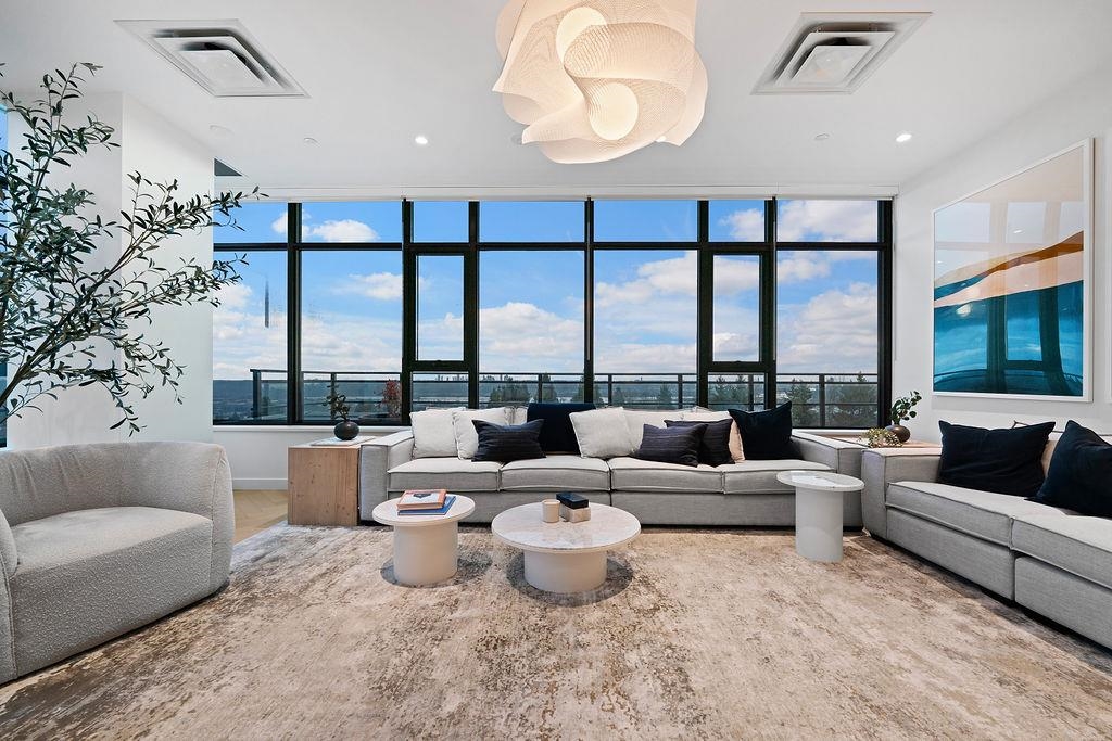 Exceptional 17th-Floor 1-Bedroom at “WEST” by Beedie. Enjoy 180-degree beautiful mountain, city, and ocean views from inside this brand-new concrete condo. Thoughtful design meets modern luxury with 9’ ceilings, custom millwork and an efficient floor plan that includes a generous bedroom plus versatile laundry/flex room. Chef-inspired kitchen showcases integrated Fisher & Paykel appliances — including gas cooktop — while air conditioning with smart thermostat keeps you comfortable year-round. Enjoy best-in-class amenities: state-of-the-art fitness centre, co-working lounge, oversized outdoor terrace, sports court and private guest suite. Outstanding location in Austin Heights connected to new Safeway and steps to cafés, shops and transit. 1 parking and 1 locker. This is it!