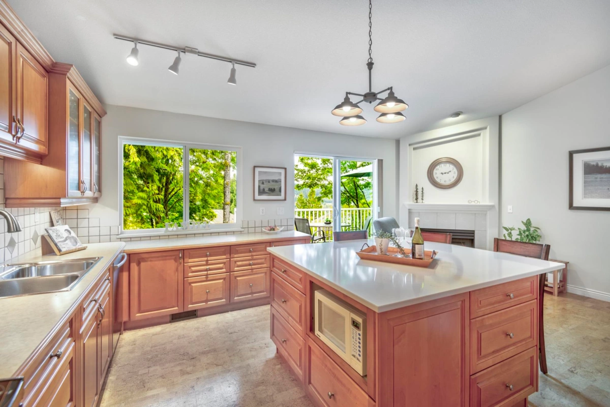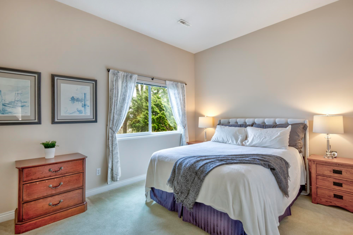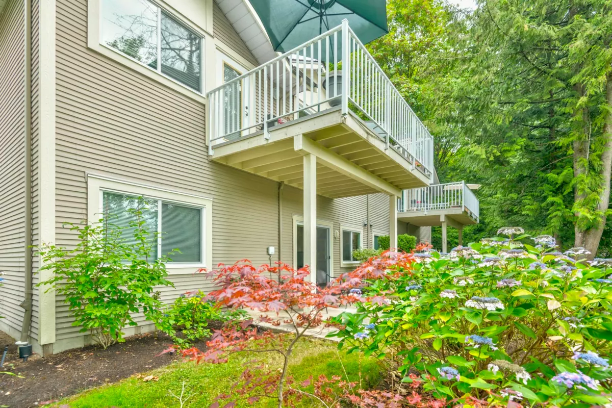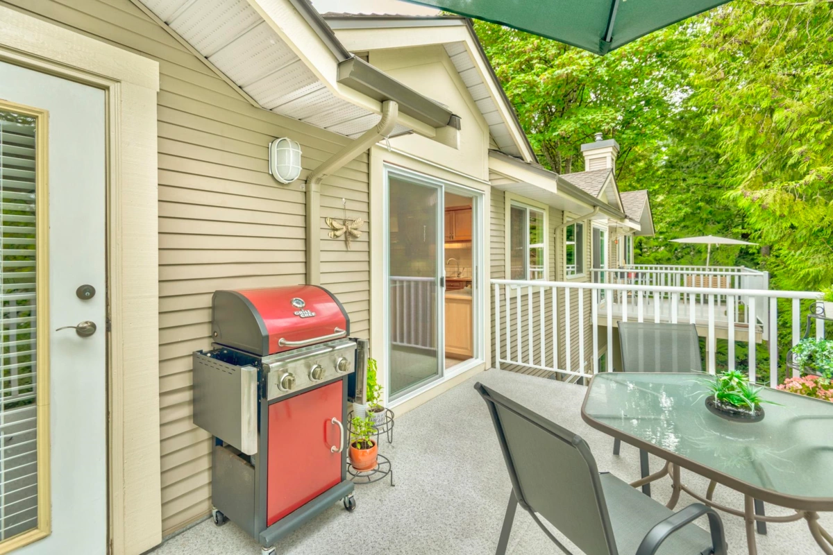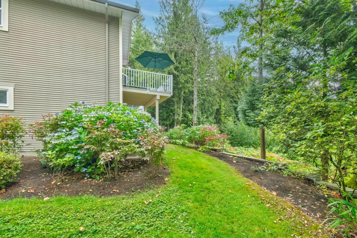 Treetops Sought after "G" Plan! 2 steps to Rancher style one level living! This renovated home with seasonal ocean view backing onto a south facing greenbelt has everything you need! Huge Primary bdrm on the main overlooking a greenbelt with a 53 sq.ft walk-in closet, & 5 pc. ensuite. The gourmet kitchen with a huge island, loads of cupboard and counterspace complete with a flex area with gas fireplace. Living room open to the dining area with high ceilings. The walk-out bsmt features 13ft ceilings, 2 large bedrooms, full bath, a 27' X 16' recreation room with gas/fp & sliding glass doors to a patio on a greenbelt. Not to mention the 31' X 11'storage/ w/shop. Onsite indoor pool & fitness centre, walking distance to Inlet Trail, Newport Village & Rec. Centre. Sept 6th O/H Cancelled.