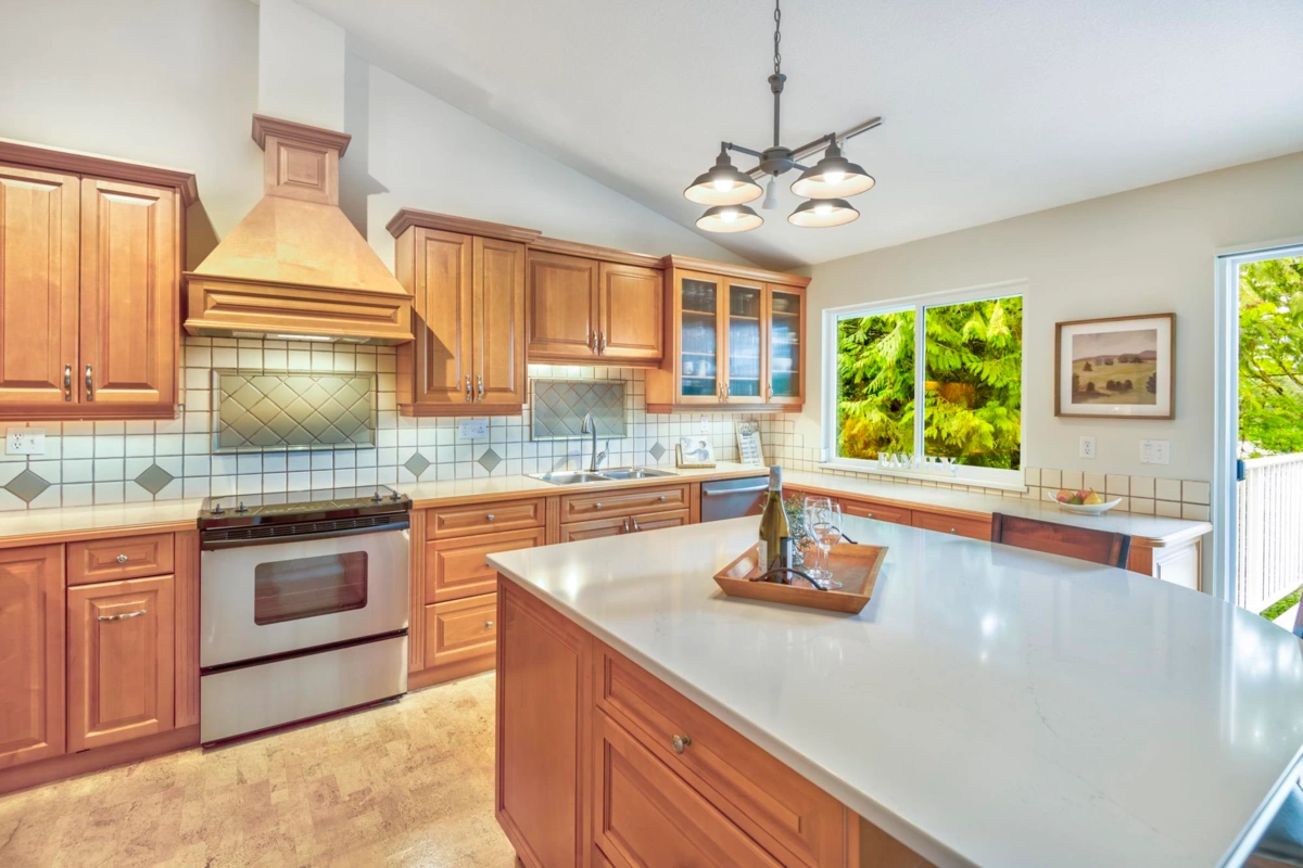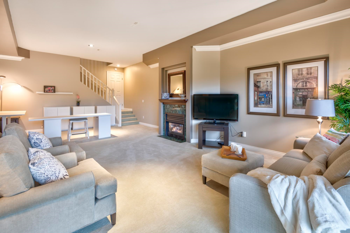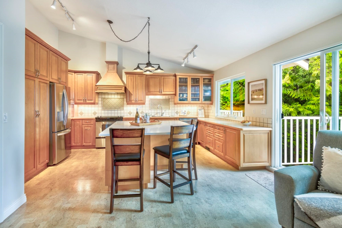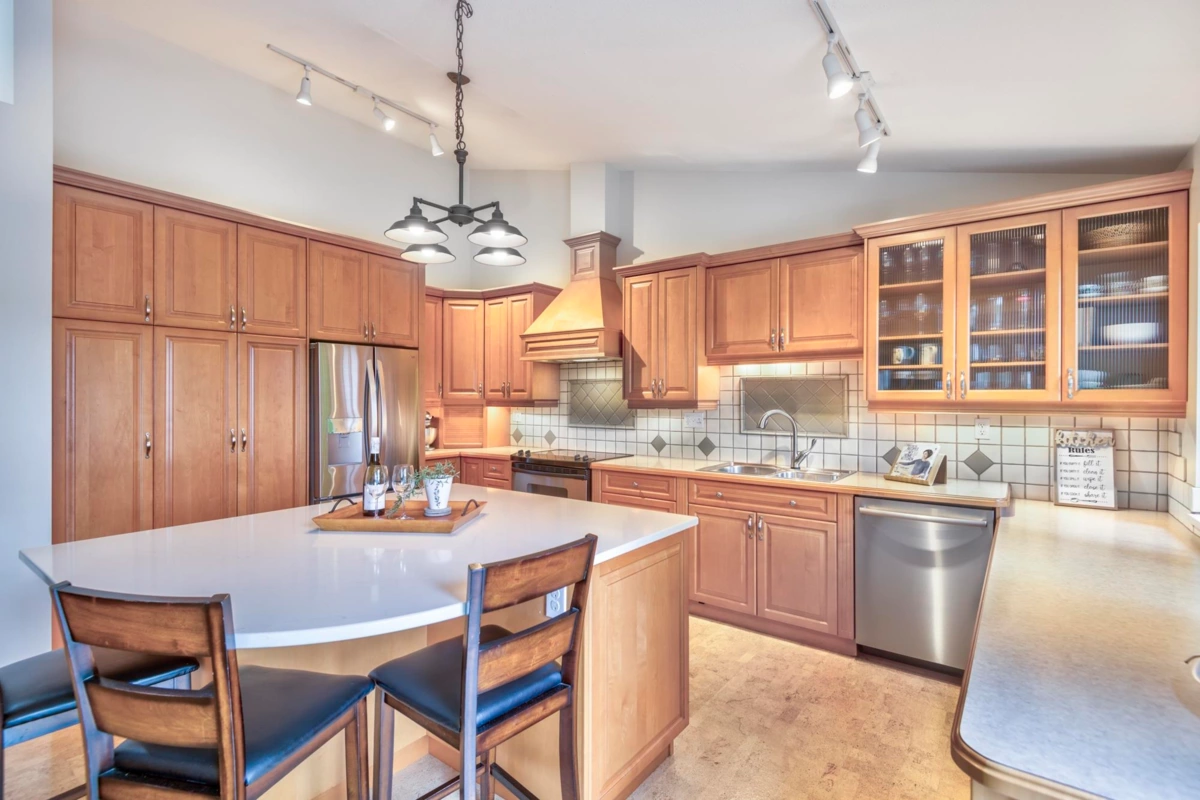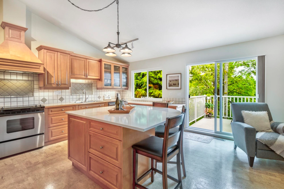 Treetops Sought after "G" Plan! 2 steps to Rancher style one level living! This renovated home with seasonal ocean view backing onto a south facing greenbelt has everything you need! Huge Primary bdrm on the main overlooking a greenbelt with a 53 sq.ft walk-in closet, & 5 pc. ensuite. The gourmet kitchen with a huge island, loads of cupboard and counterspace complete with a flex area with gas fireplace. Living room open to the dining area with high ceilings. The walk-out bsmt features 13ft ceilings, 2 large bedrooms, full bath, a 27' X 16' recreation room with gas/fp & sliding glass doors to a patio on a greenbelt. Not to mention the 31' X 11'storage/ w/shop. Onsite indoor pool & fitness centre, walking distance to Inlet Trail, Newport Village & Rec. Centre. Sept 6th O/H Cancelled.
