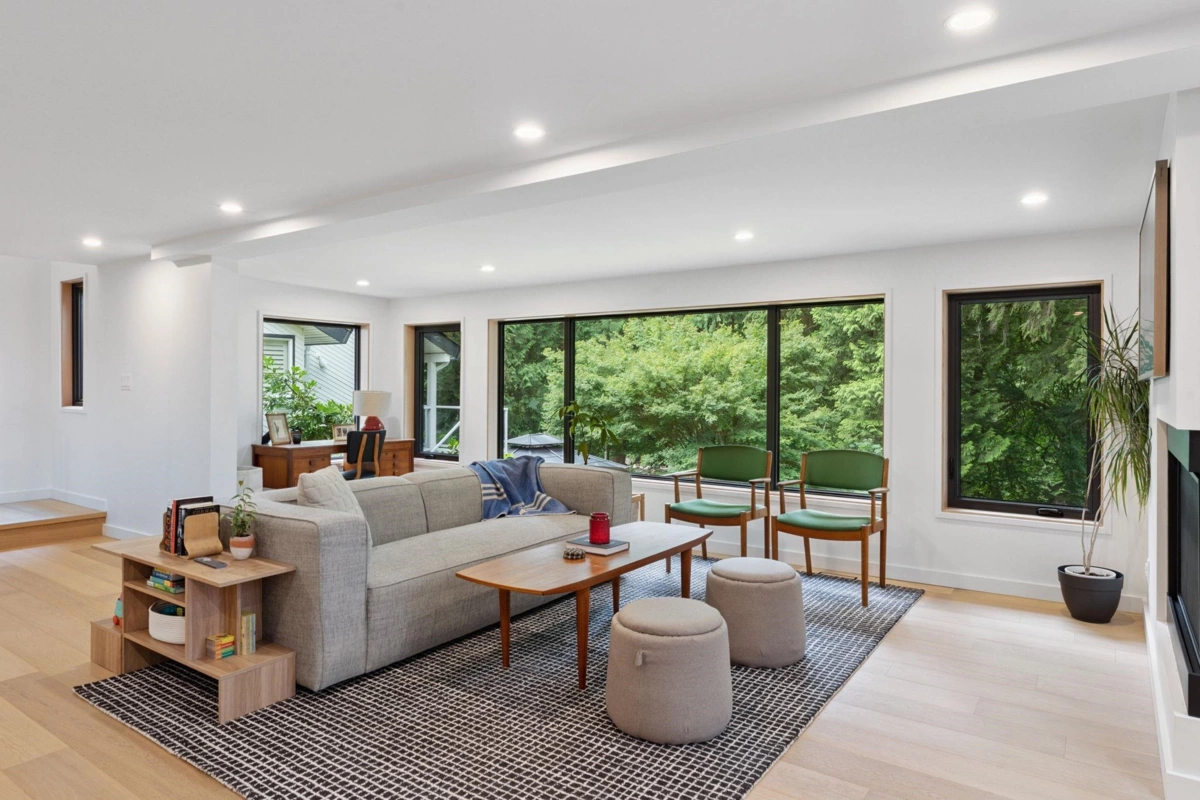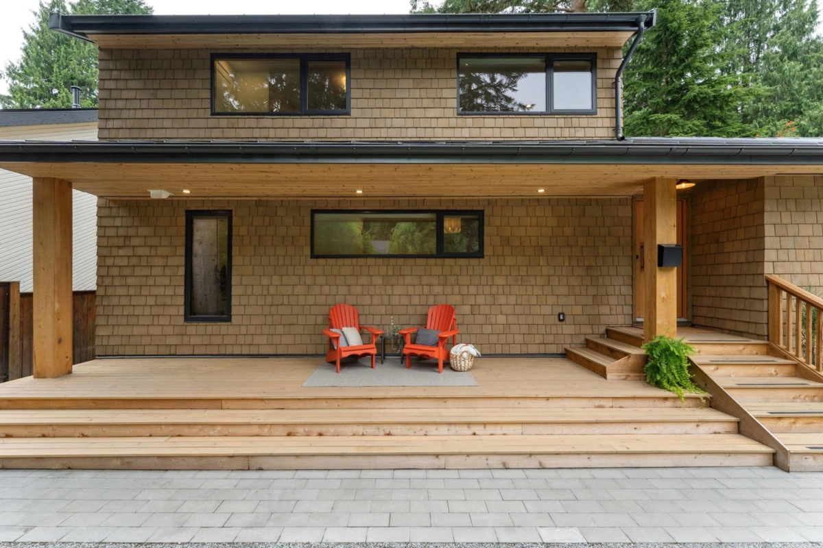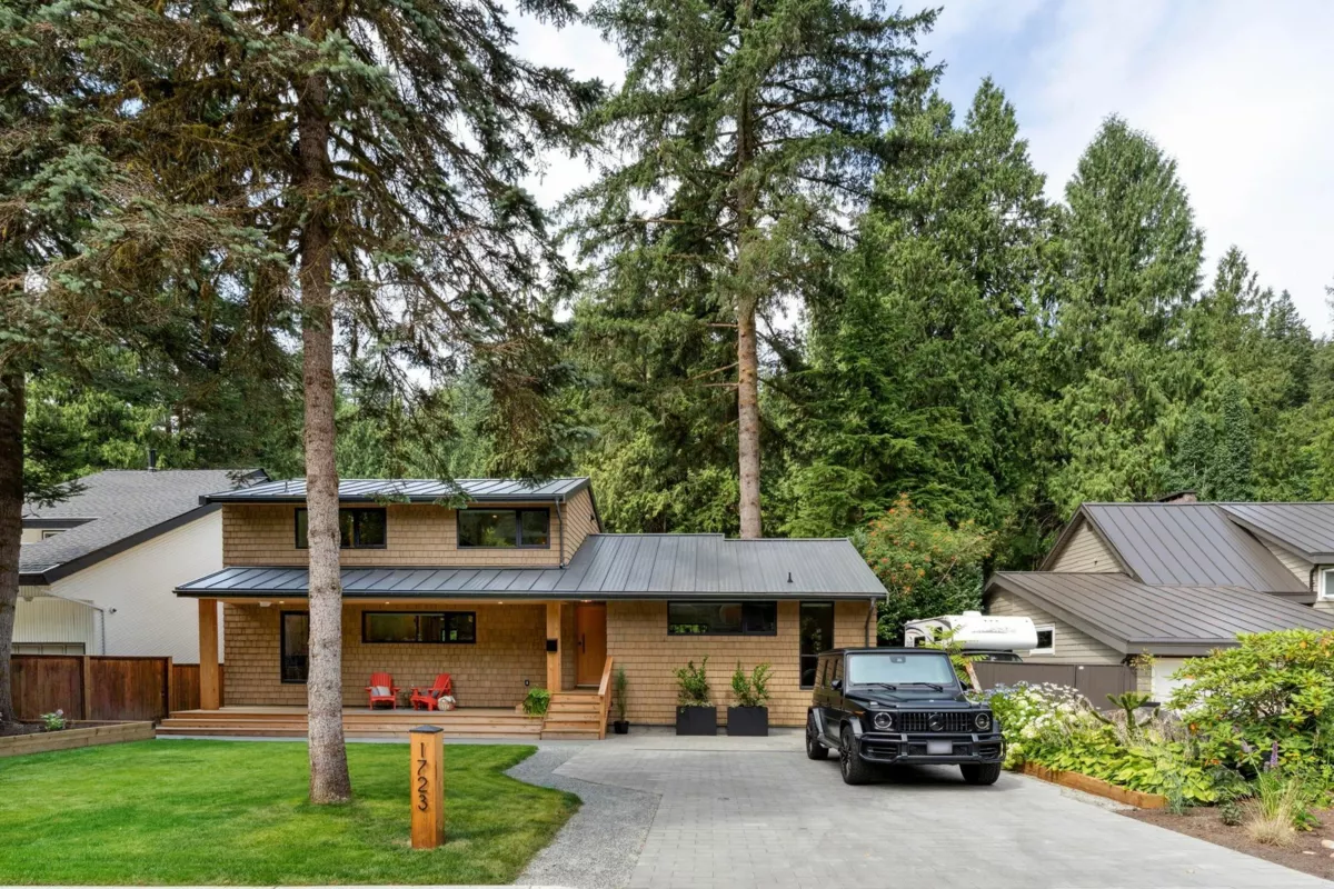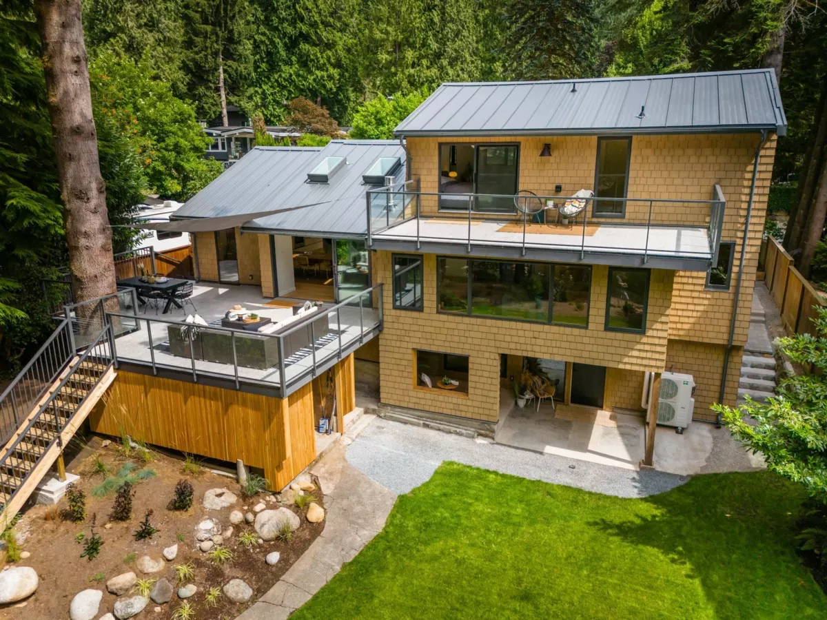 RIVERFRONT SANCTUARY IN NORTH VANCOUVER - Welcome to your private riverfront retreat—where luxury meets nature in the heart of North Van. Fully reimagined with complete renovation, this home blends modern comfort with West Coast beauty. Vaulted ceilings, A/C, custom kitchen w/ Fisher & Paykel appls, spa-like baths & a legal suite offer flexibility for families or guests. Step outside to eagles soaring overhead, salmon running below, and total backyard privacy. Tucked on a quiet cul-de-sac, with trails, top schools & shops just mins away. A rare offering—come experience the lifestyle, this is not to be missed!