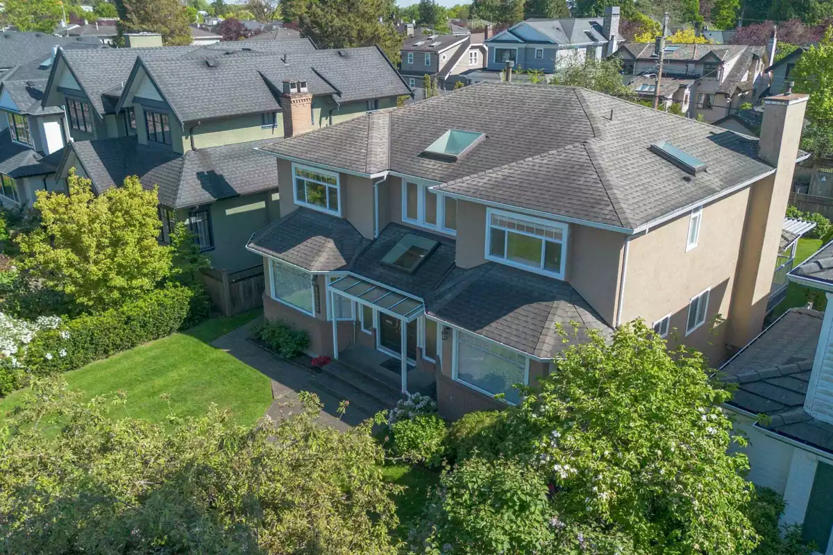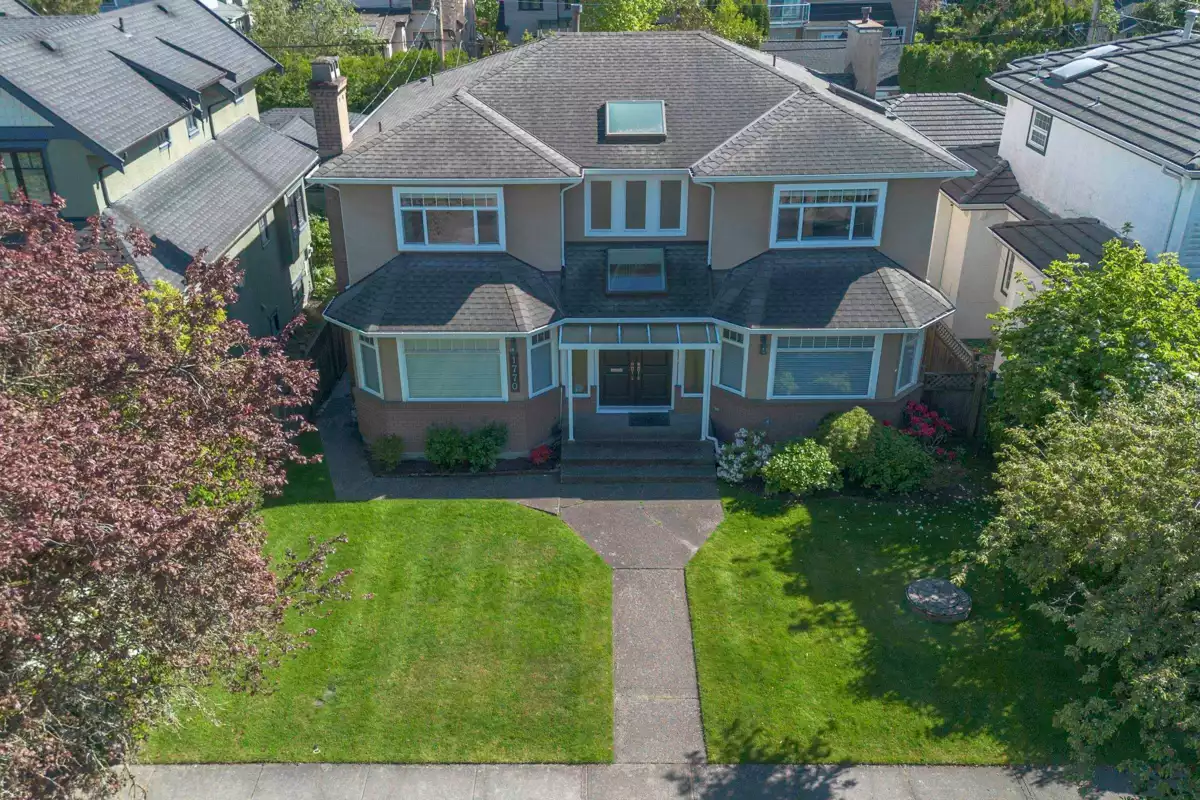 Custom-built family home on quiet tree lined street in prestigious South Granville neighborhood. Well maintained, owner-occupied home sits on a 50'X 112' level lot, w/ 5 bdrms + den and 5 full bathrooms. Large primary bdrm has big walk-in closet, 5pc ensuite w/ shower and jacuzzi tub. Main floor has rec room, LR and DR w/ two fireplaces, airy 9' ceiling, hdwd flooring. Open kitchen has granite countertops & gas range. Studio sized rec room downstairs w/ new full kitchen, bathroom and walk-out bsmt entrance (Nanny suite or Tenant?) Enjoy sunny outdoor living in your private south facing backyard. 2-car garage. Very convenient location, short drive to UBC, Richmond and DT. Schools: Churchill Sec, Magee Sec, McKechnie Elem, and privates: Crofton House, York House.