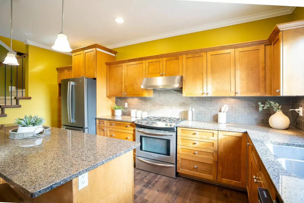 Gorgeous Provinceton home on a beautifully landscaped lot with new fencing (2024) and a beautiful cherry tree in the private, south-facing backyard. Relax on the charming covered front porch in this welcoming family neighborhood. The main floor features a bright open-concept layout with a gourmet kitchen, granite countertops, large island & new stainless steel appliances (fridge, dishwasher, hood fan 2024). Cozy living area with gas fireplace and large windows. Upstairs offers 3 spacious bedrooms, including a luxurious primary suite with vaulted ceilings, a spa-like 5-piece ensuite & walk-in closet. Fully finished basement with rec room, full bath & walkout to backyard. Walk to parks, schools, shopping, golf & more!