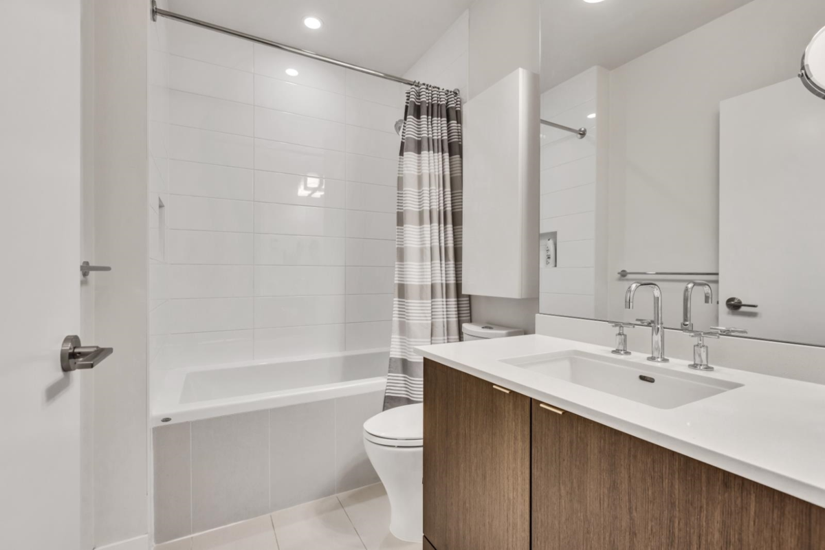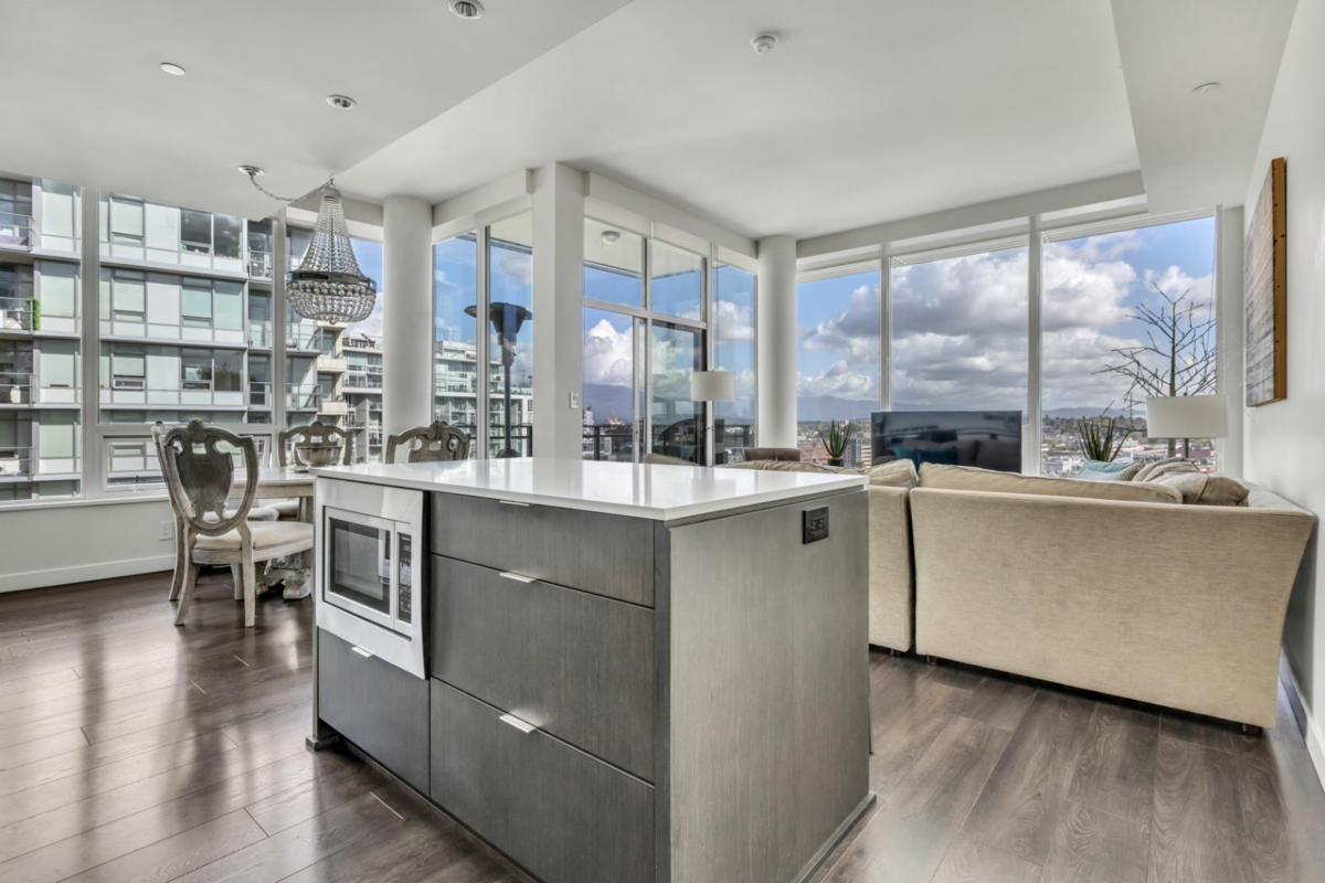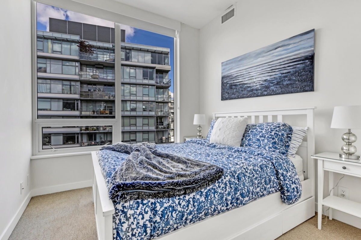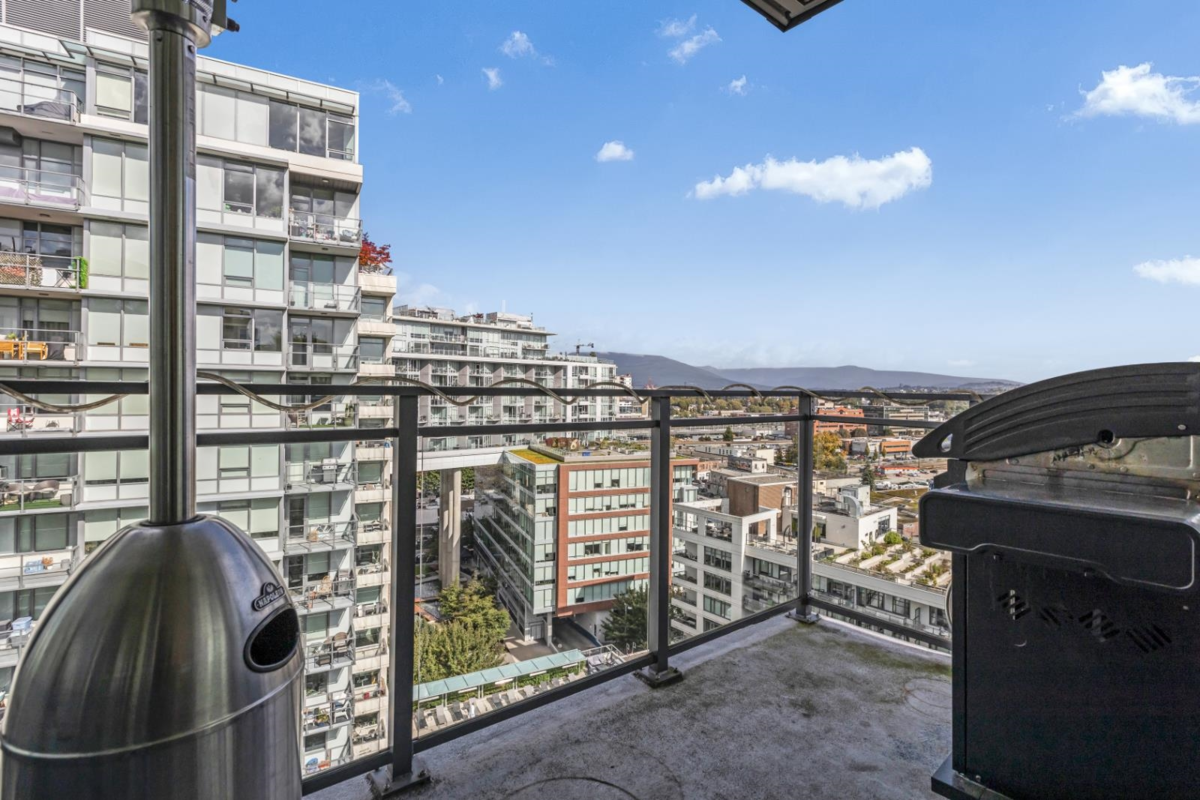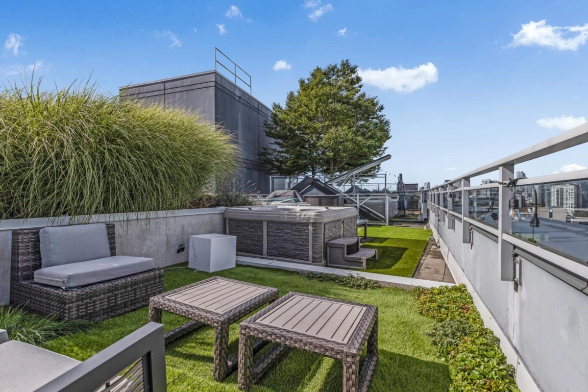 Welcome to this exceptional luxury penthouse at Block 100 by Onni, offering 2 spacious bedrooms and 2 full bathrooms. Nestled in the heart of Olympic Village, it’s within walking distance of downtown/Yaletown, restaurants, the SkyTrain, seawall, Science World, and local amenities. This corner unit boasts 1,149 sq.ft. of interior living space and an expansive 559 sq.ft. private rooftop deck featuring a hot tub, perfect for soaking in the breathtaking views of the city, mountains, and Science World. With soaring 10-foot ceilings and air conditioning, the space is ideal for relaxing or hosting summer BBQs. The master suite is complete with an ensuite bathroom and a walk-in closet for ultimate comfort. The building provides nearly 5,000 sq.ft. of indoor and outdoor amenities