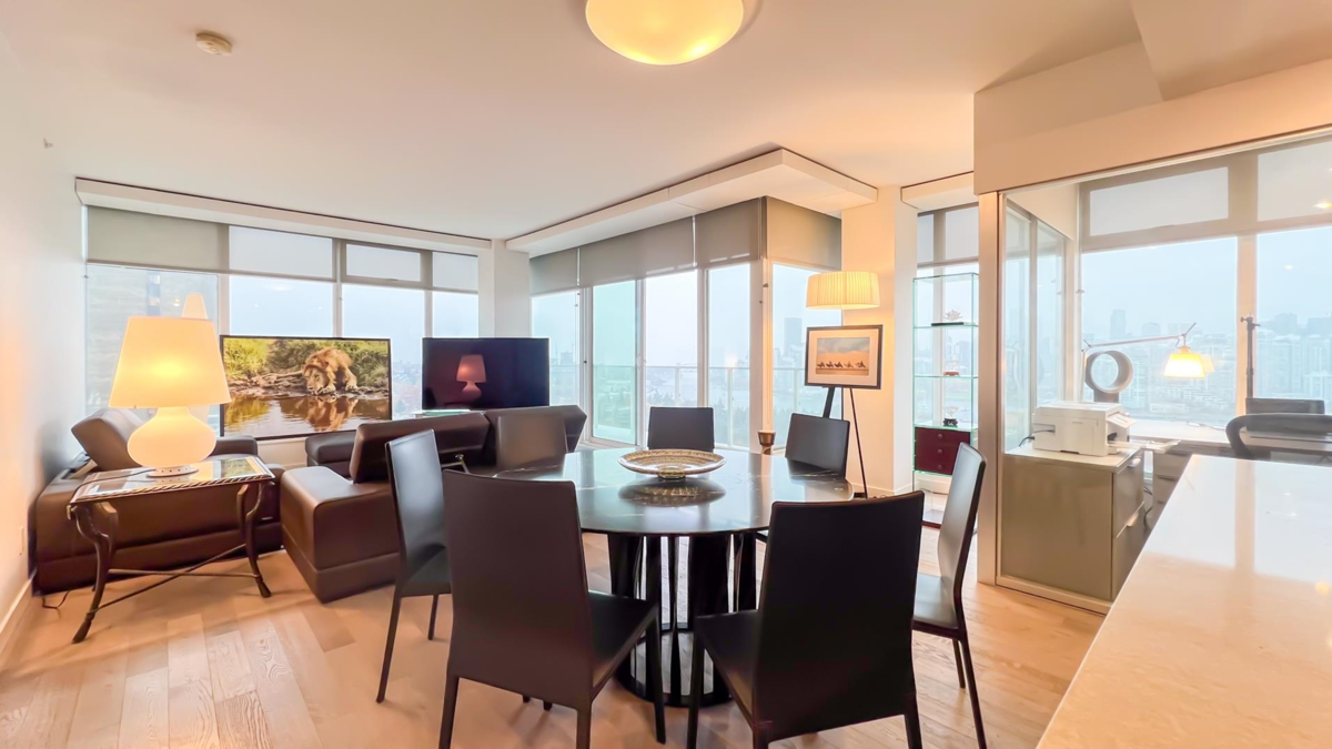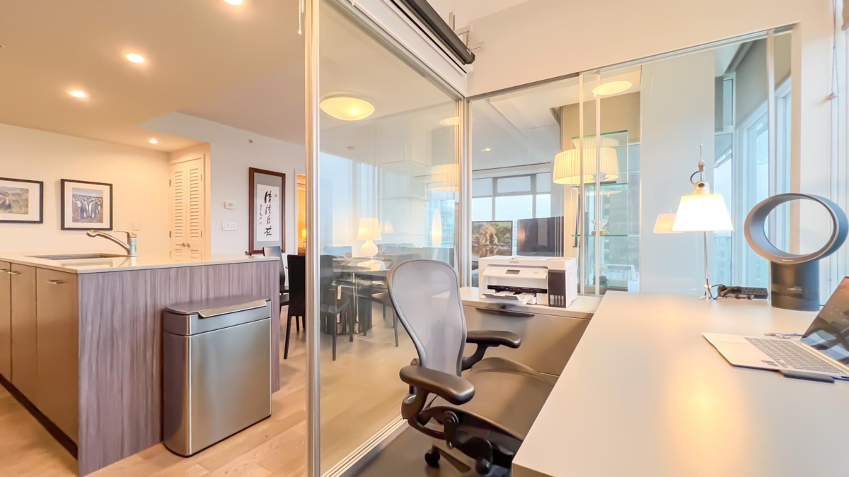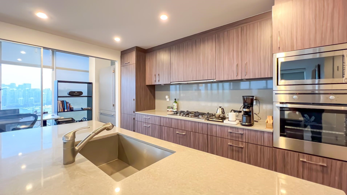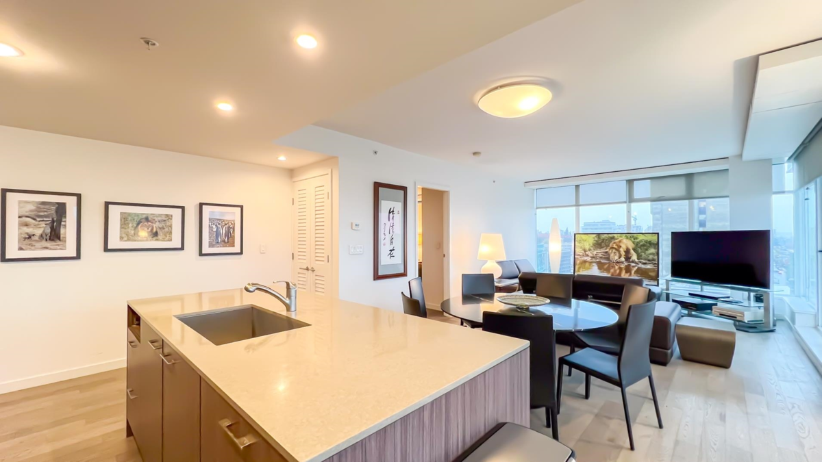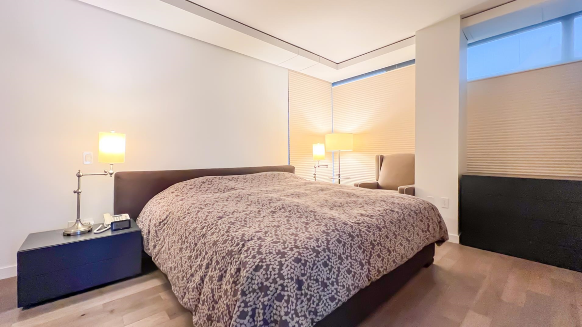 Excellent view and location, well-maintained luxurious suite with over 1,500 square feet featuring 3 bedrooms plus den, solarium & 2 bathrooms NW facing corner unit with stunning 180 degree unobstructed views of False Creek, North Shore mountains & the downtown. Gourmet kitchen, contemporary finishing, oak hardwood flooring & geothermal heating/cooling system. Two bathrooms has Nu-Heat heating flooring. Minutes to Canada Line, VGH, restaurants & banks. Owner has paid extra to buy three storage lockers and four parking spots, three of them has EV charging, all doors been changed and upgraded, three bedrooms floor changed from carpet to hardwood flooring, new sub zero fridge. All measurements, floor plan, video, photos by Almond Tree Media Inc. https://my.matterport.com/show/?m=B4E9YJEKQDW