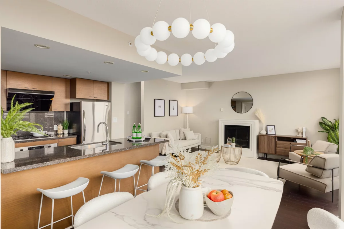 Average size of families in the area adjacent to home for sale 1807 6333 Katsura Street is 2.8. This is Below Average number in comparison to the whole region. Percent of families with children near by the Real Estate Listing - MLS® R3038320 is 68.8% and it is Above Average. % of Married or living common law is around 63.5% and it is Above Average.