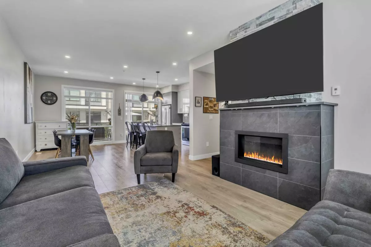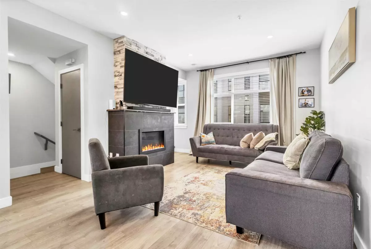 Welcome to Base 10 of Sardis, Chilliwack, Surrounded by beautiful mountain views. this master-planned townhome community is conveniently located just minutes to all level schools, shopping, Garrison Village, nature trails along the river and Cultus Lake. Perfect 4 Bedroom and 2.5 Bath townhome for a growing family. Features include, double garage with 2 parking on the driveway, upstairs laundry with 3 large bedrooms. Primary bedroom has spacious walk in closet and Spa like a ensuite. Main living area features large open concept with a beautiful kitchen, quartz countertops, gas fireplace and large family room. Huge sundeck off the kitchen provides additional area for entertaining great for summer barbecues! Pets Allowed!!