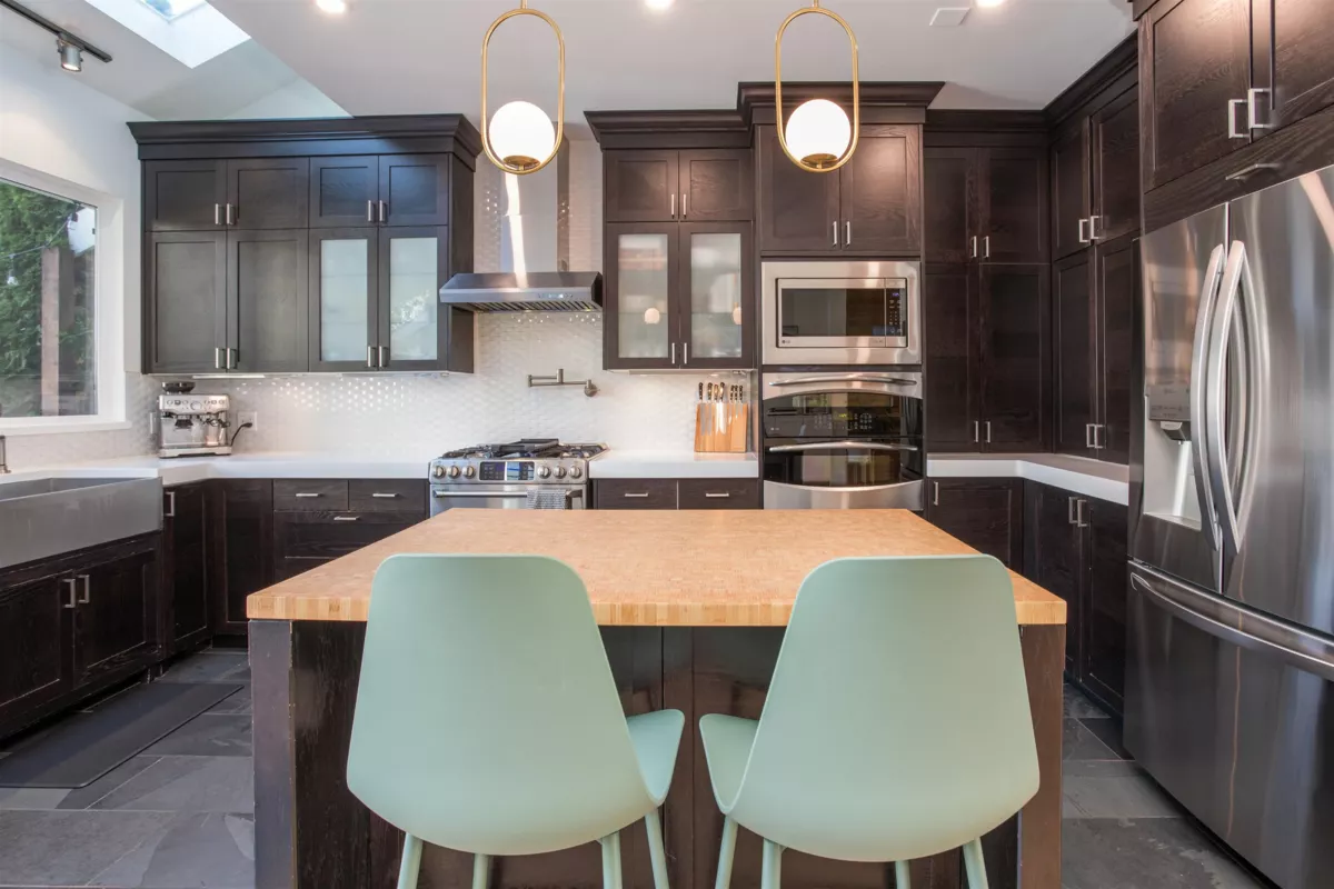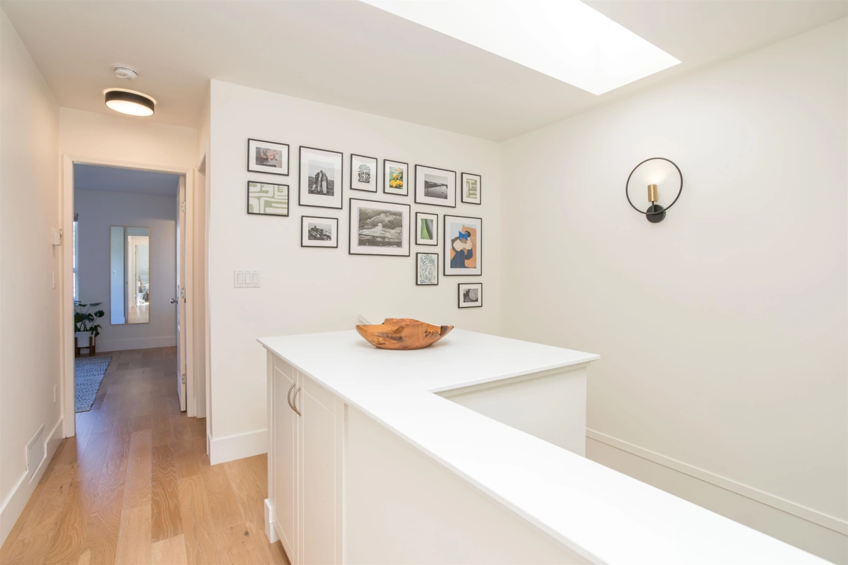 Welcome to this beautifully updated Craftsman style family home in the desireable Queensborough community of Port Royal. Step inside to an inviting open-concept main floor featuring 9' ceilings, white oak flooring, gas fireplace (2024) and A/C (HVac 2025) for year round comfort. The custom kitchen is a chef's dream with a 6 burner gas range, pot filler, wall oven and plenty of workspace for cooking and entertaining. 4 beds up (see plan) and 2 full baths, primary ensuite reno (2021). Amazing natural light from large windows and skylights, creating a bright and airy atmosphere throughout. Large back deck, fenced yard, storage shed and lane access with 2-3 parking. New roof 2022, poly B removed 2021. Steps to Port Royal trail, shops, parks and the Q-Q ferry Book your private showing!